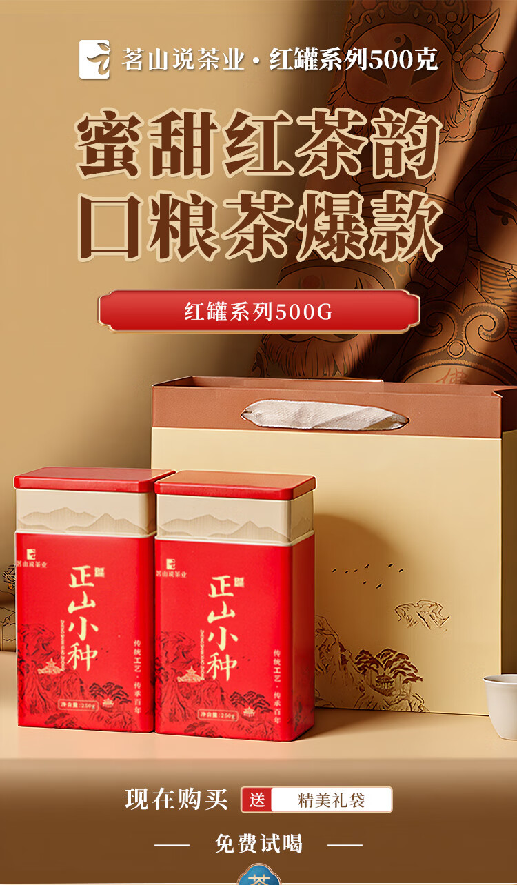 茗山说武夷山桐木关红茶正山小种正宗茶叶送长辈自饮2025新茶自己喝 【特惠价1斤装】爆款口粮红茶250g*2盒
