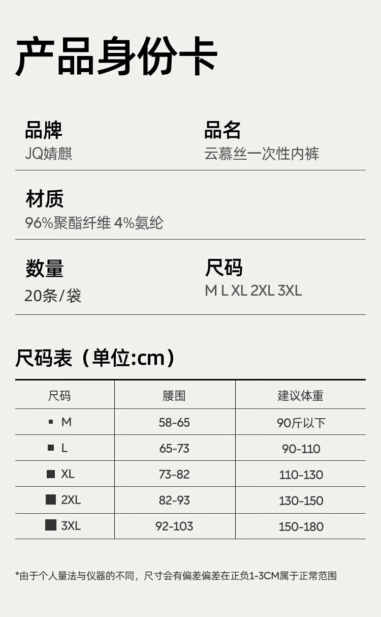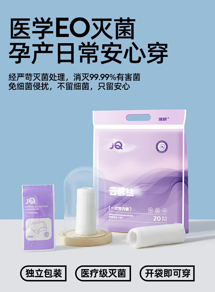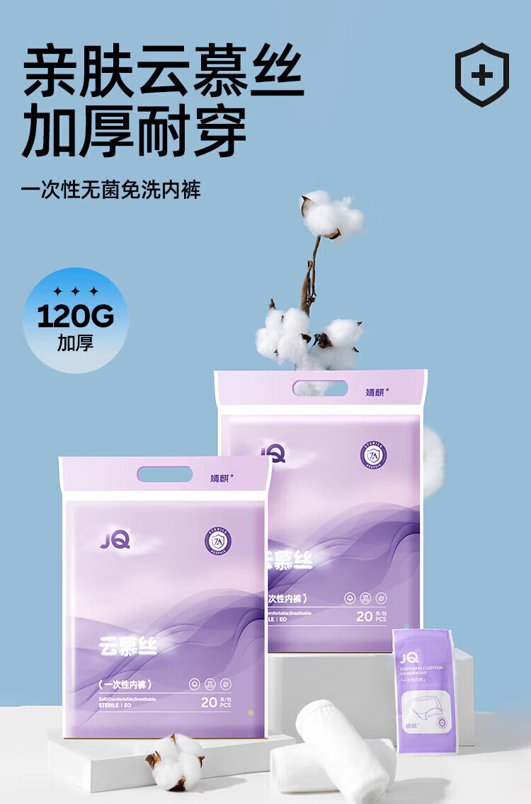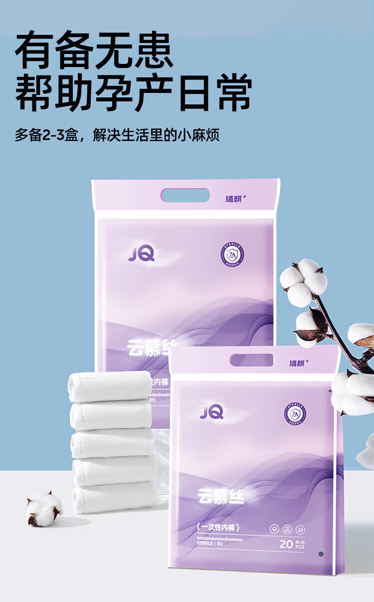 婧麒(JOYNCLEON)【20条】一次性内裤云慕丝升级款无菌免洗旅行出差孕妇产后生理期 白色(20条灭菌装) L