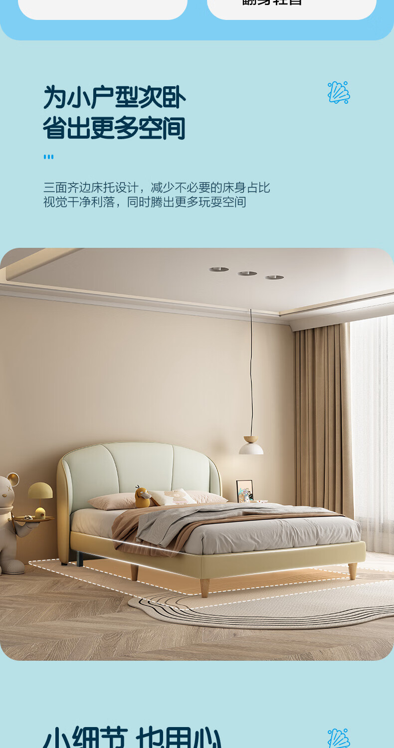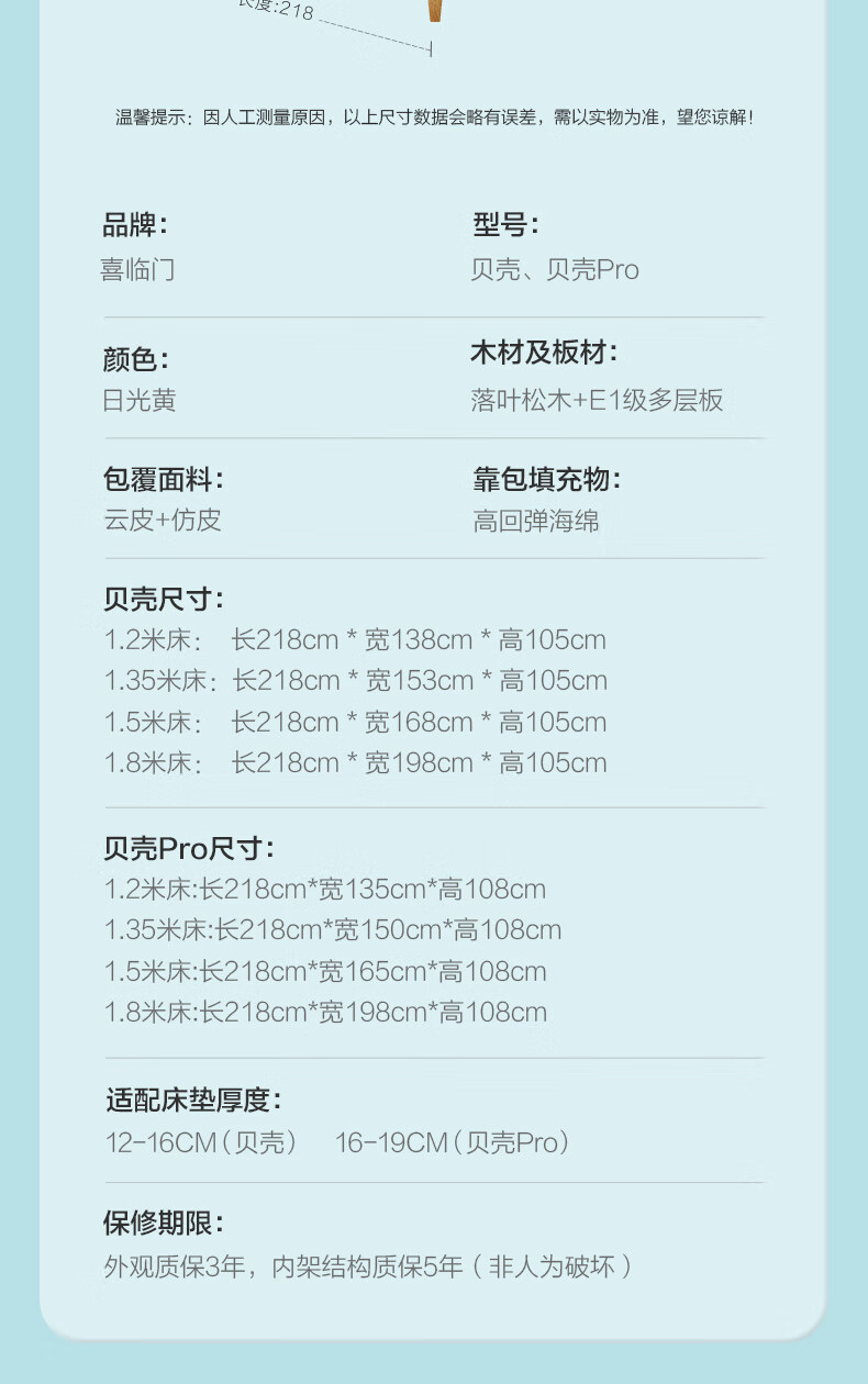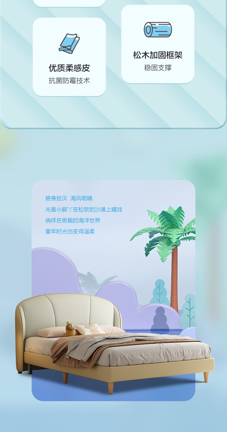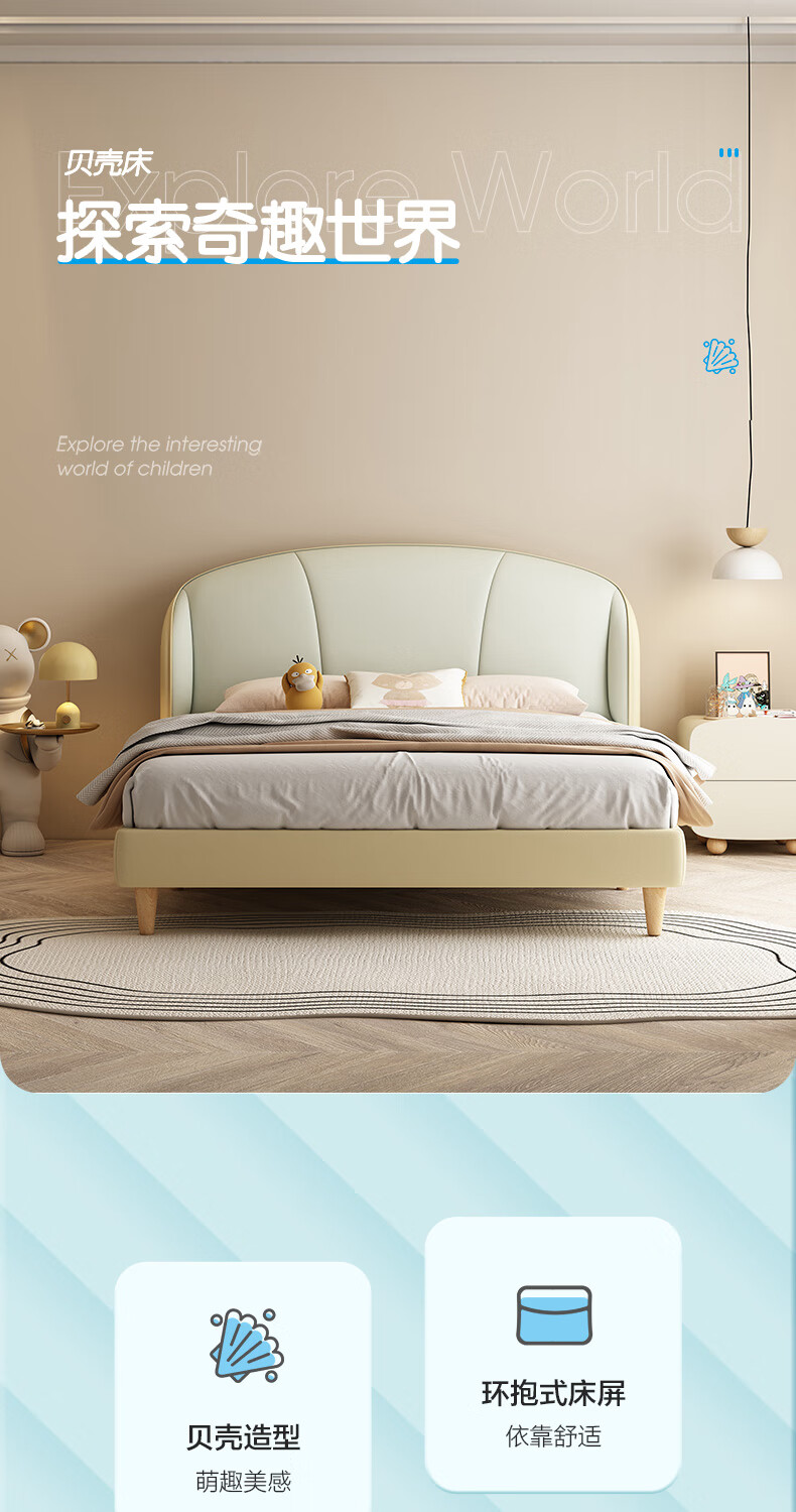 喜临门男孩女孩通用实木皮床 青少年双人床主卧学生床 贝壳pro[床架] 日光黄+升级款诺蓝10H床垫 1.5*2米