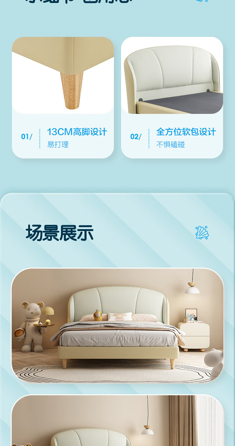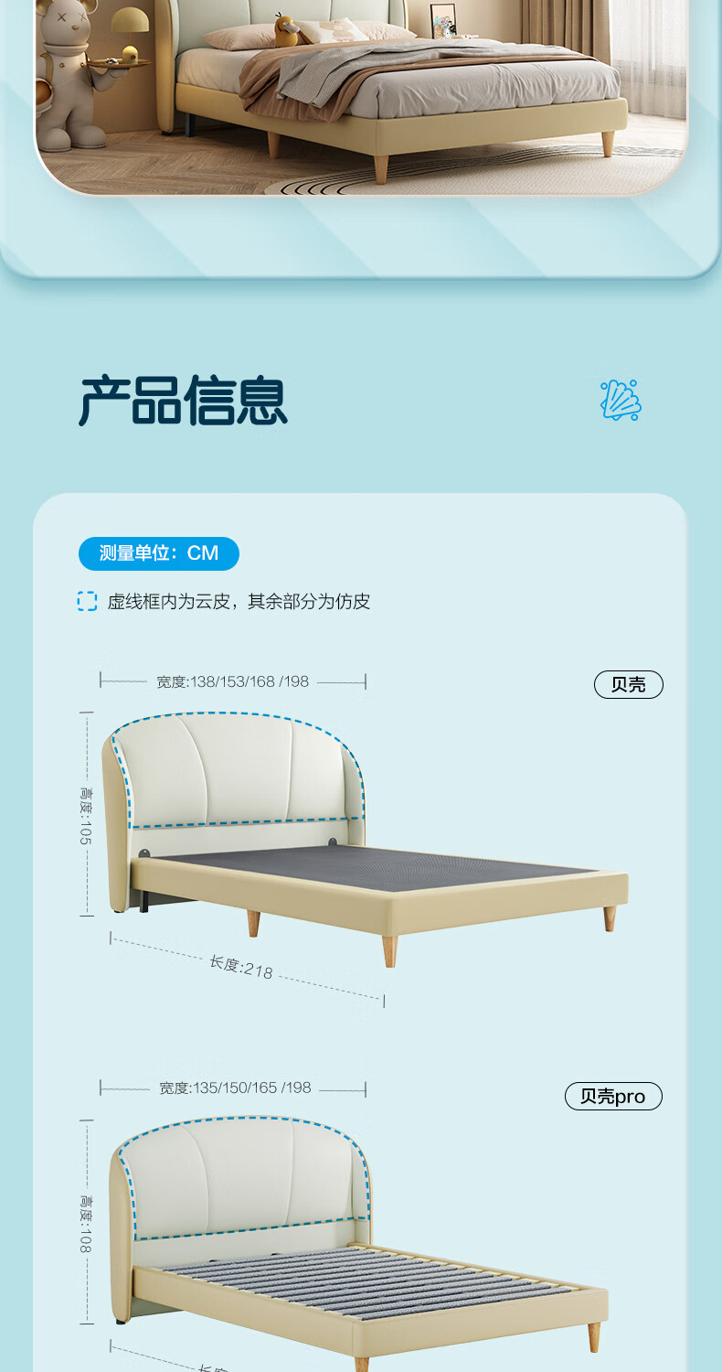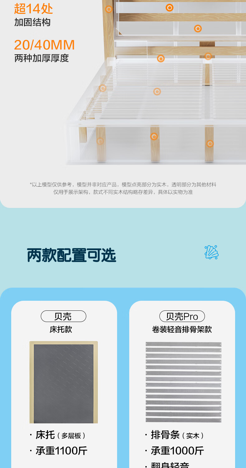 喜临门男孩女孩通用实木皮床 青少年双人床主卧学生床 贝壳pro[床架] 日光黄+升级款诺蓝10H床垫 1.5*2米