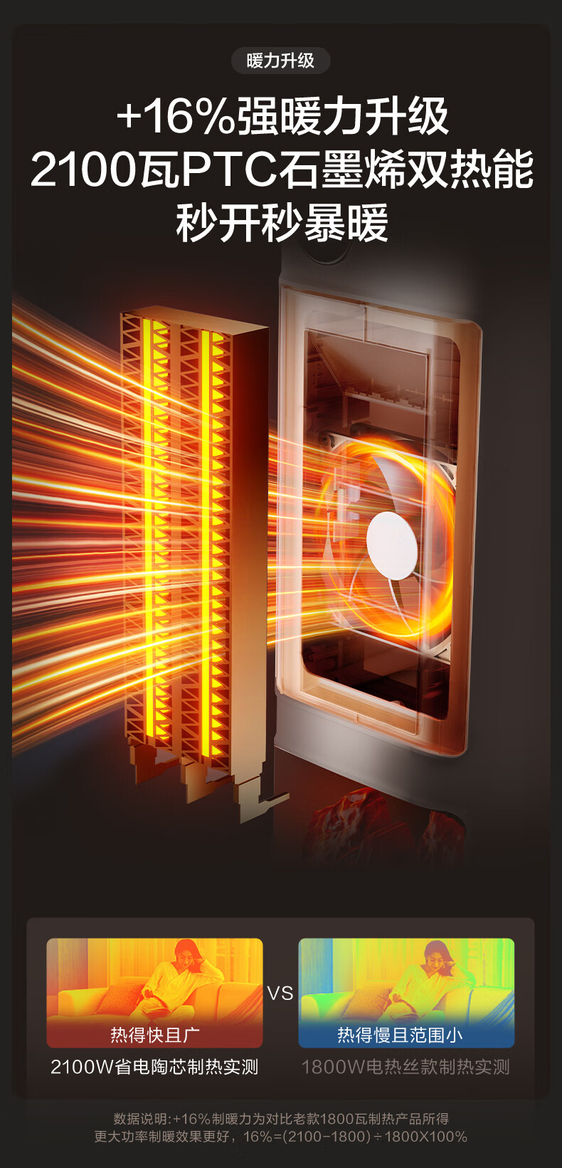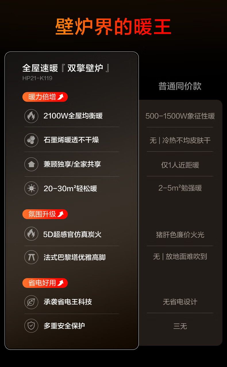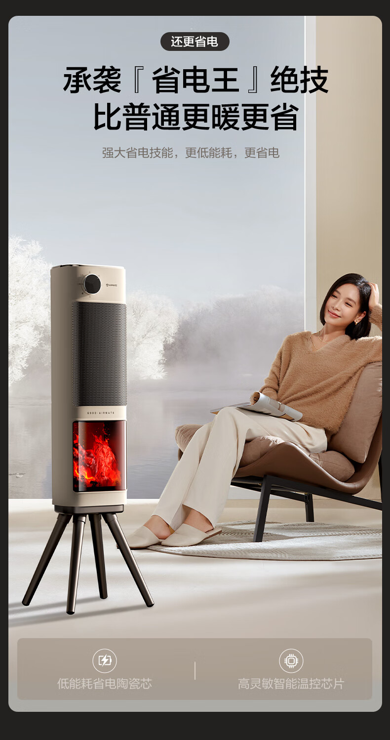艾美特石墨烯暖风机家用双擎制热取暖器仿真5D篝火壁炉电暖器家用节能省电 2100W 旋钮款 【仿真篝火 石墨烯速暖】HP21-K119