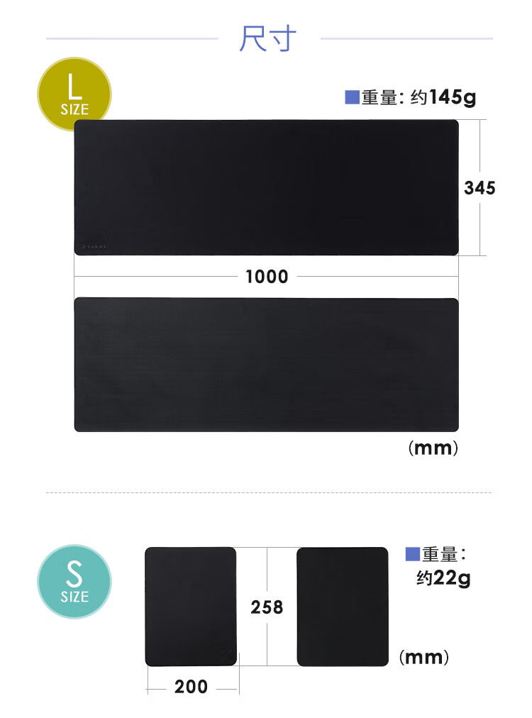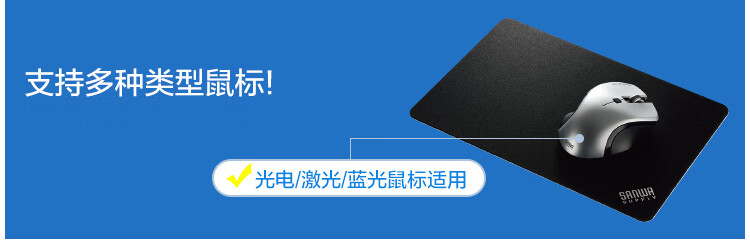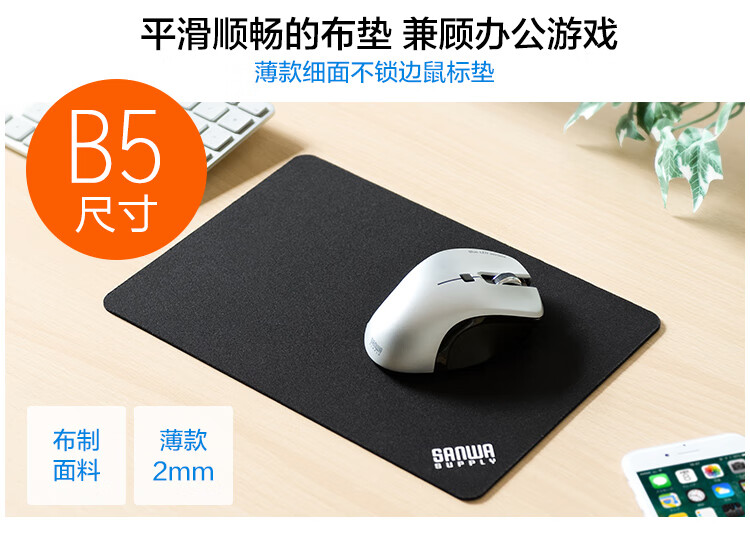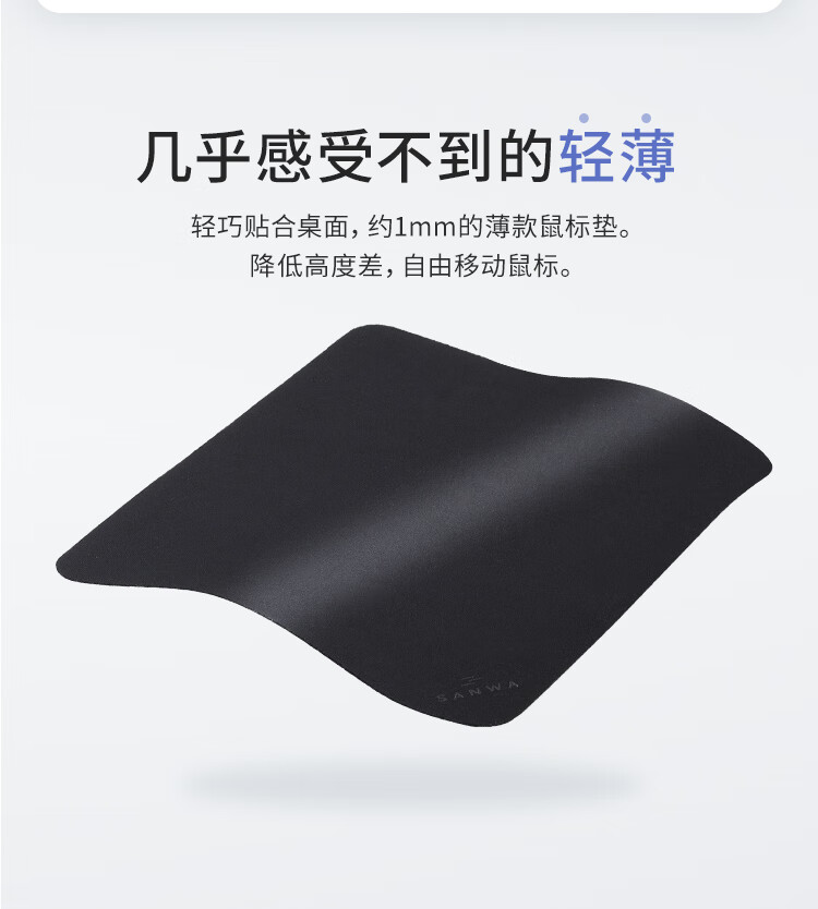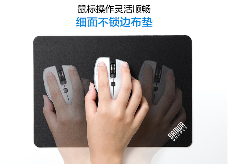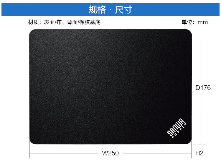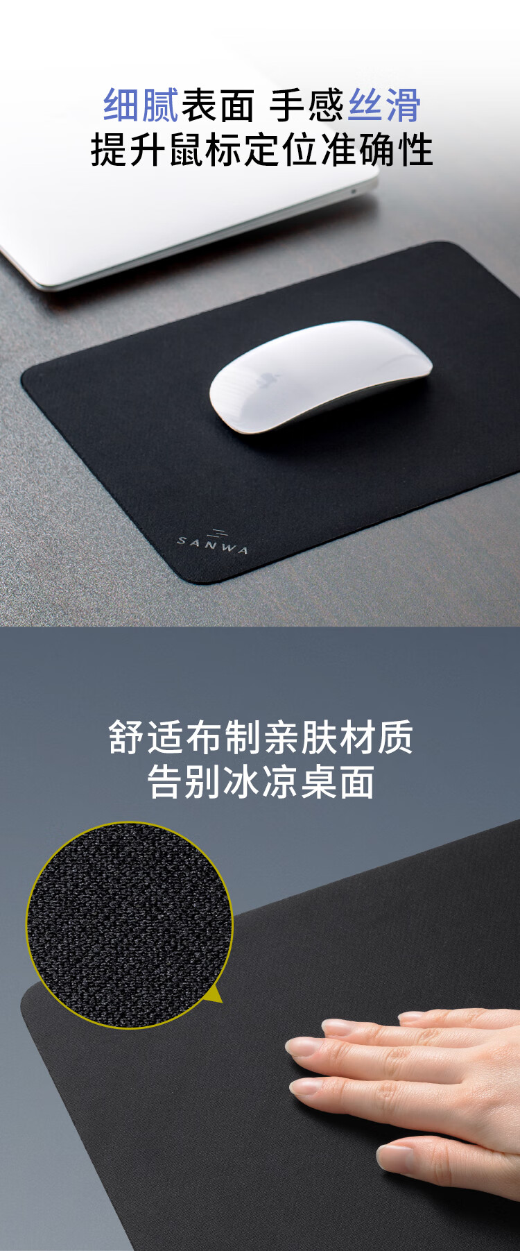SANWA中号薄款鼠标垫 细面不锁边布垫 橡胶底部防滑 办公游戏电竞 C4BK C4BK 通常款 250*176mm