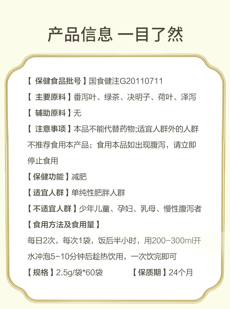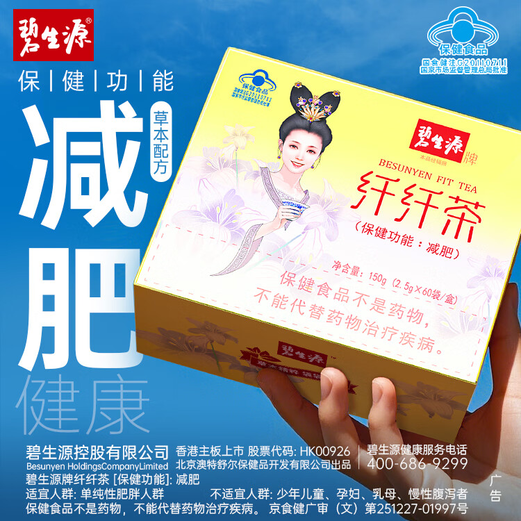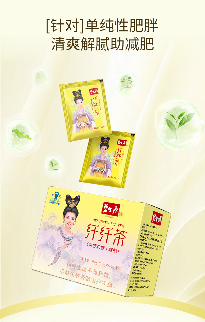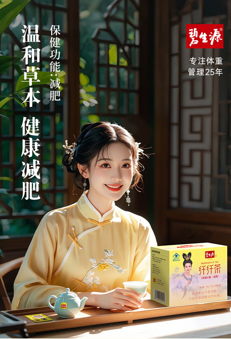 碧生源牌纤纤茶新减肥茶保健茶草本减肥温和草本健康减肥男女通用黄盒子 纤纤茶 60袋*1盒