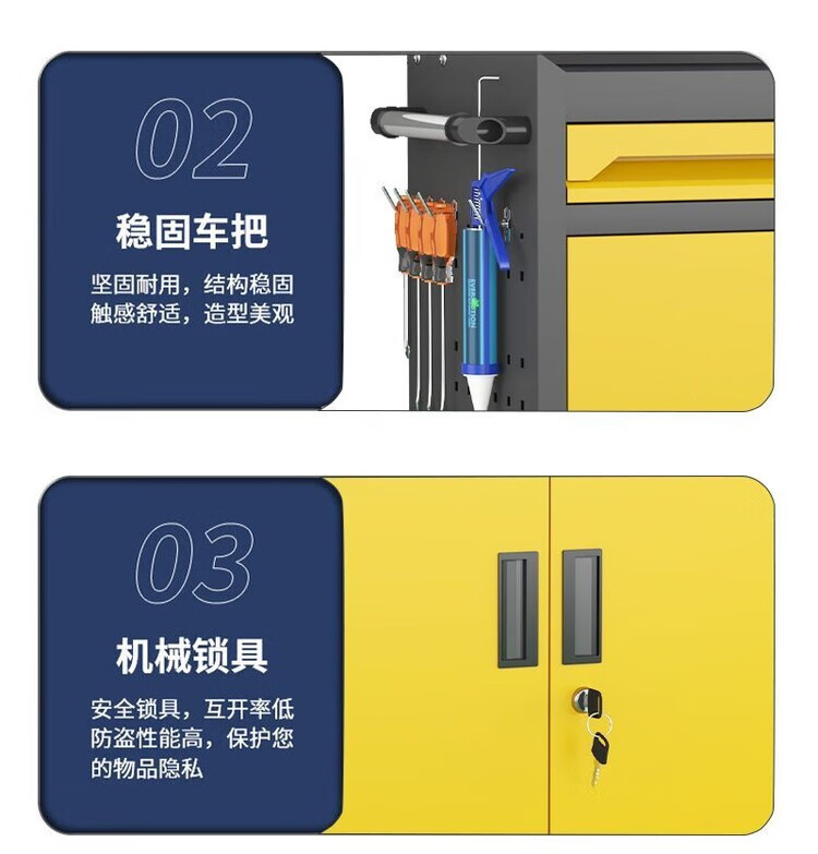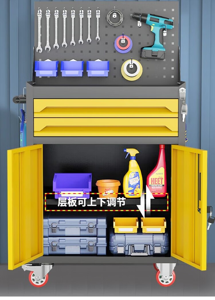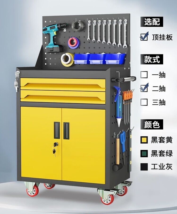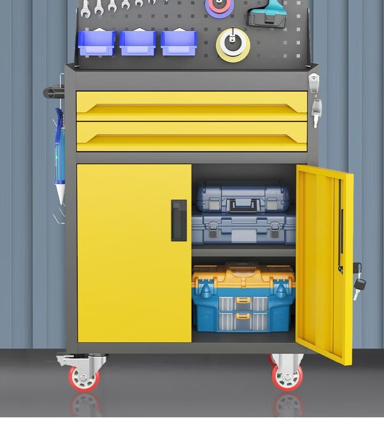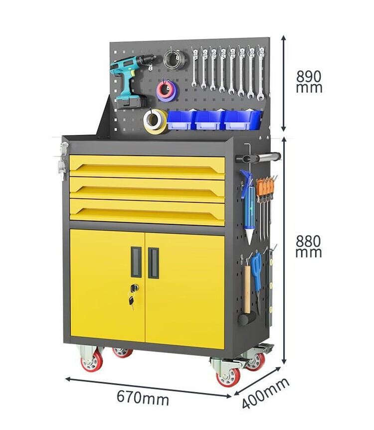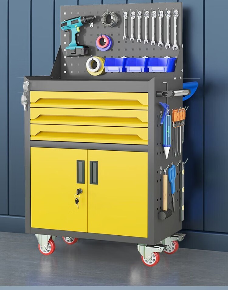 倘然之家移动五金工具车汽修车间用重型工具柜多功维修抽屉式带轮手推箱 【闪耀黄】/一抽工具车+挂板+轮