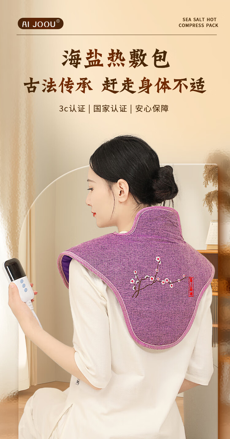 AI JOOU粗海盐袋热敷包肩颈椎热敷袋理疗袋 电加热披肩艾灸艾草热敷包 紫