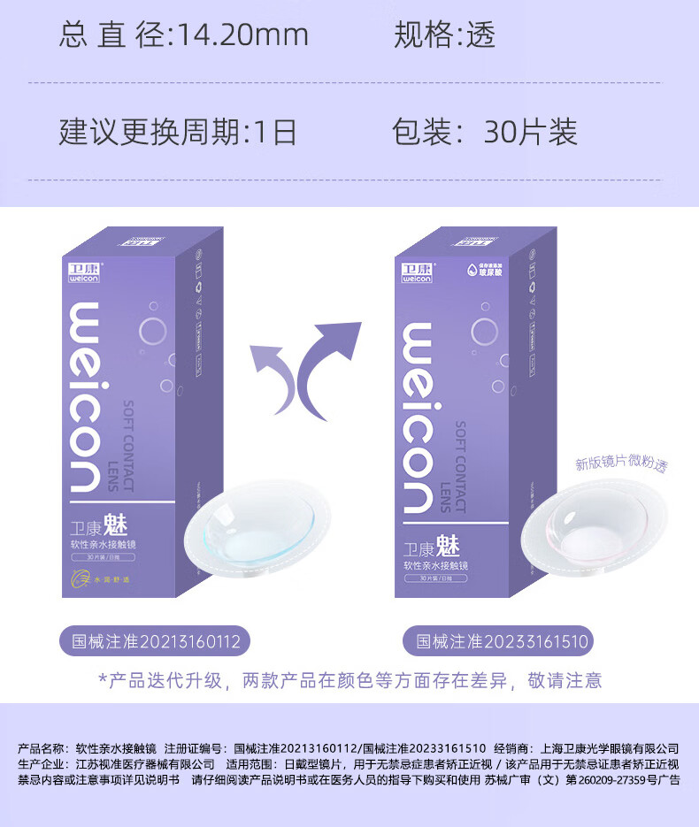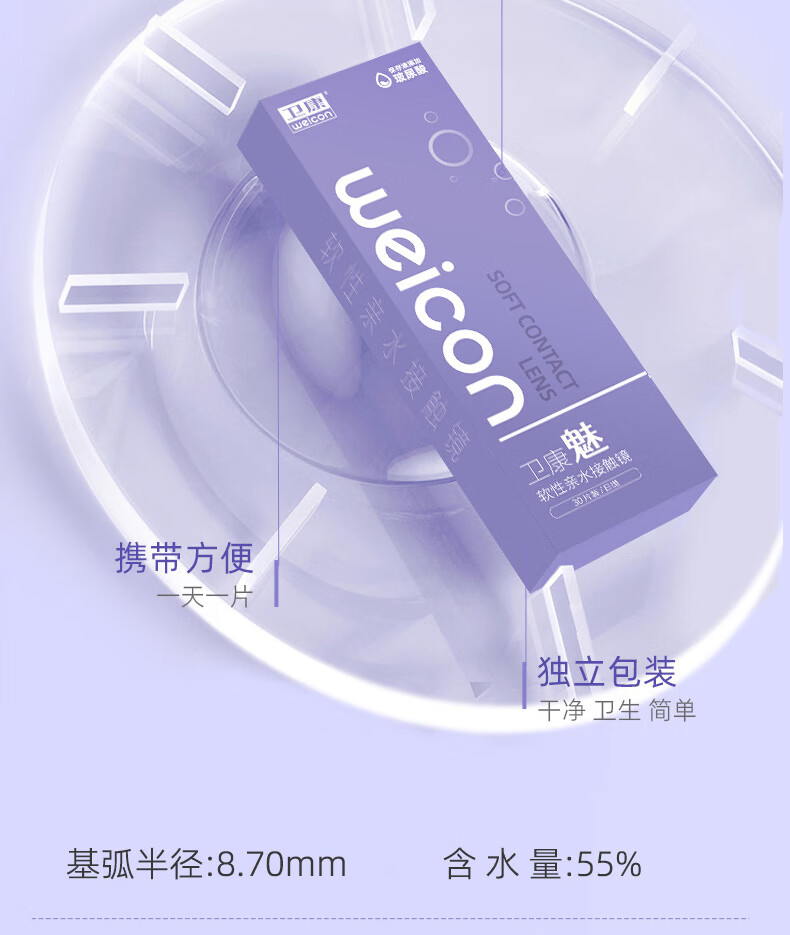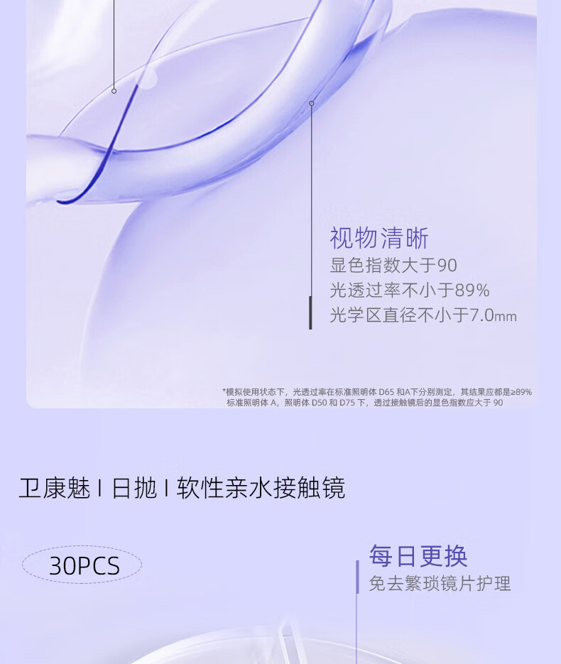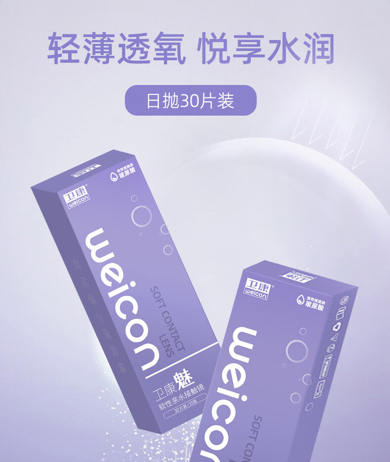 卫康魅透明隐形眼镜日抛 水润清晰防紫外线 30片装 350度