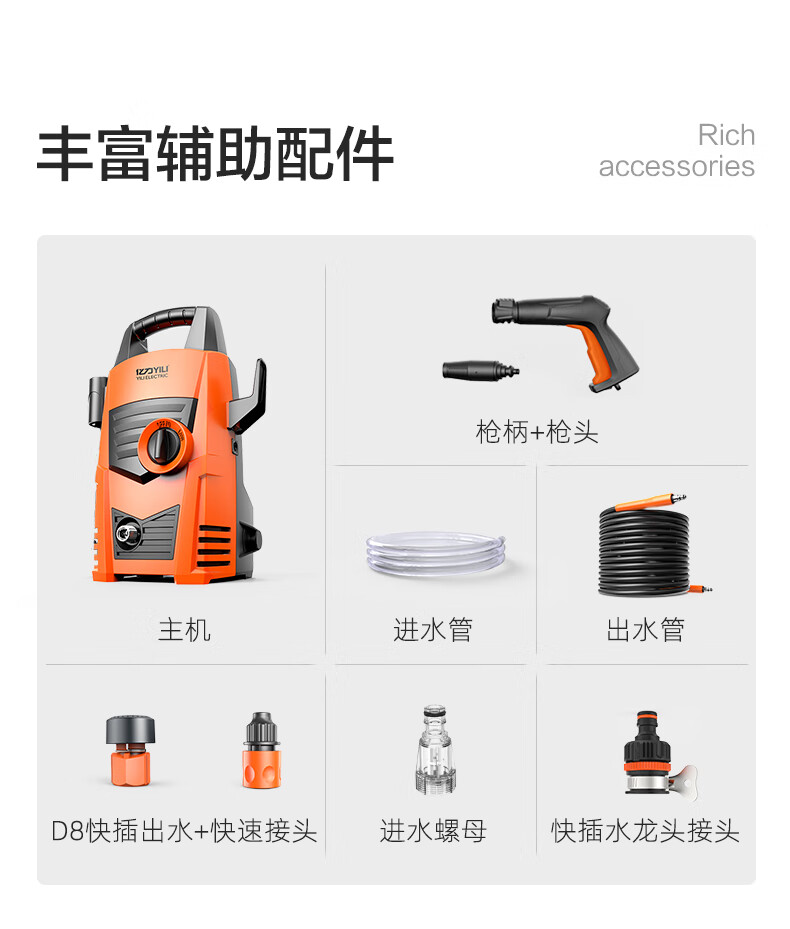 亿力高压洗车机4435H 1400W家用清洗机高压洗车水枪洗车神器全套水枪