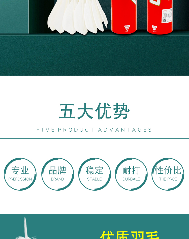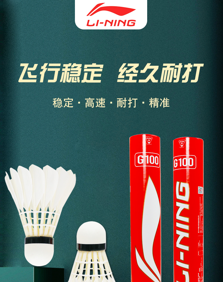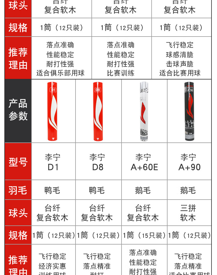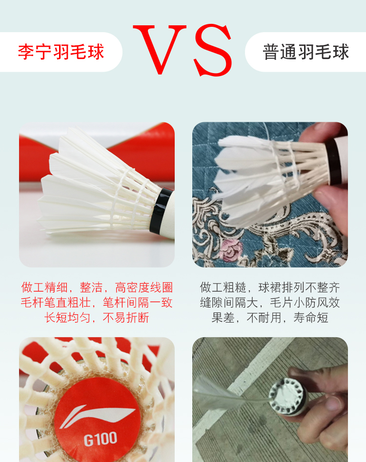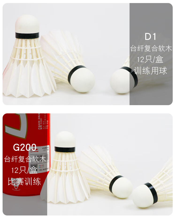 李宁羽毛球耐打防风训练球室内室外比赛鹅毛打不烂耐用稳定专业耐打王 D8训练比赛 77速12只 1筒