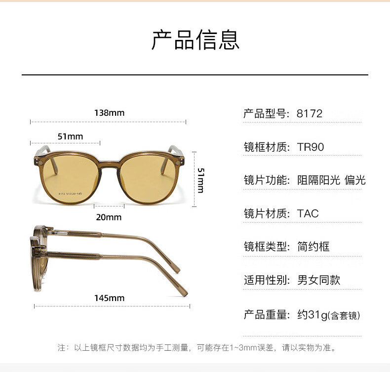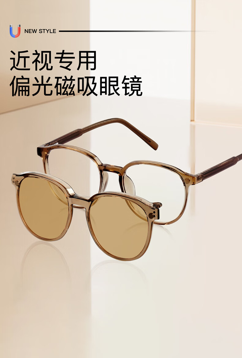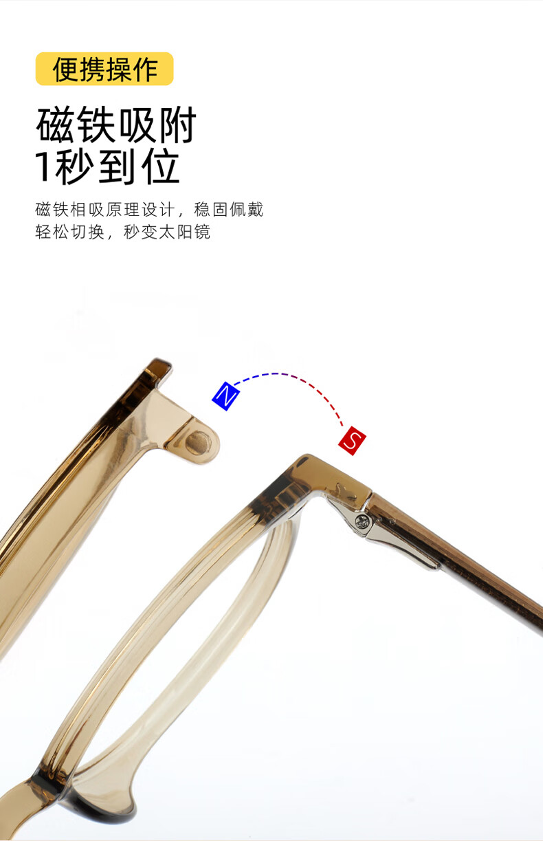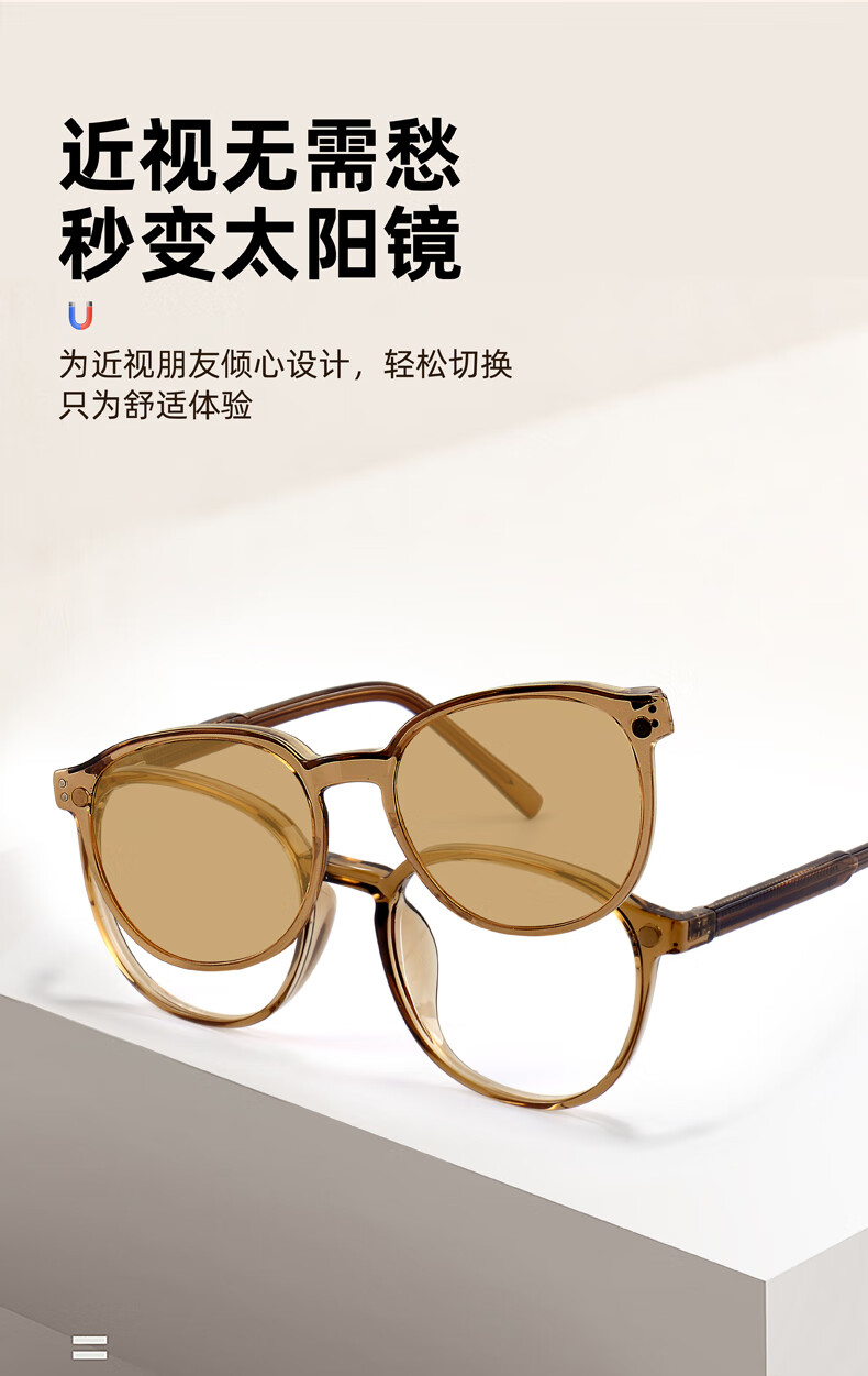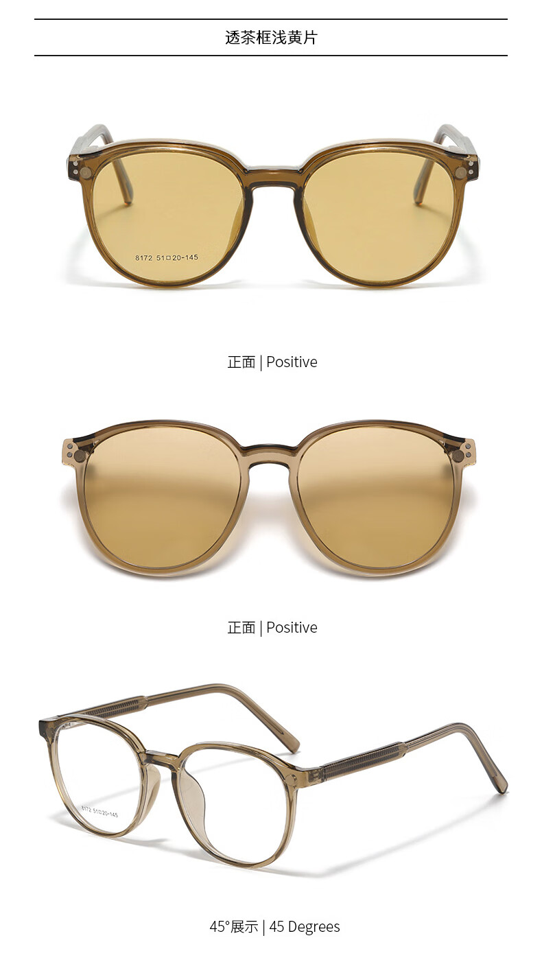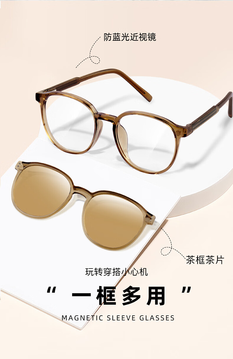 目匠磁吸套镜可上翻盖墨镜夹片二合一近视眼专用太阳镜偏光眼镜 8172 透茶框浅黄色片 防蓝光配镜(1.67防蓝光镜片)