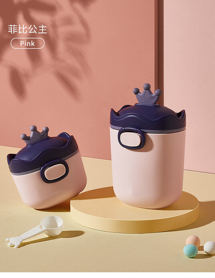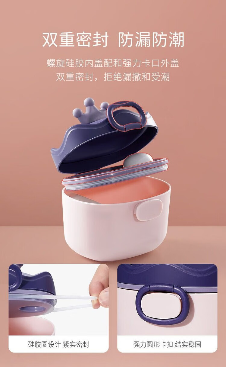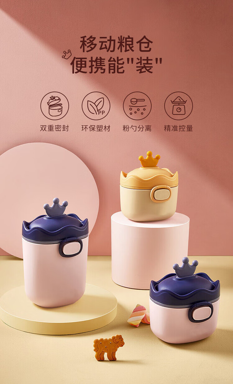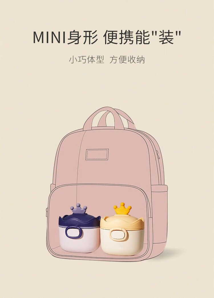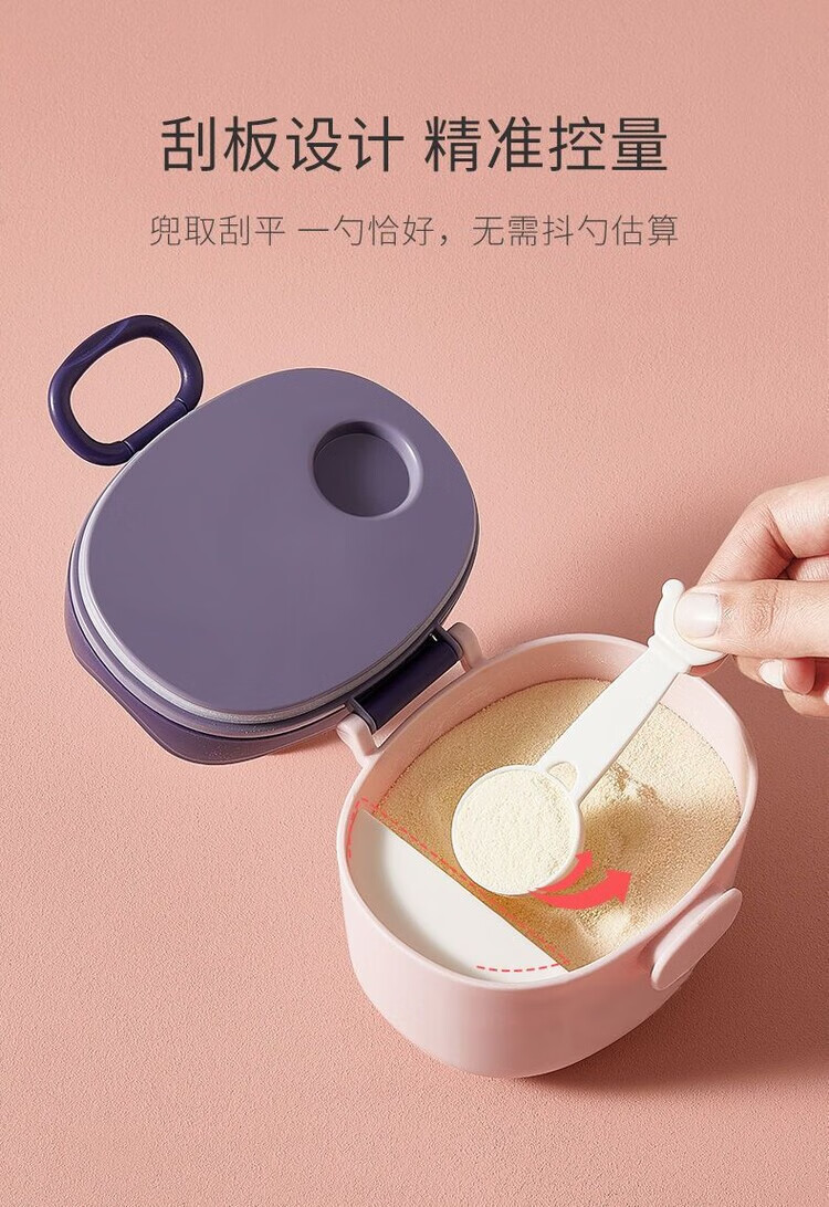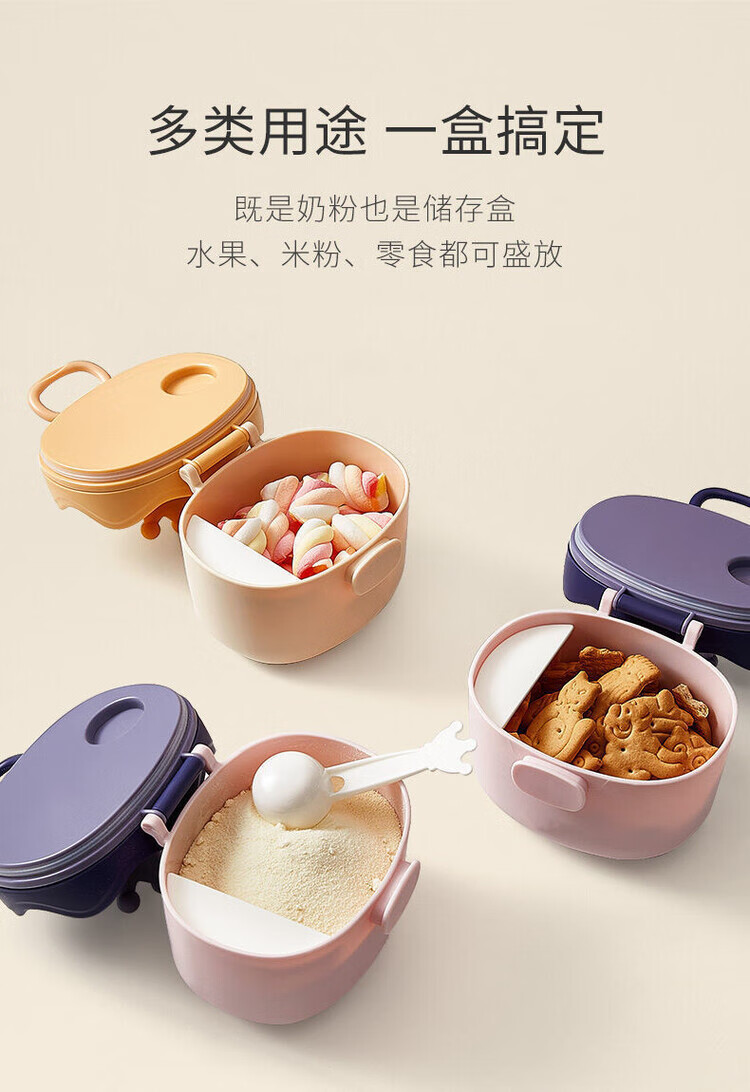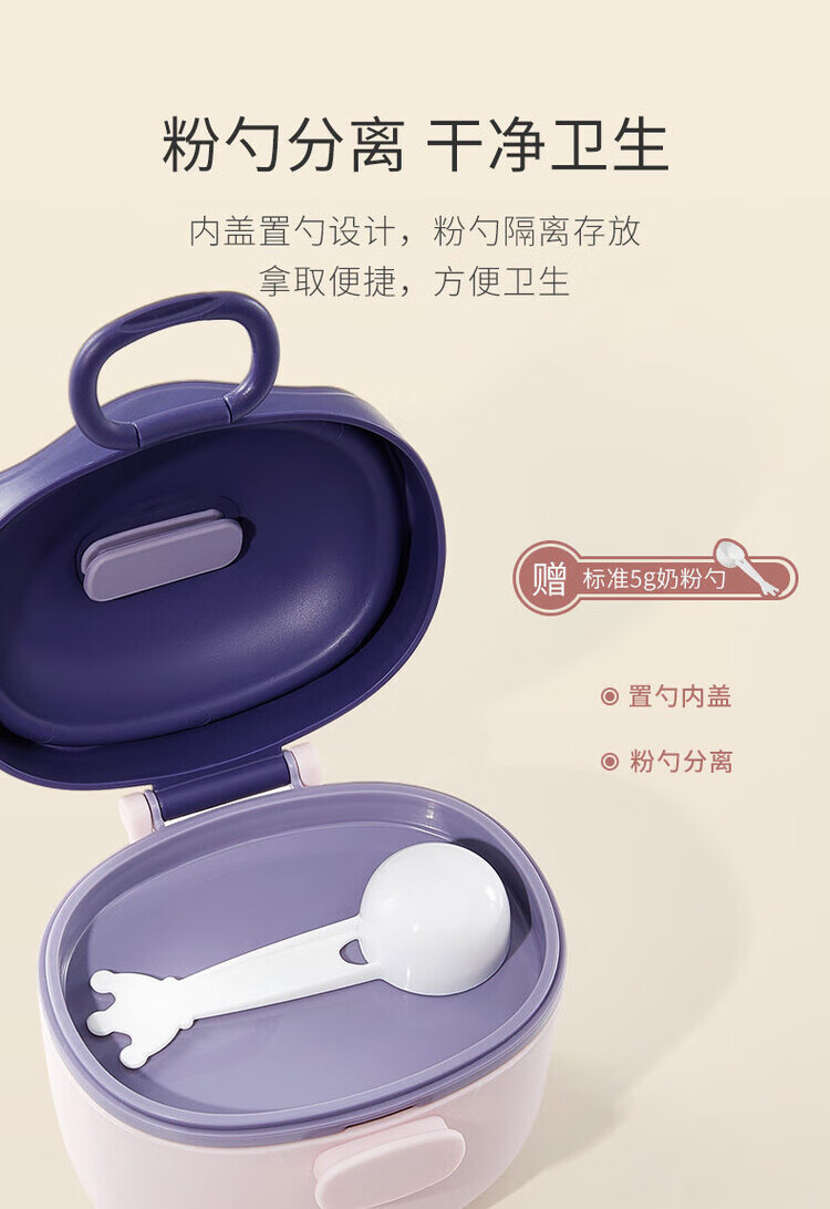 LZJV婴儿奶粉盒便携式外出密封防潮分装盒储存罐辅食米粉盒装奶粉分格 杏色挂绳款 中号 约装30勺