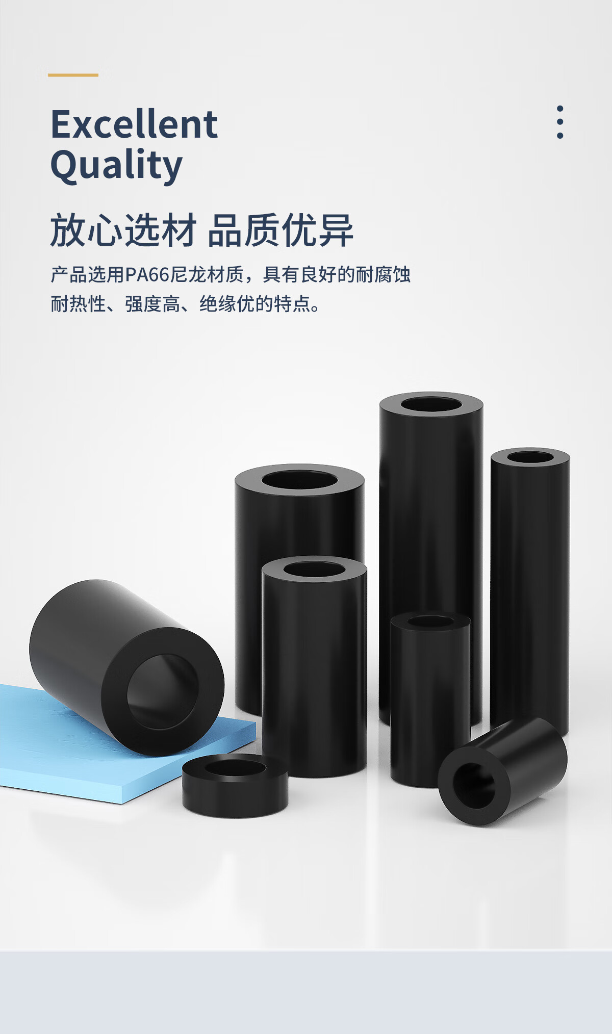 固万基(GUWANJI)ABS间隔柱绝缘柱垫高柱垫圈圆孔塑料垫片直通柱尼龙套管空心圆柱 7*3.2*2[1000个]