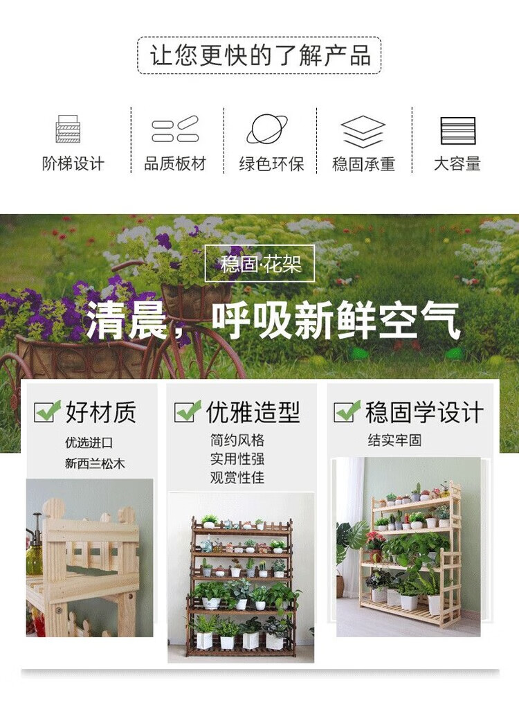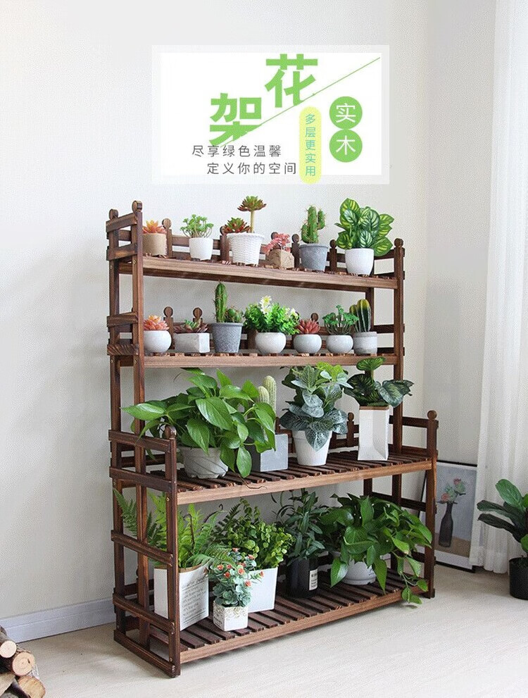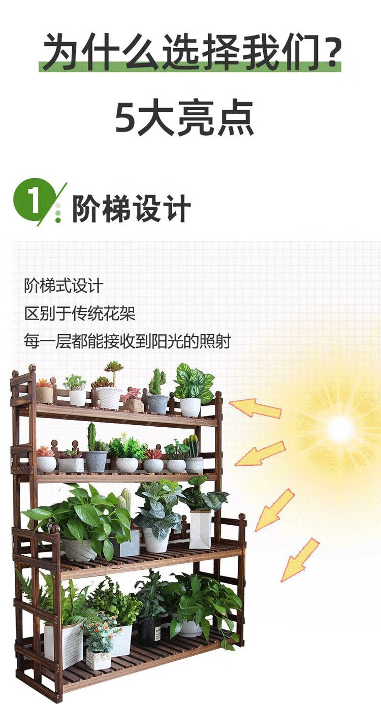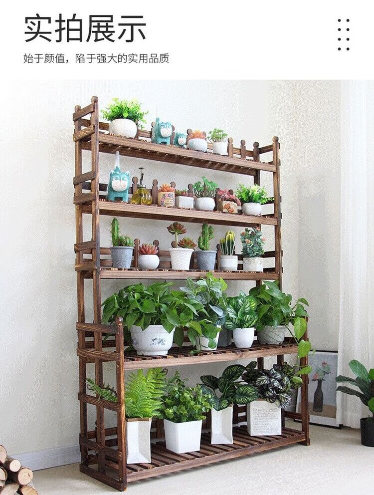 弘星隆花架置物架阳台花架子室内家用可移动客厅落地式铁艺多层花盆托架 碳色四层62cm长