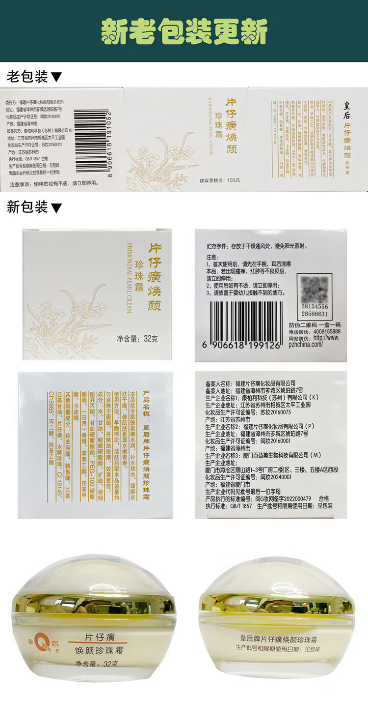片仔癀焕颜珍珠霜32g 皇后珍珠霜保湿改善暗沉提亮肤色面霜国货珍珠膏 32g*1瓶装