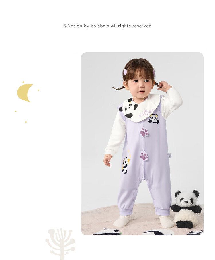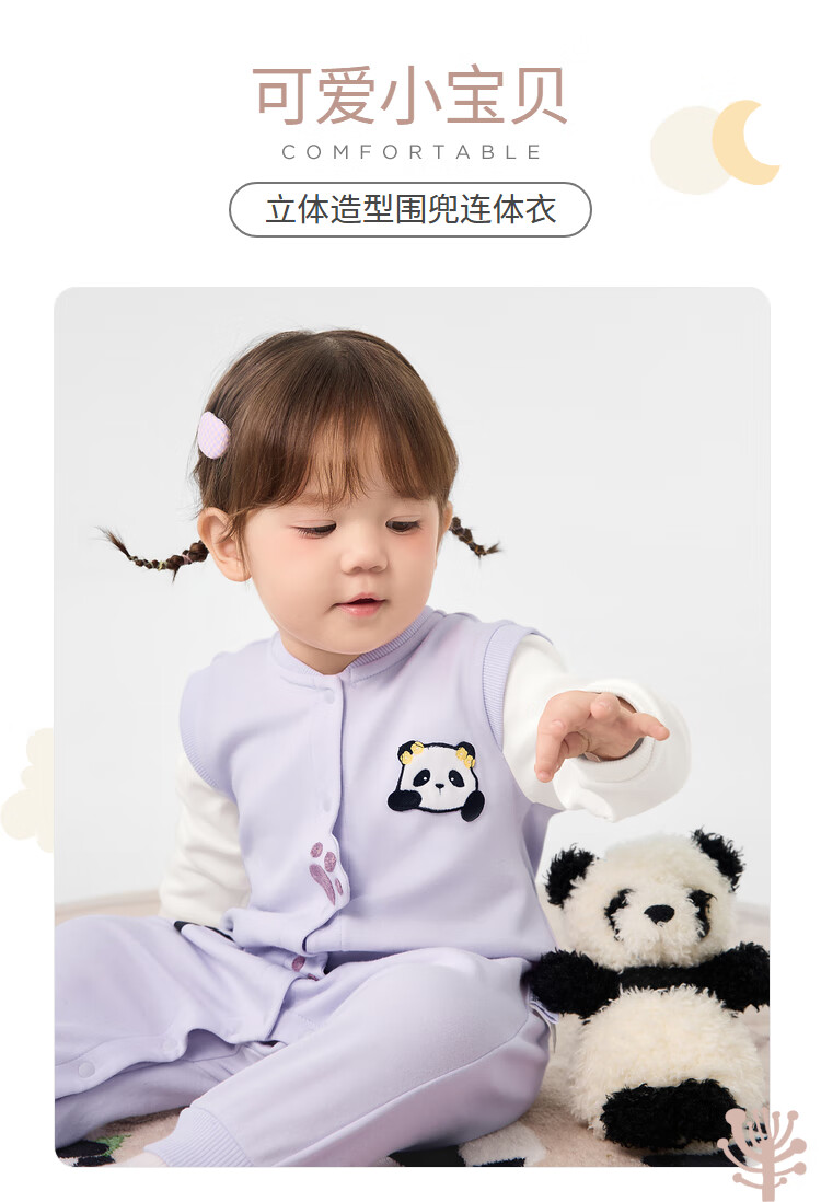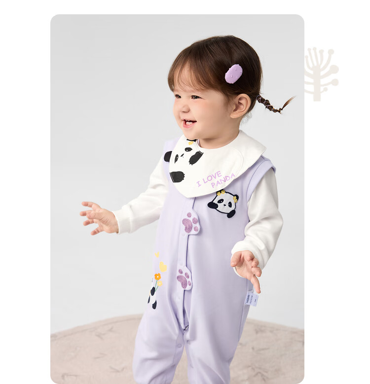 巴拉巴拉婴儿衣服连体衣秋装宝宝外出包屁衣立体围兜可爱清新甜美 粉紫70032 80cm