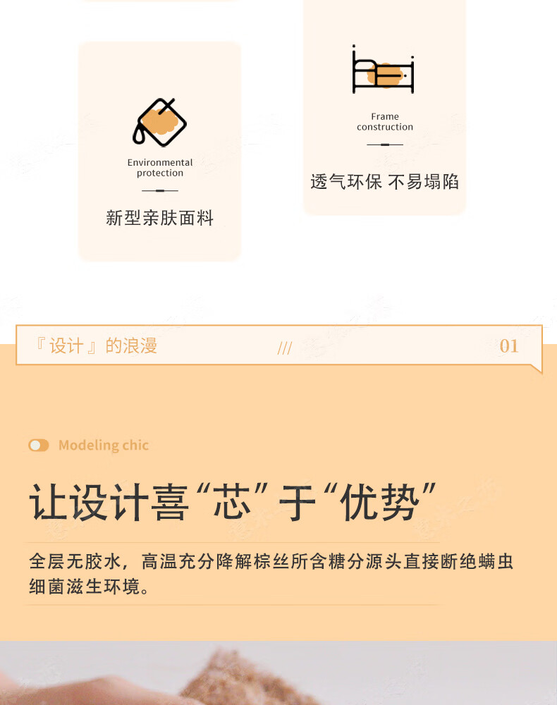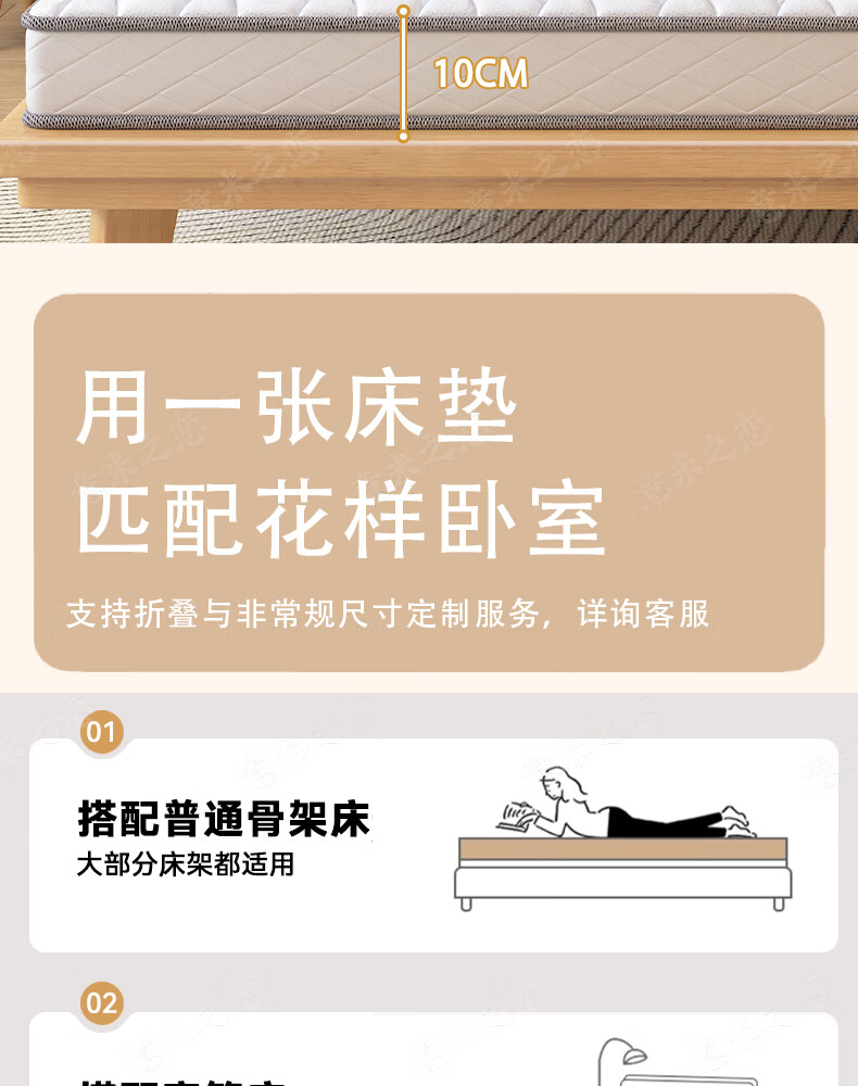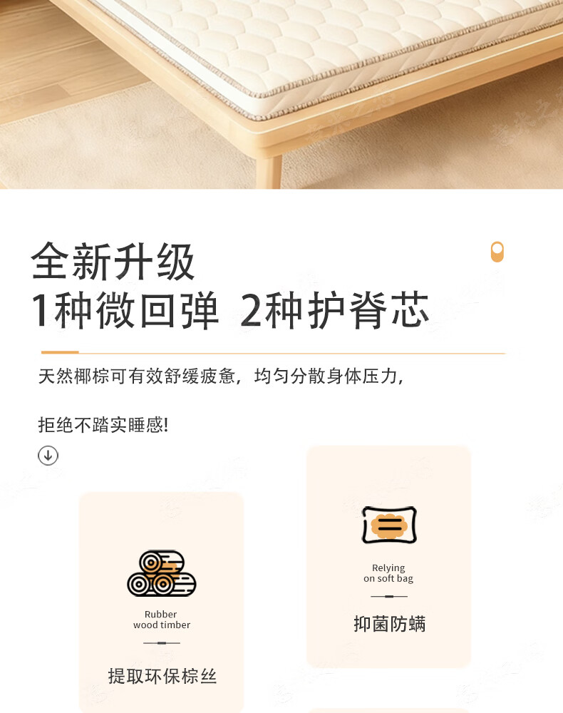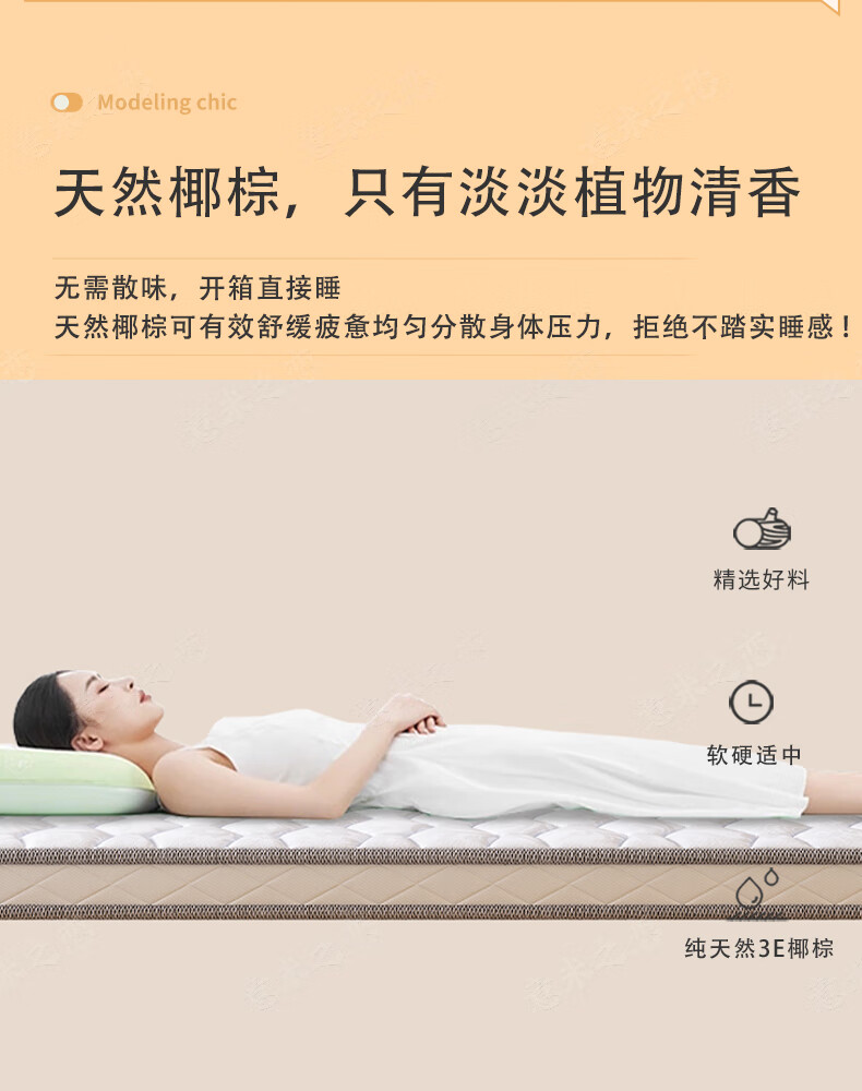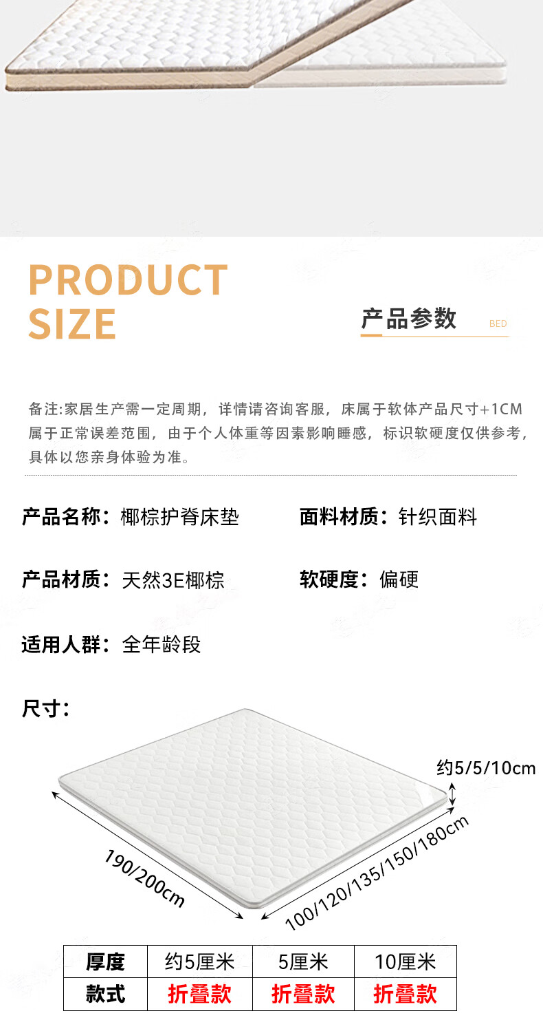 意米之恋天然环保椰棕床垫棕垫加厚棕榈护脊可折叠厚10cm 1.8m*2m YZ-15X