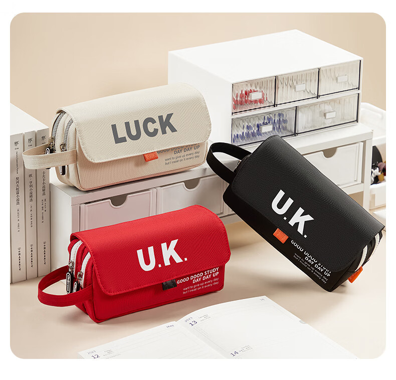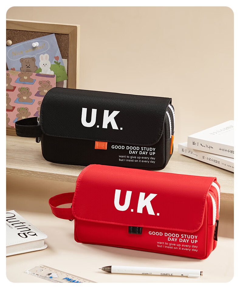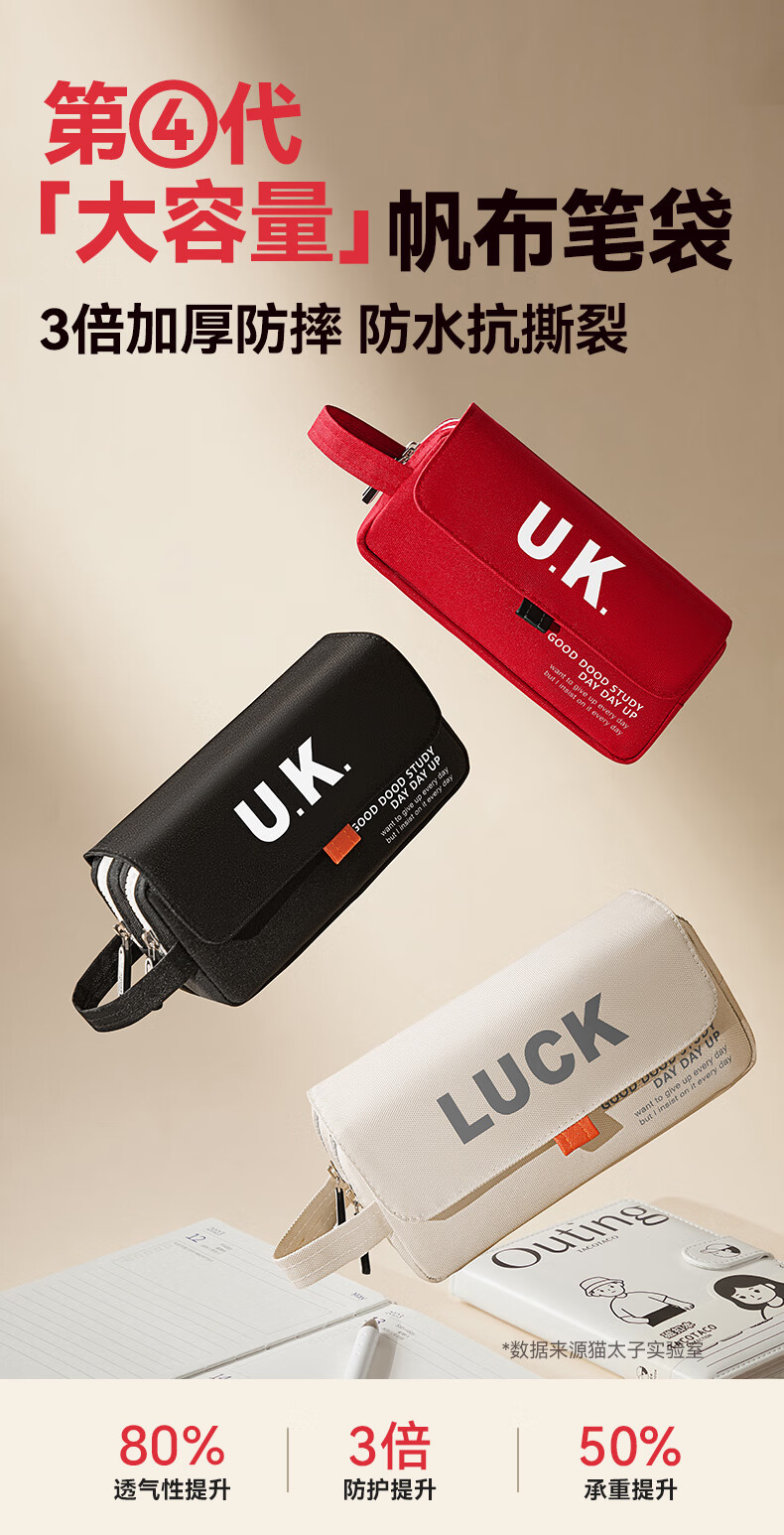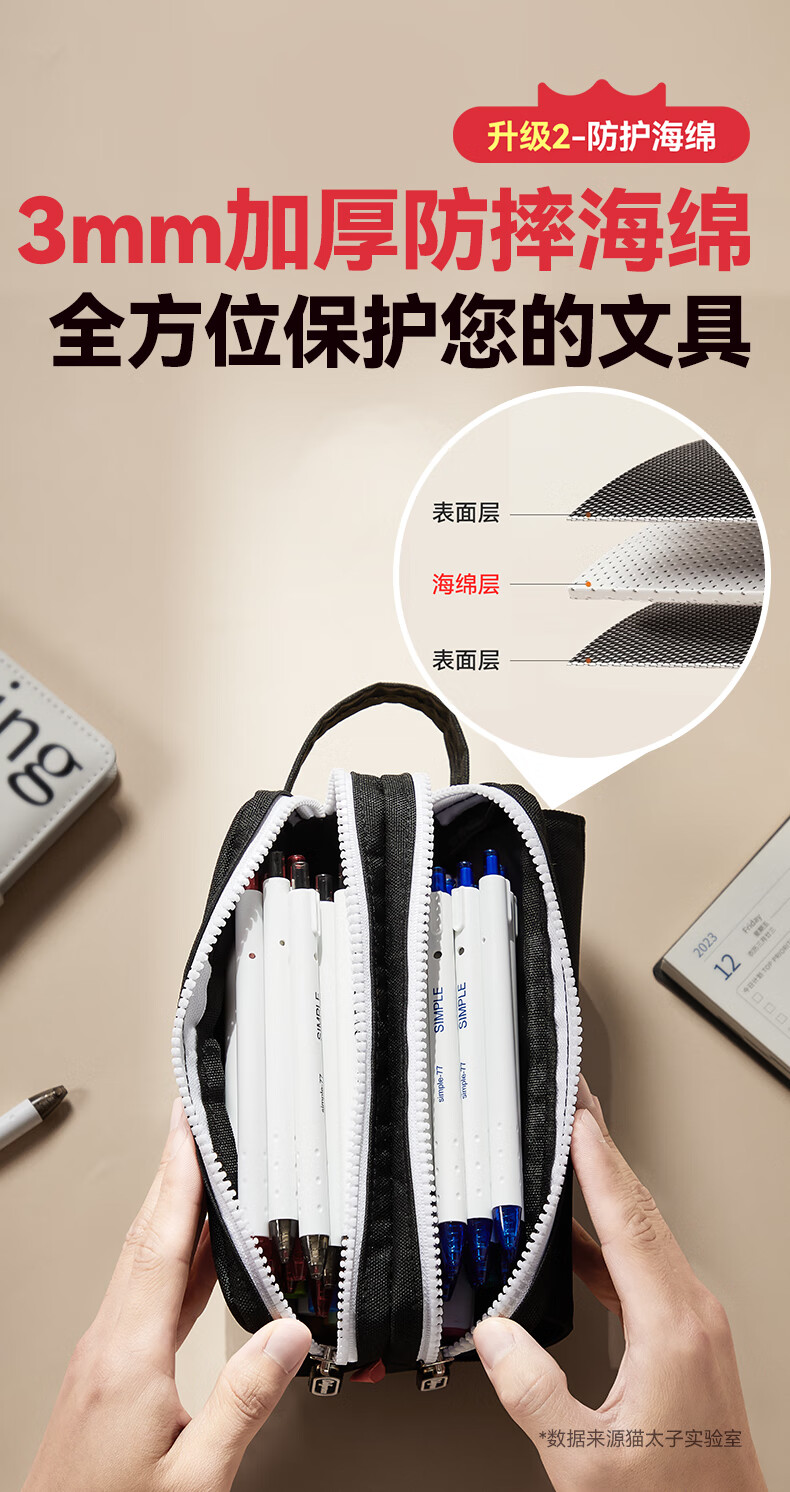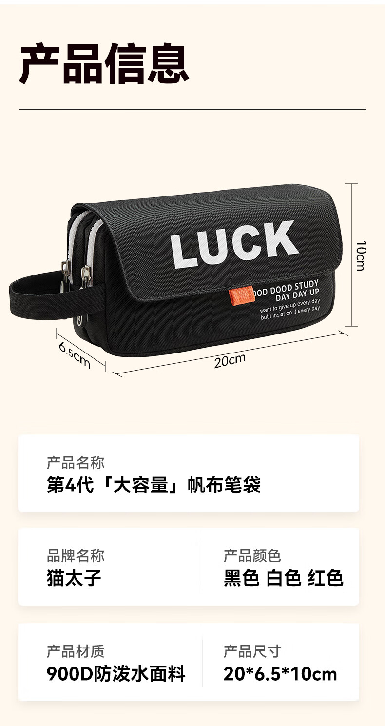 猫太子笔袋男生帆布大容量高中铅笔盒男孩款简约学生初中女生孩子文具盒小学生ins日系2025年新款手提 【双层大容量】UK-黑色