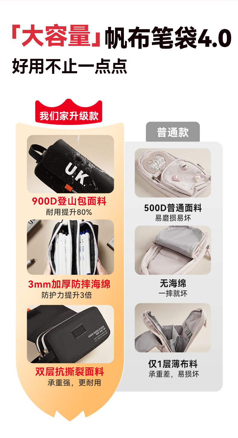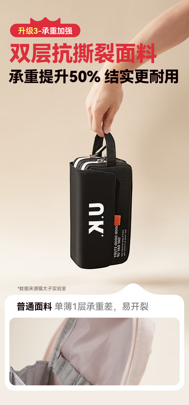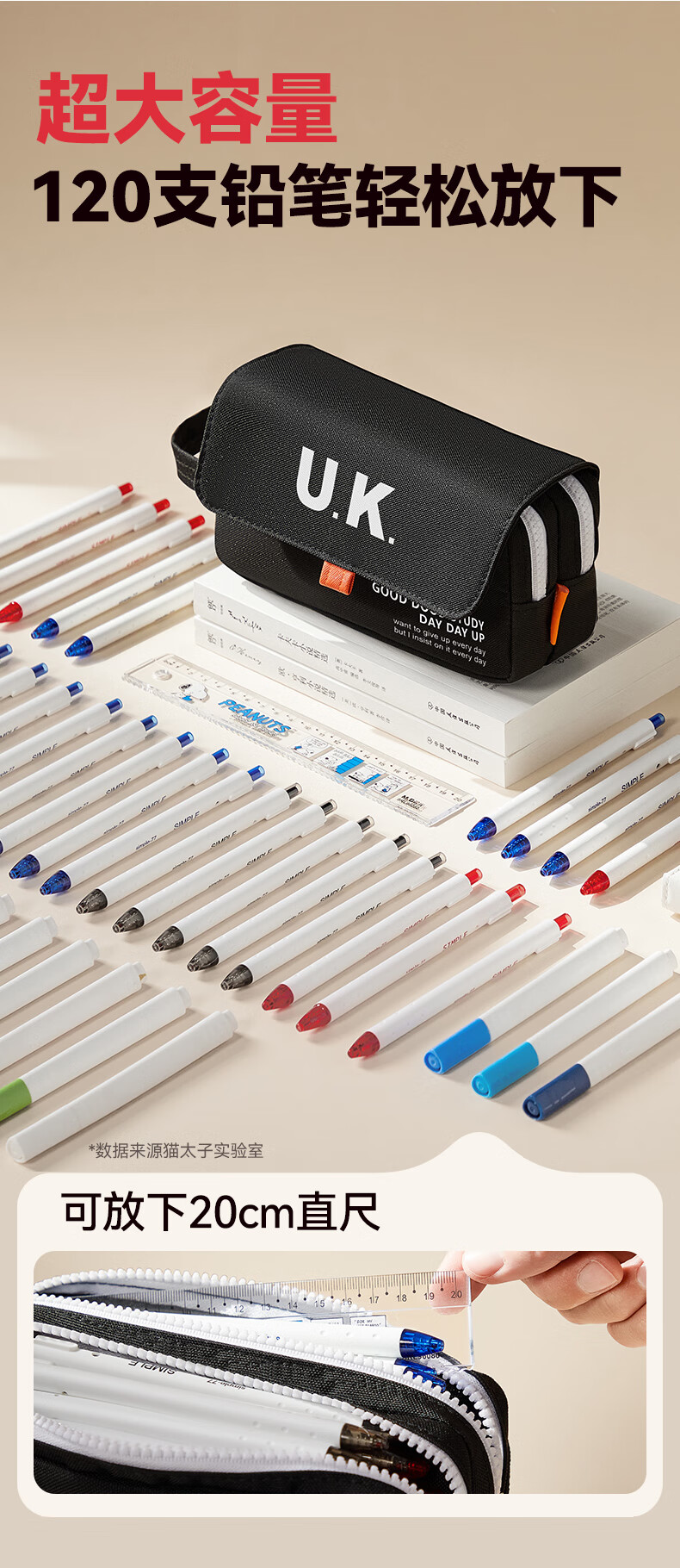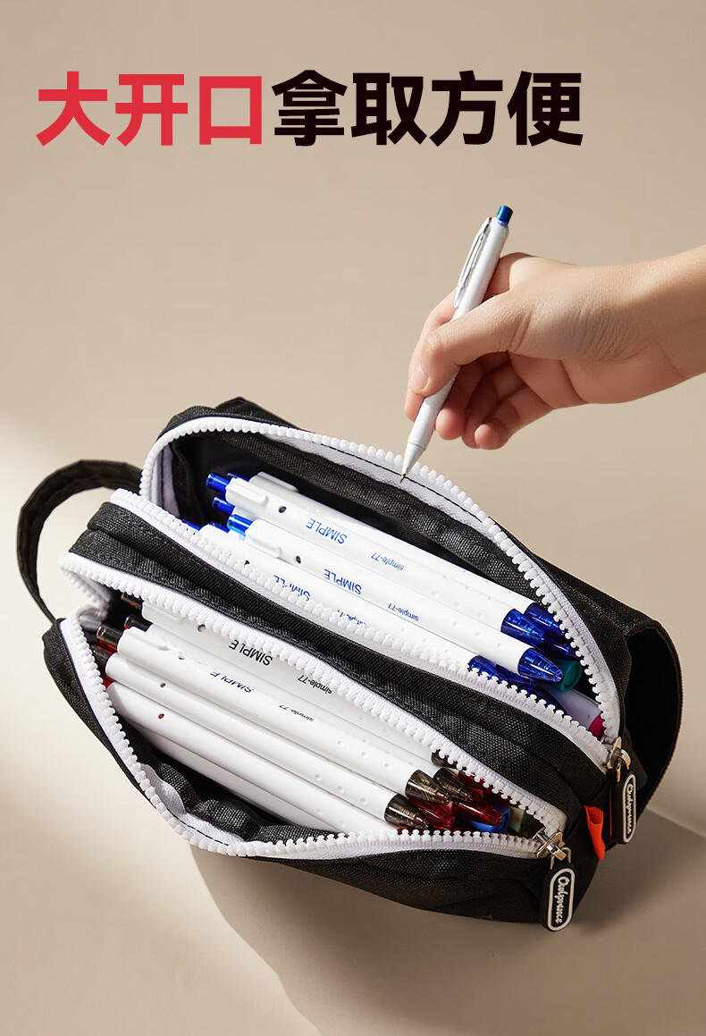 猫太子笔袋男生帆布大容量高中铅笔盒男孩款简约学生初中女生孩子文具盒小学生ins日系2025年新款手提 【双层大容量】UK-黑色