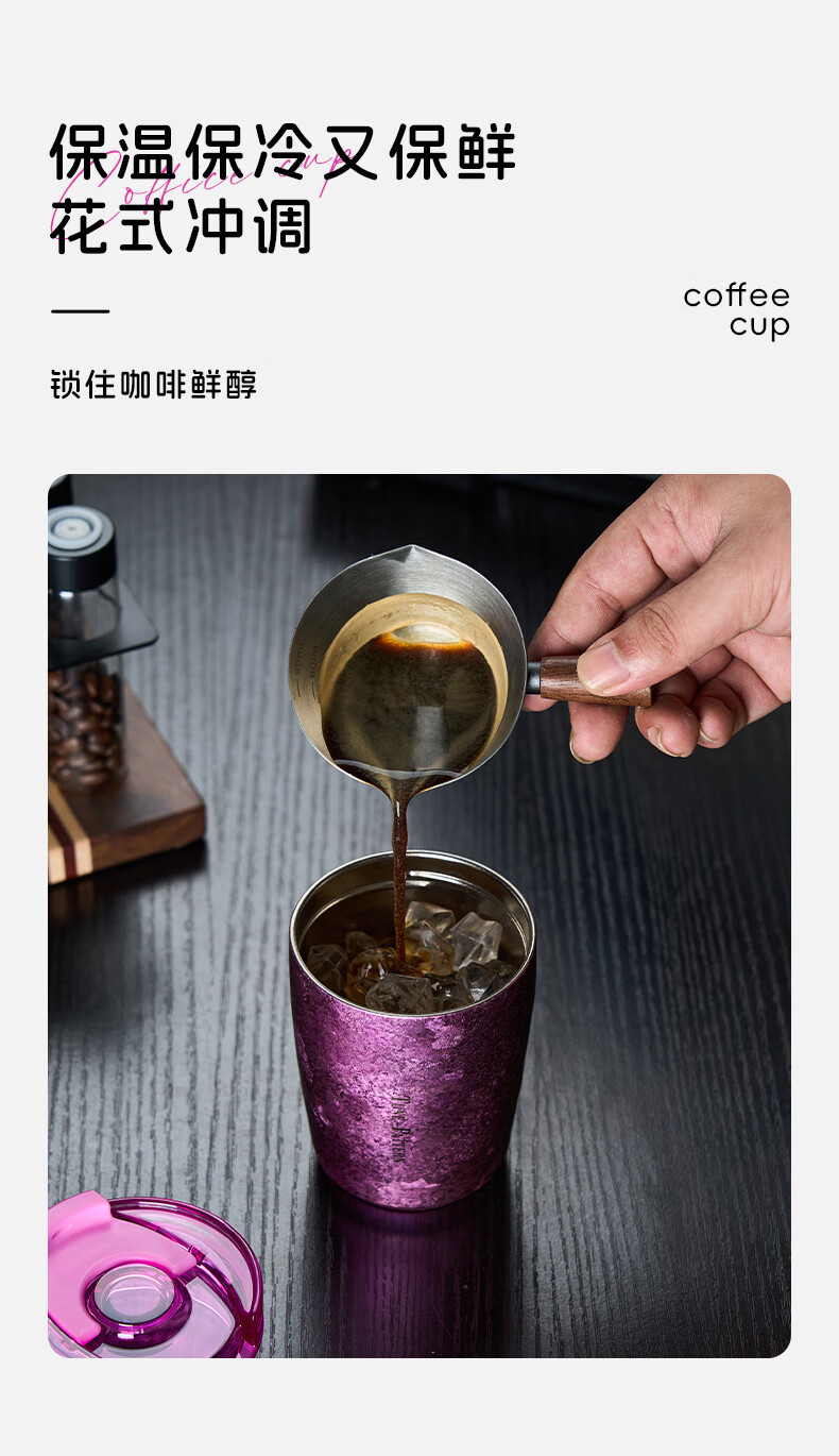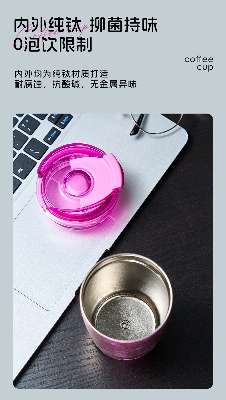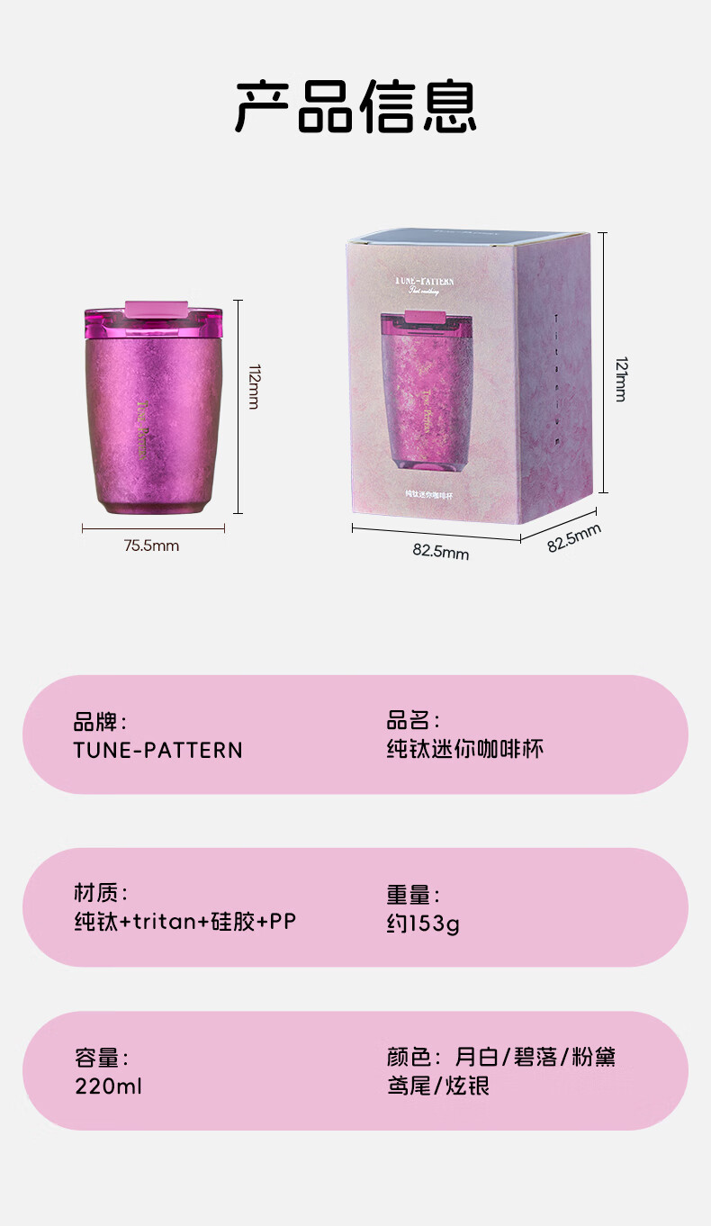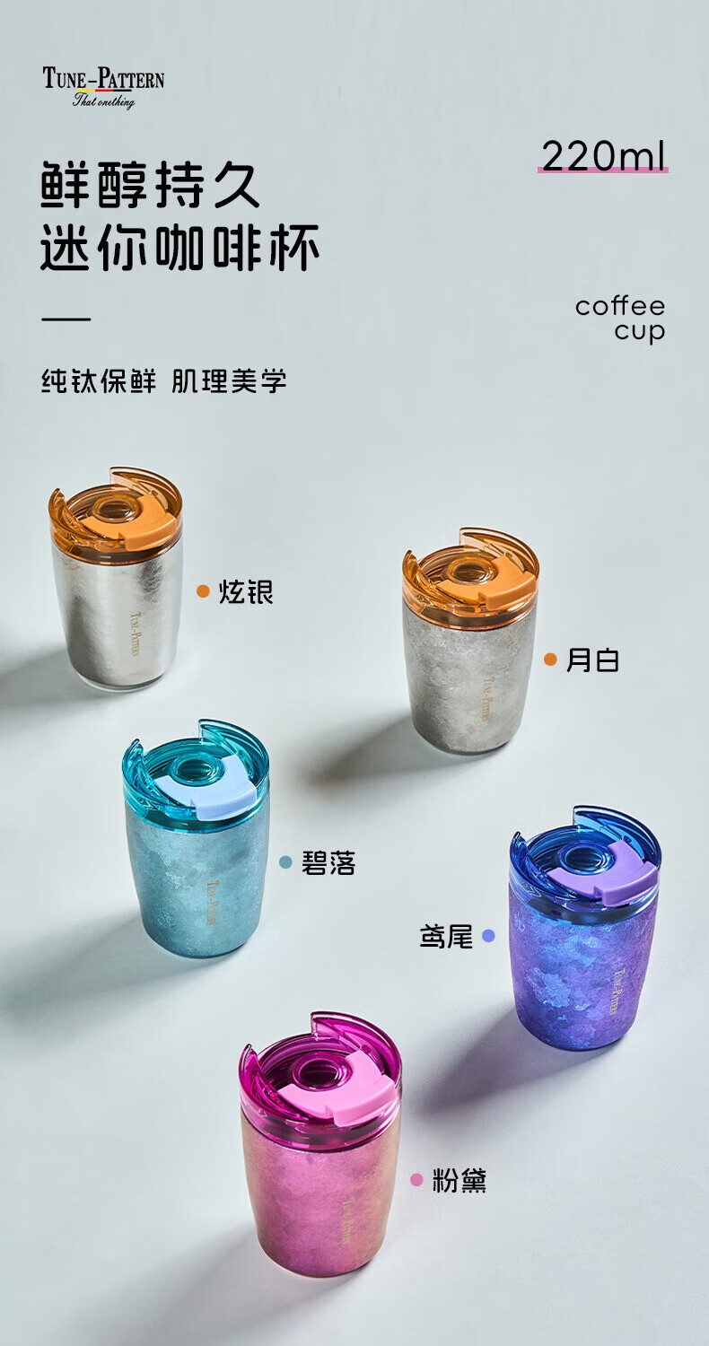 TUNE-PATTERN汀派纯钛咖啡杯保温杯便携高颜值双层钛车载随行杯抑菌锁鲜送礼杯 鸢尾【送定制杯刷】220ml