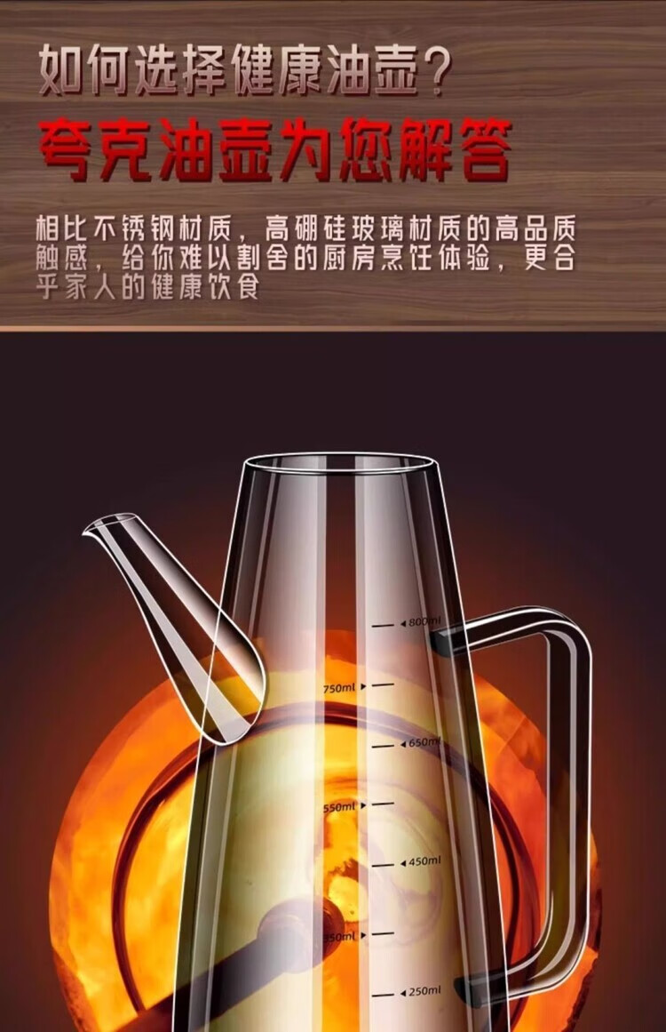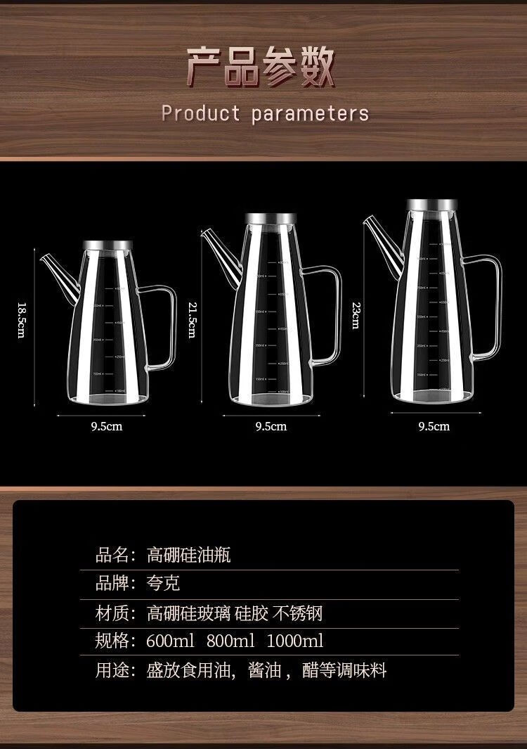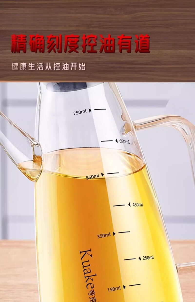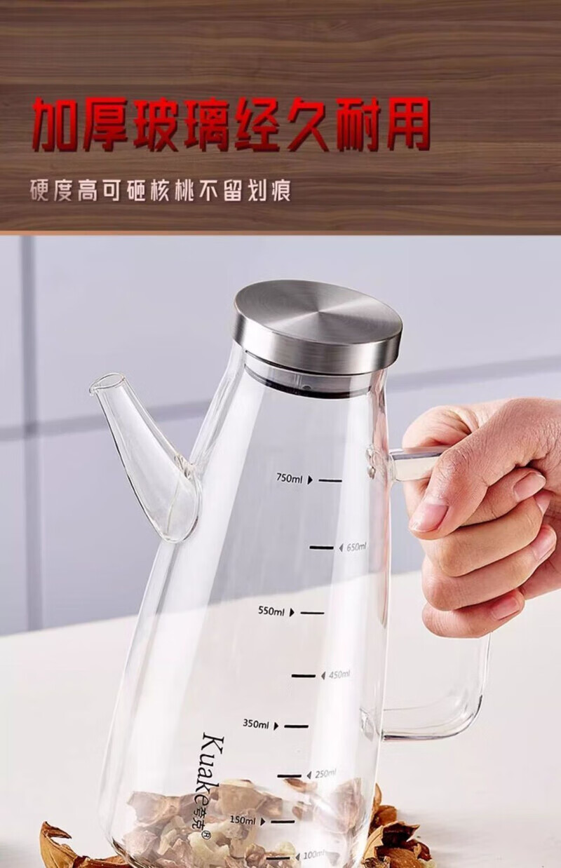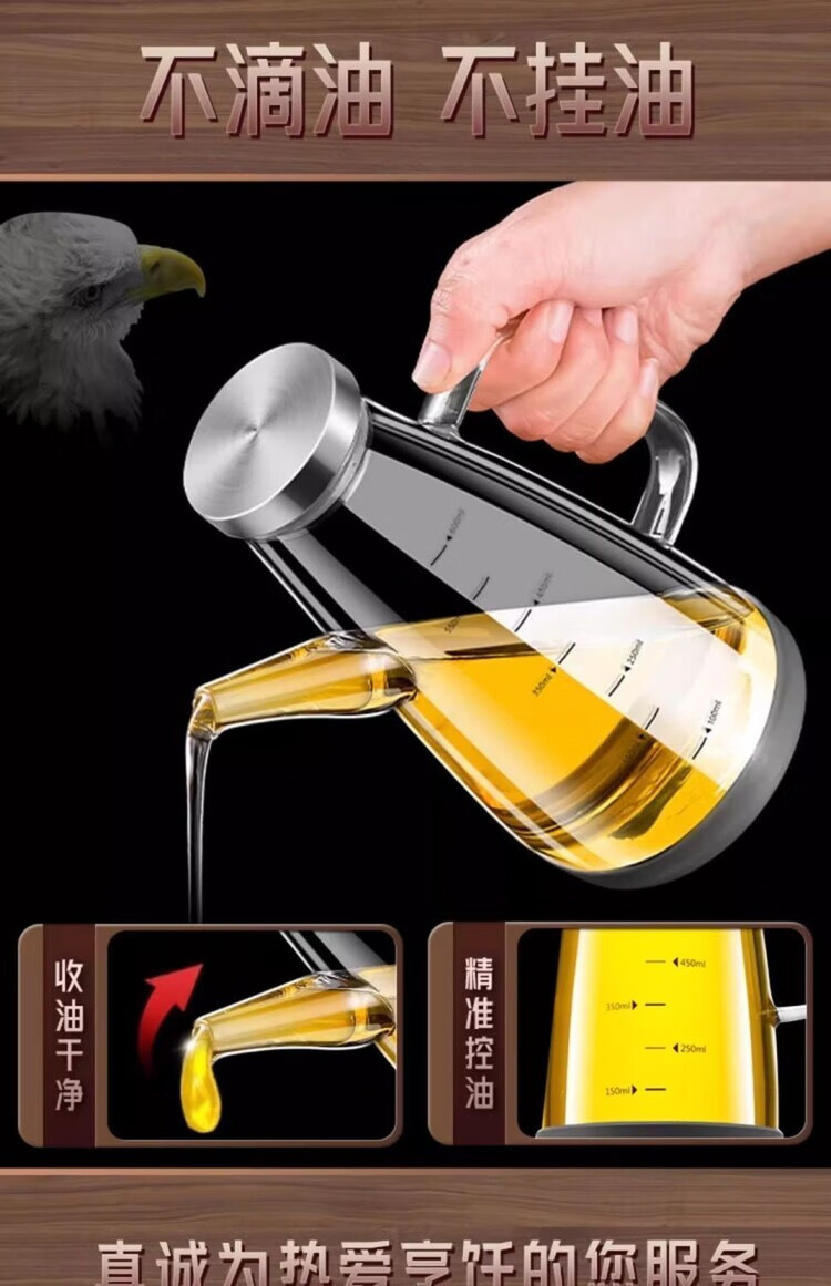 简漾【德国品质】油壶玻璃家用厨房不挂油高端油瓶酱油醋油罐壶食品级 600ml