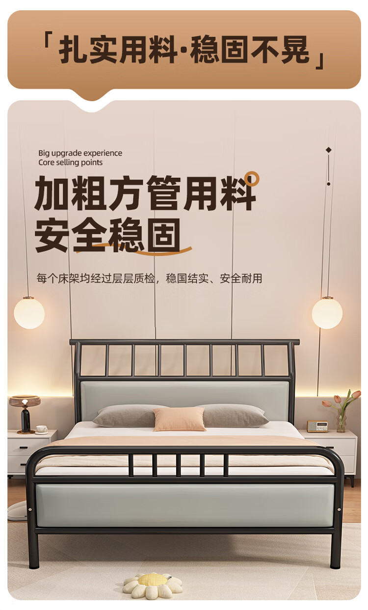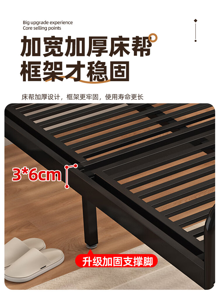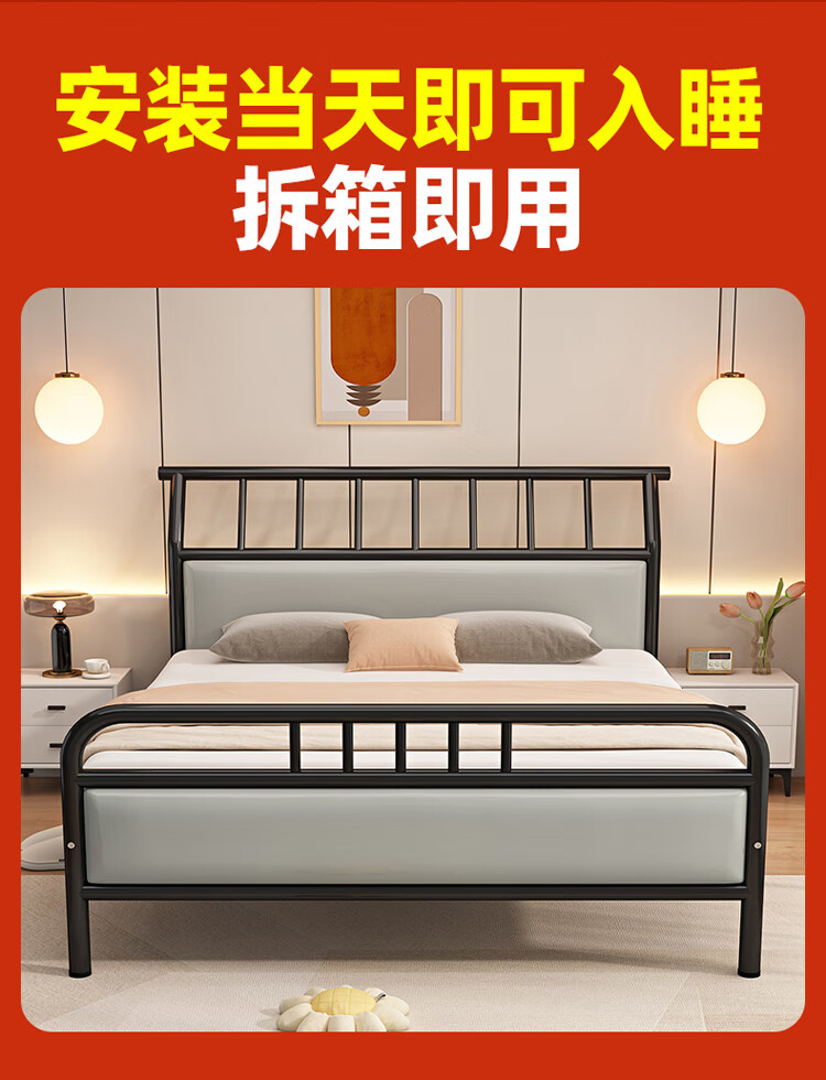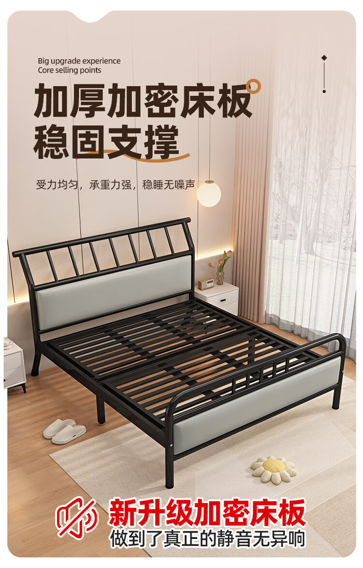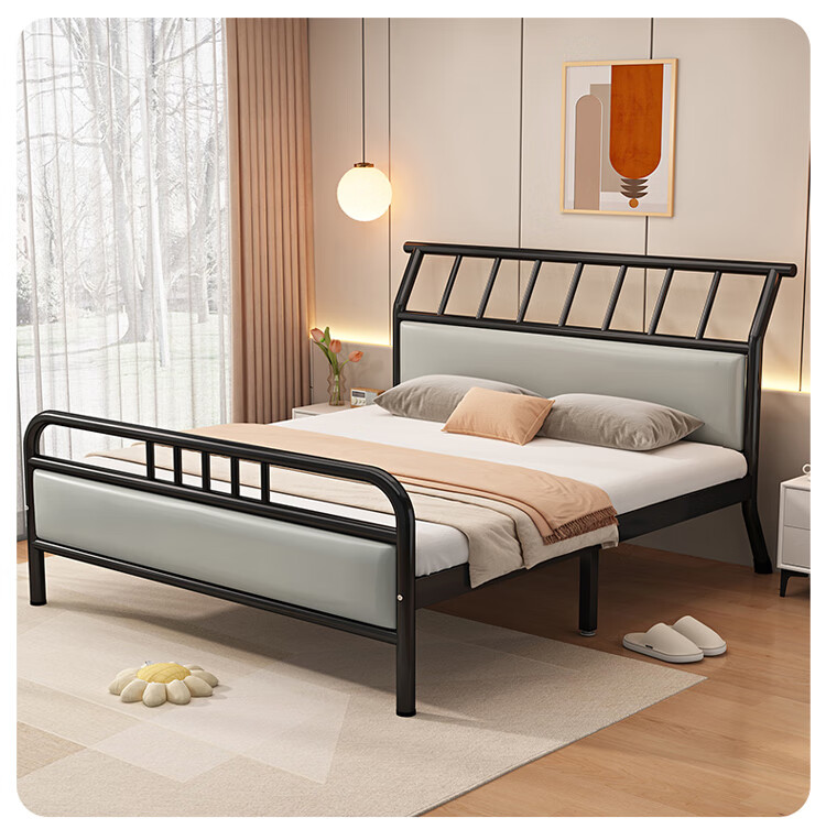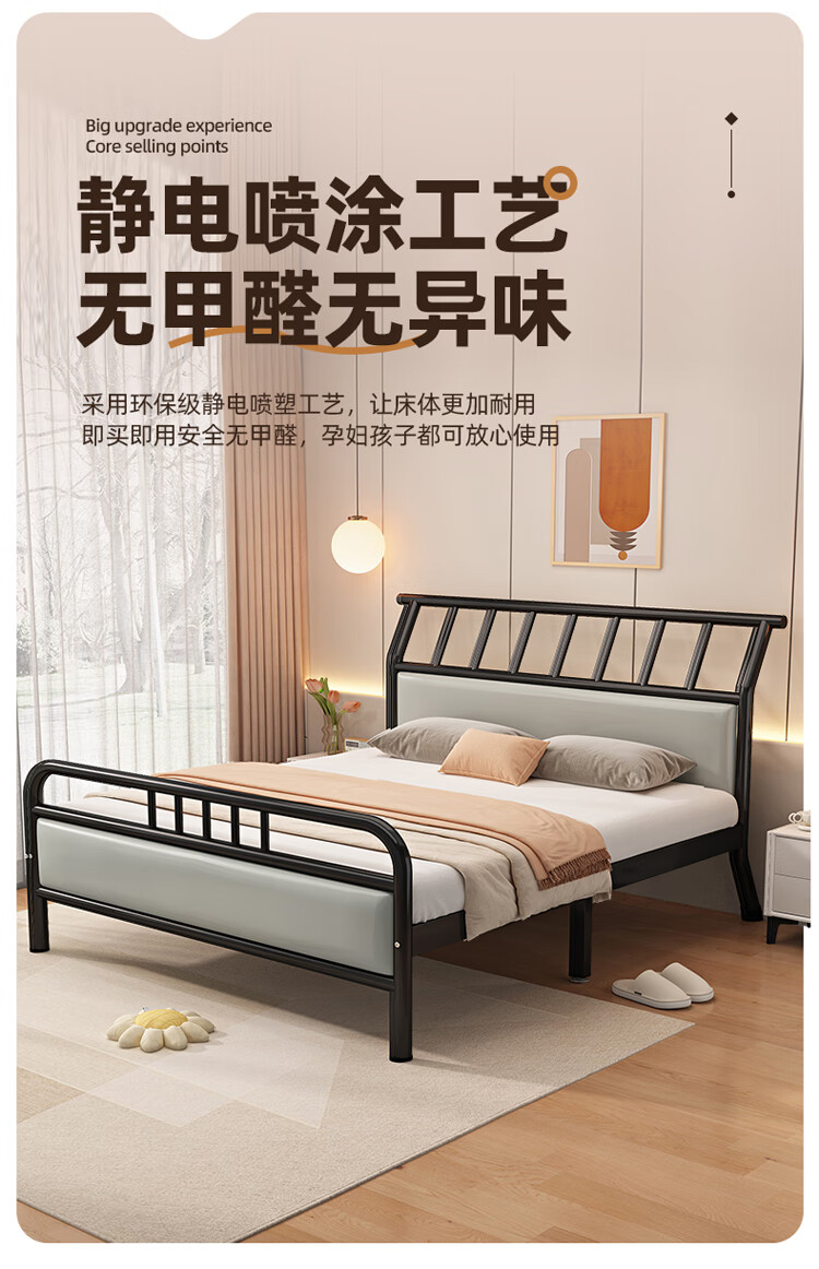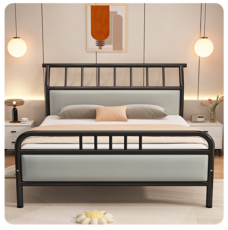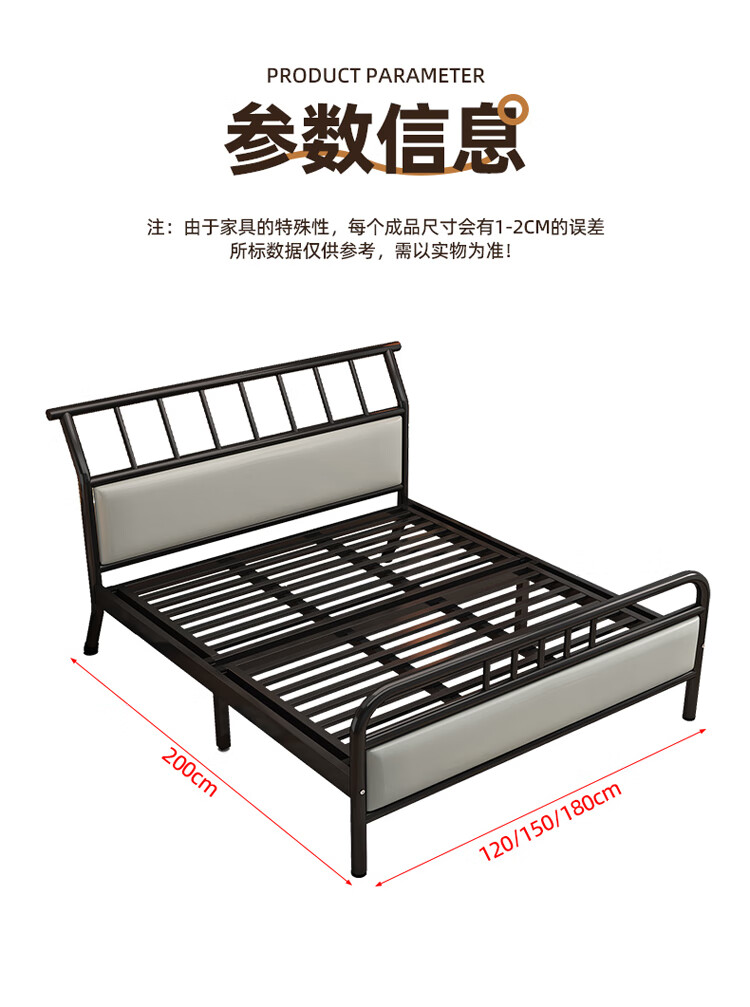 科虎铁艺床双人铁床1.5米x2米家用铁架床 加厚黑床架【管壁厚度1.1mm】 1.8*2.0m