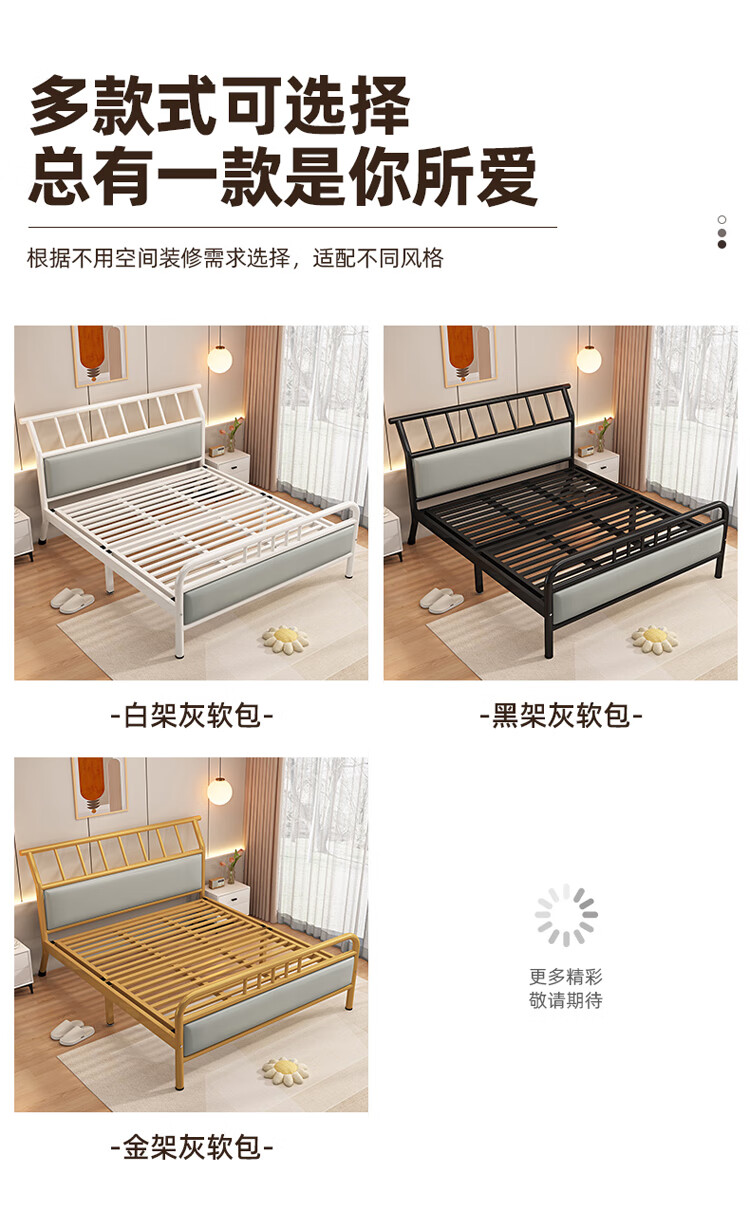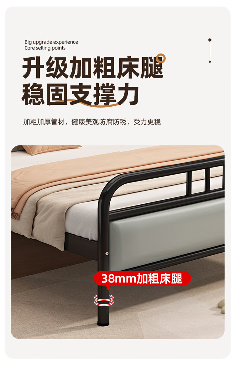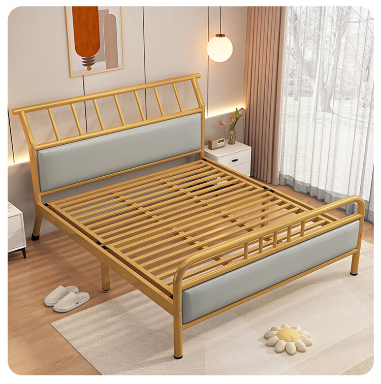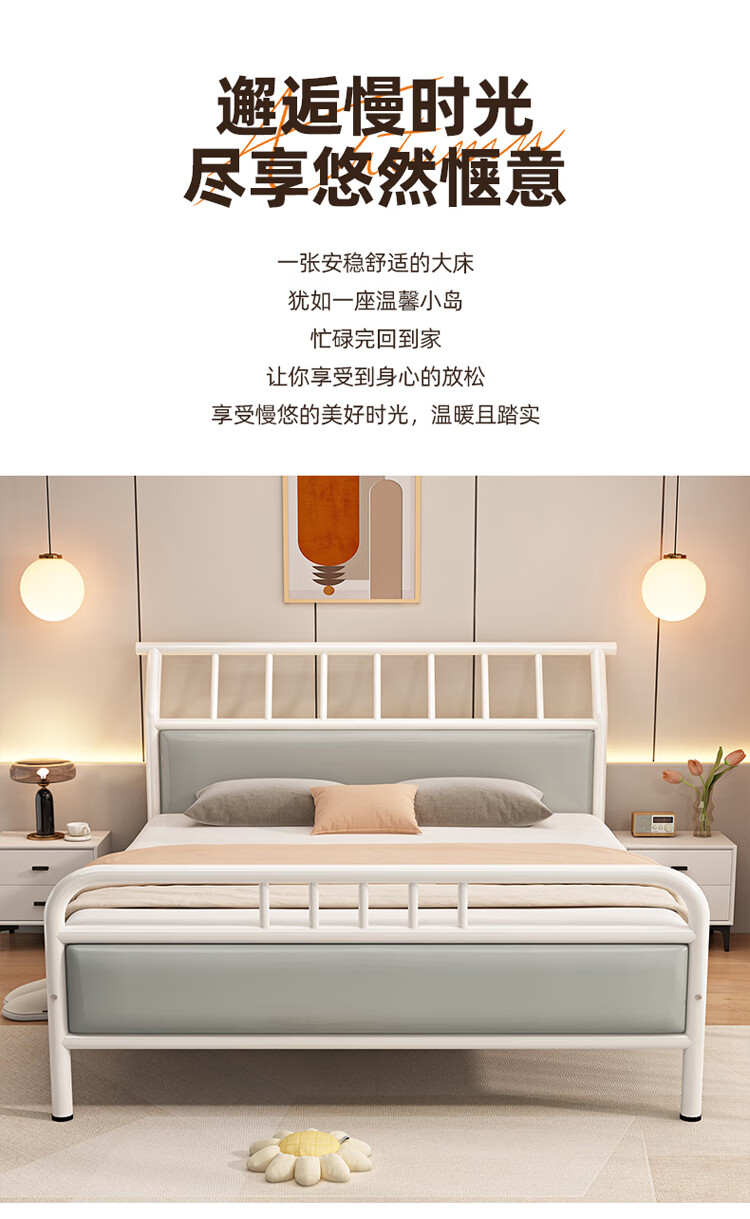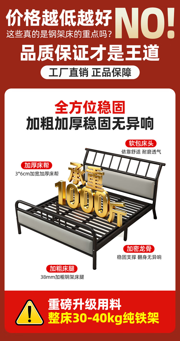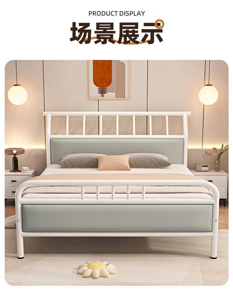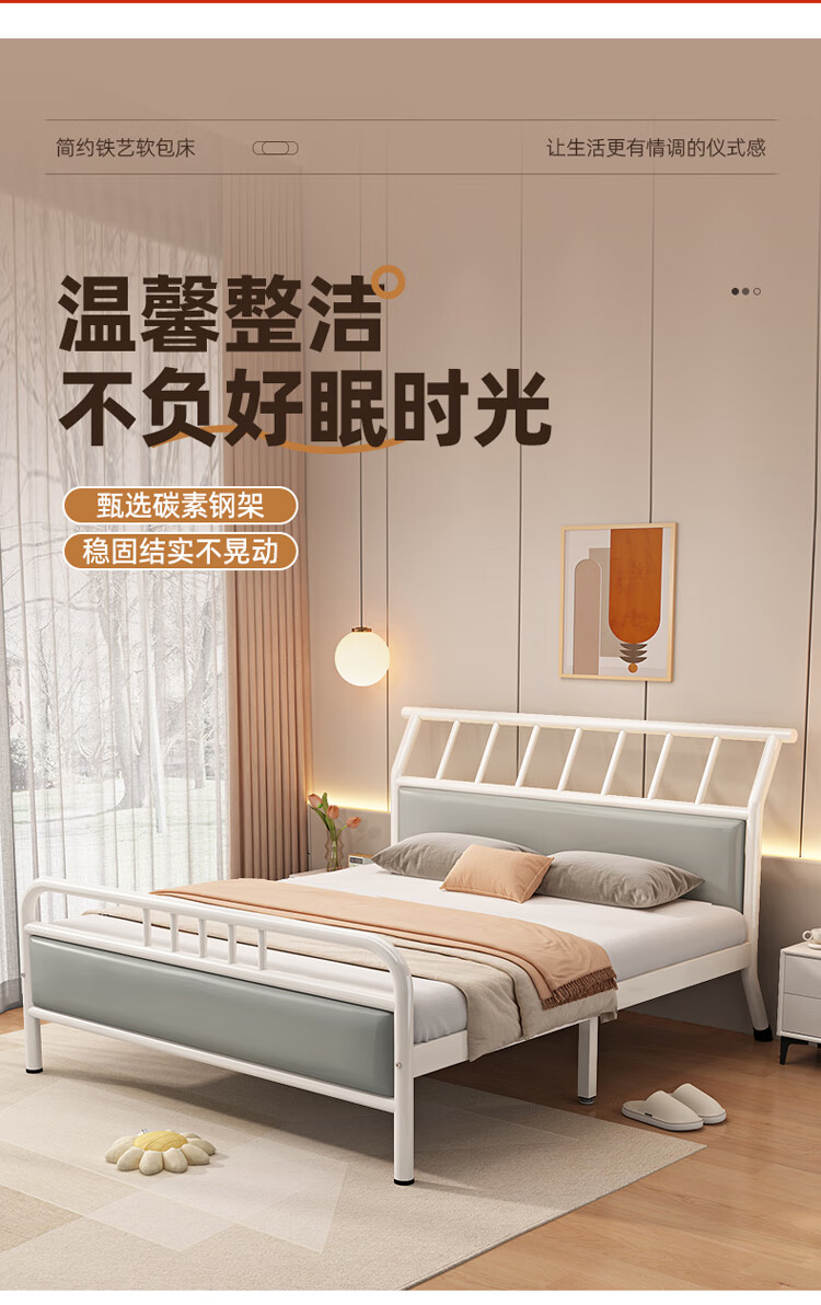 科虎铁艺床双人铁床1.5米x2米家用铁架床 加厚黑床架【管壁厚度1.1mm】 1.8*2.0m