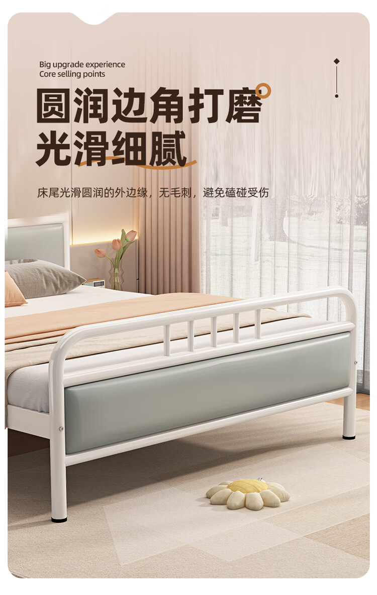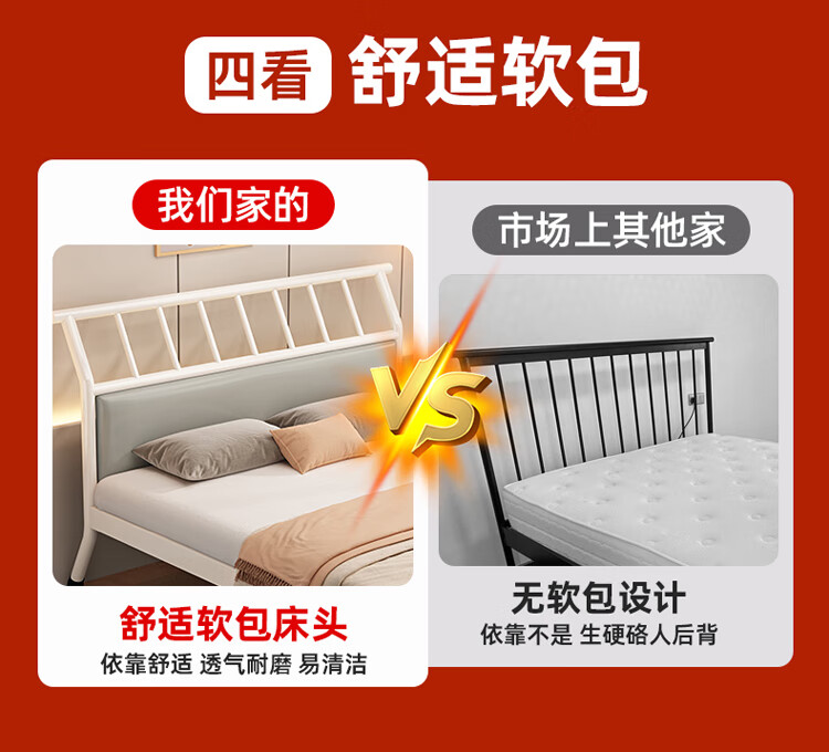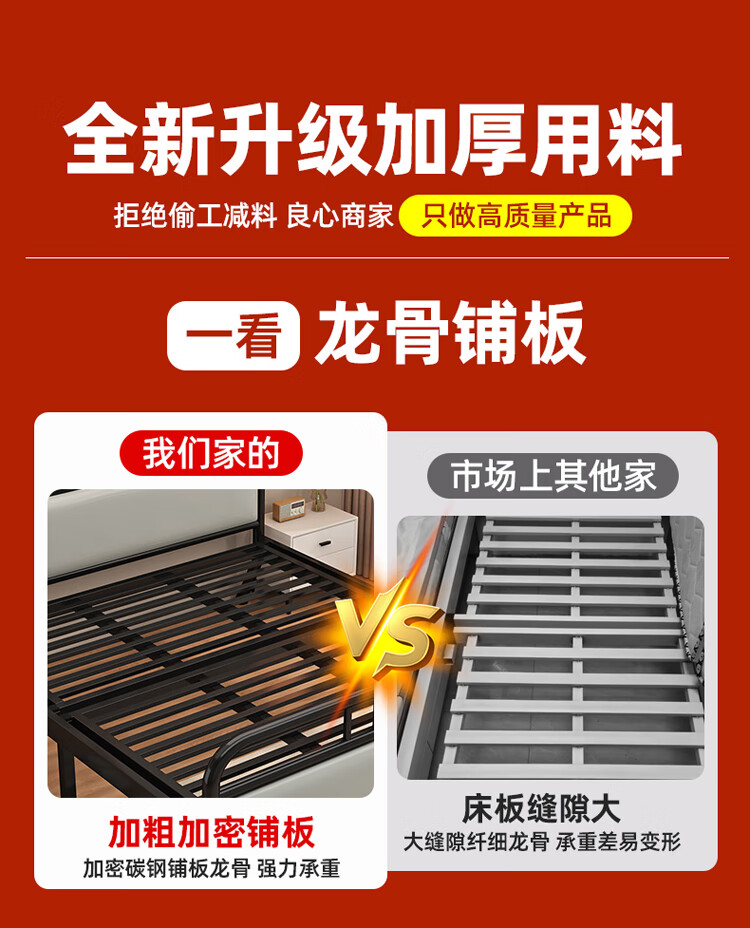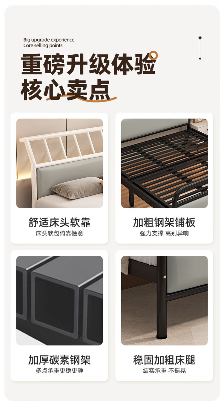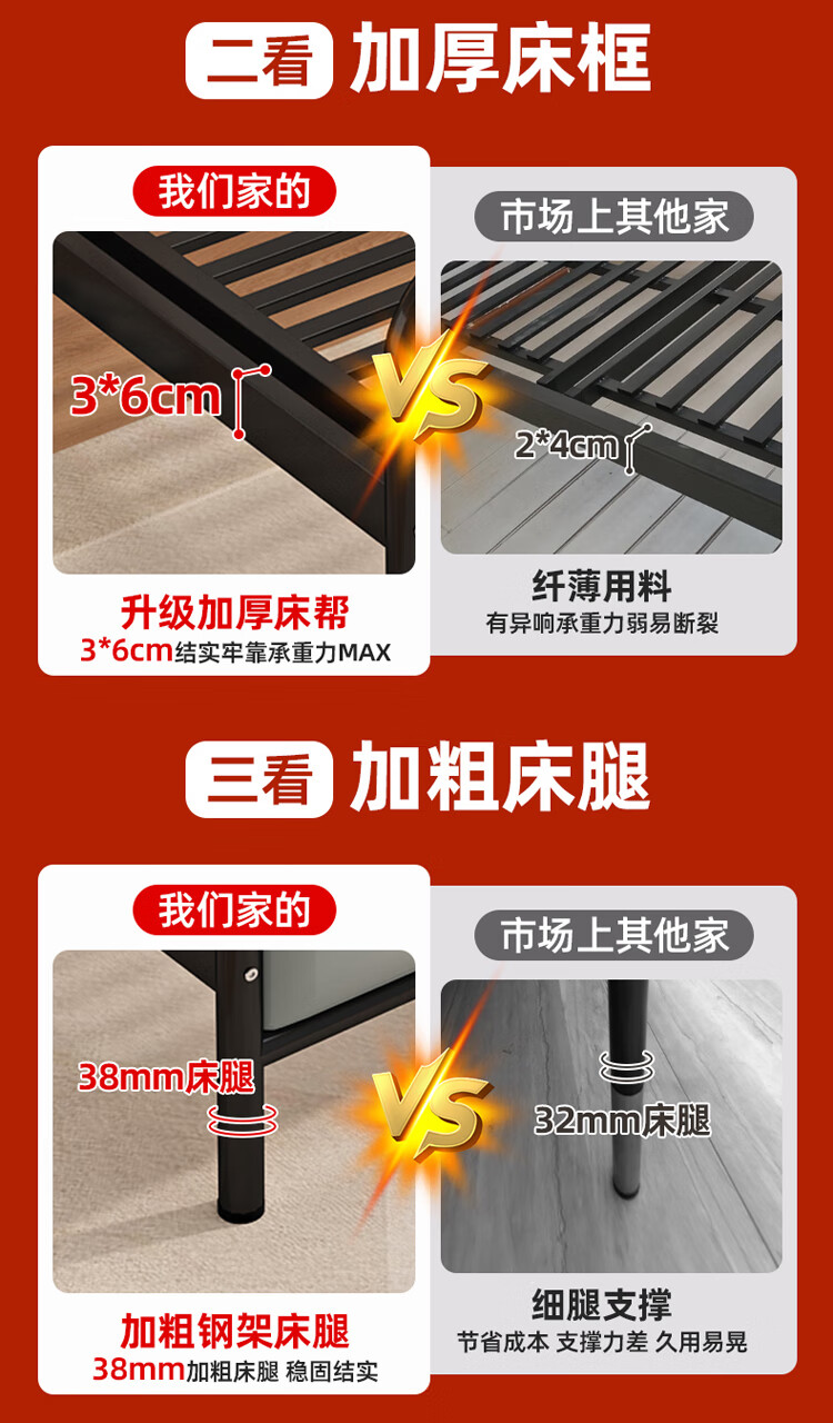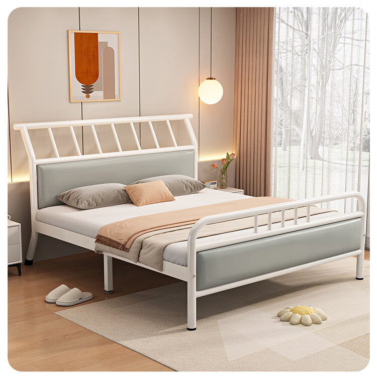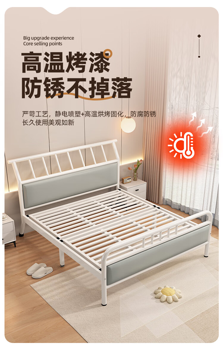 科虎铁艺床双人铁床1.5米x2米家用铁架床 加厚黑床架【管壁厚度1.1mm】 1.8*2.0m