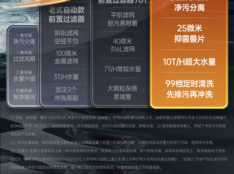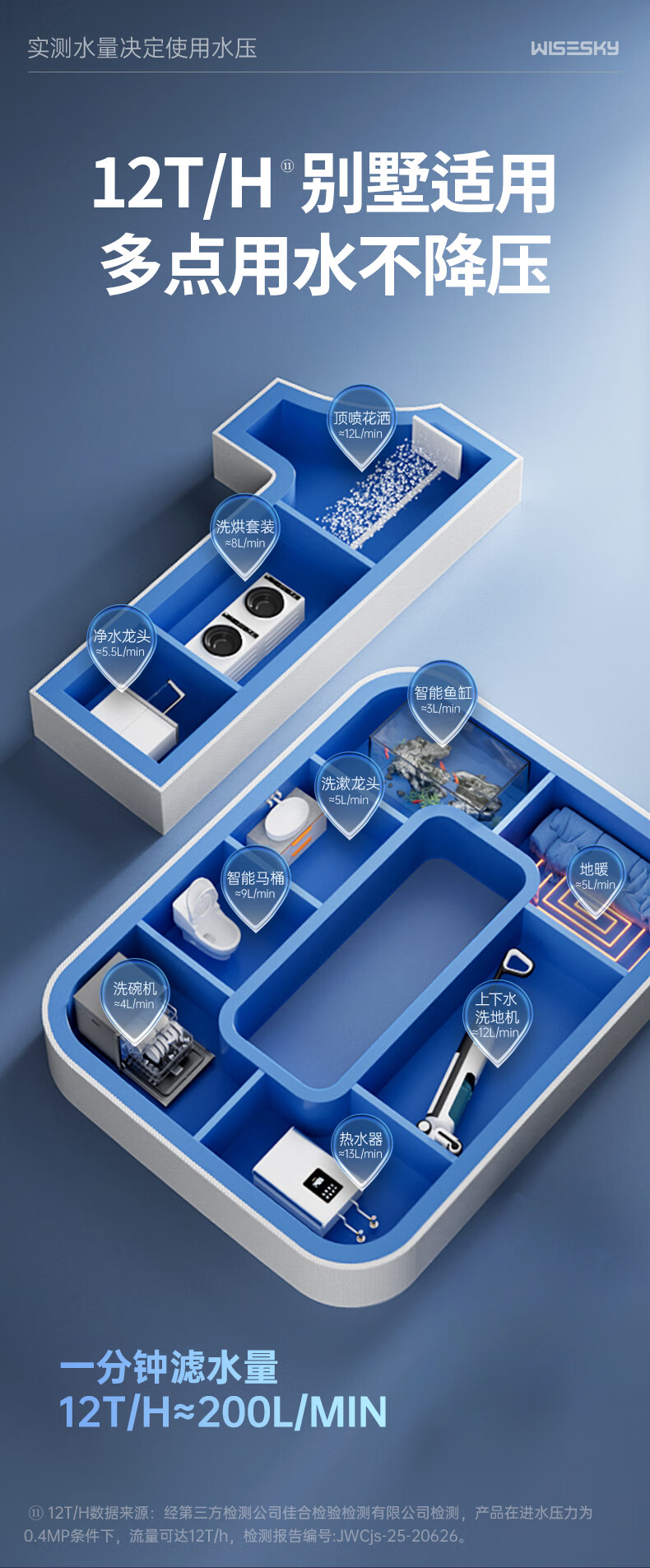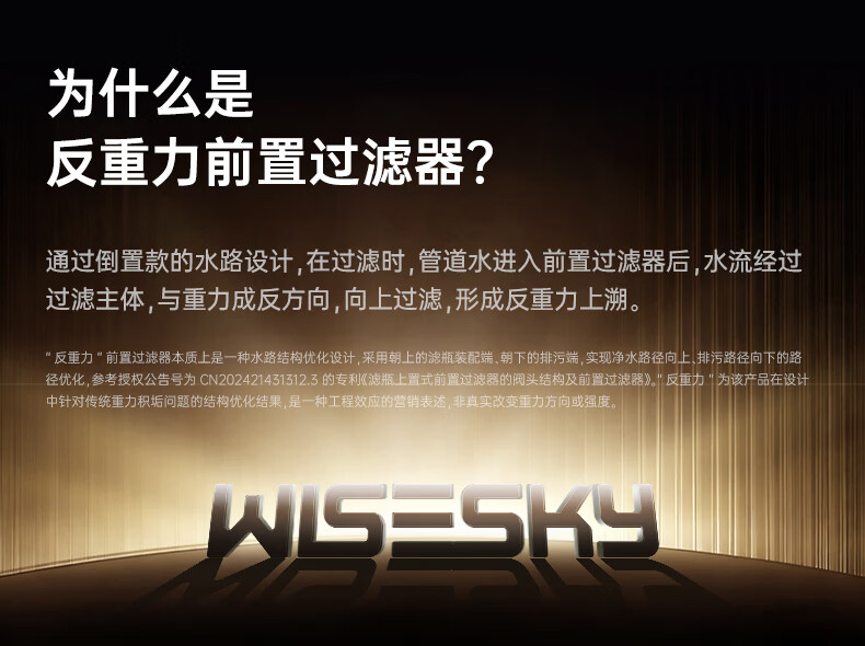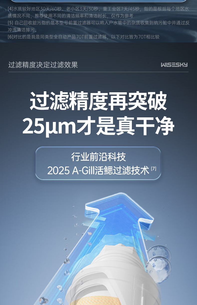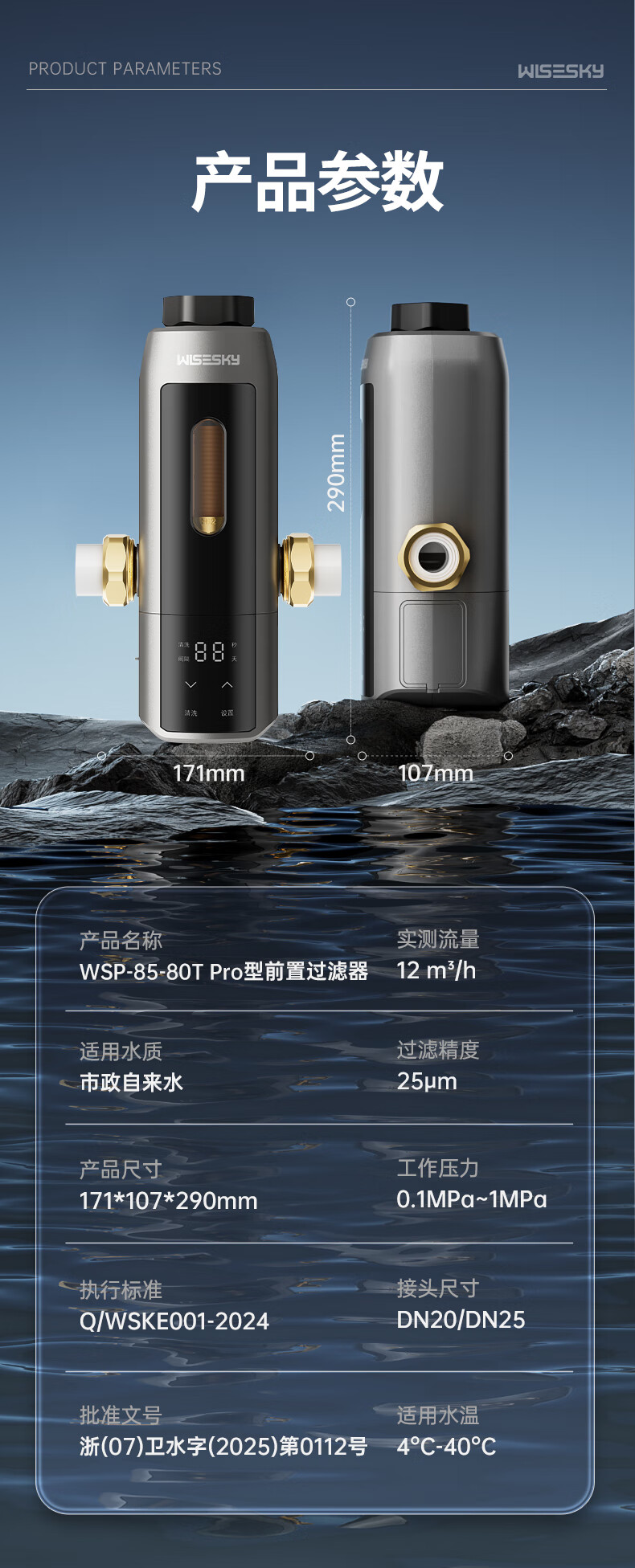 WISESKY韦思卡尔超12T大通量全自动款反重力前置过滤器25微米活鳃叠片反冲洗家用净水器WSP-85-80T Pro