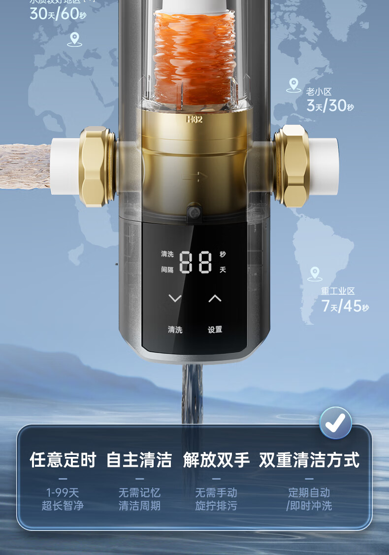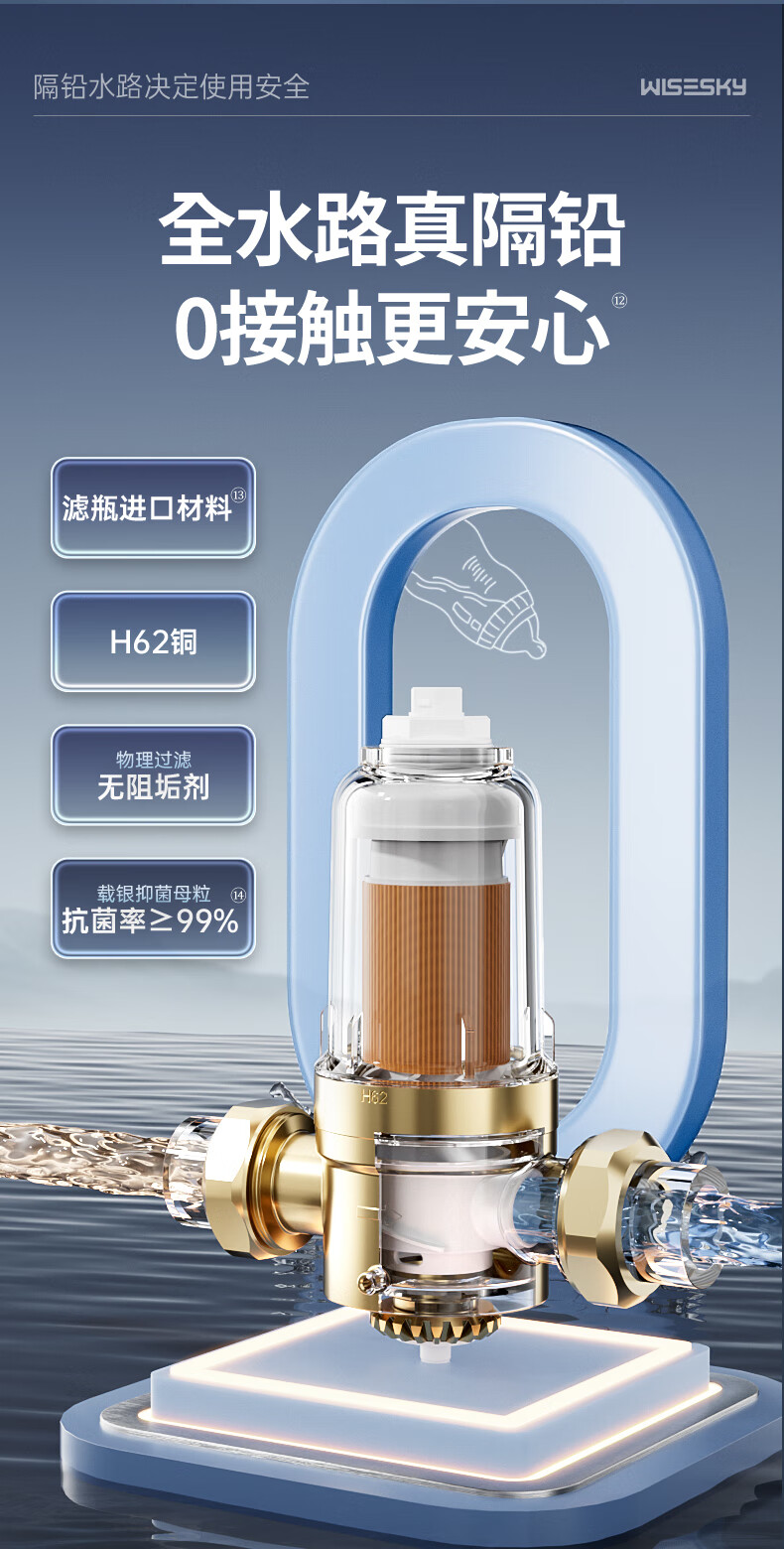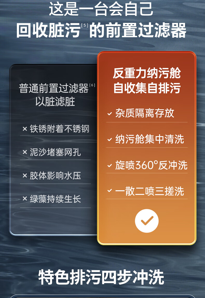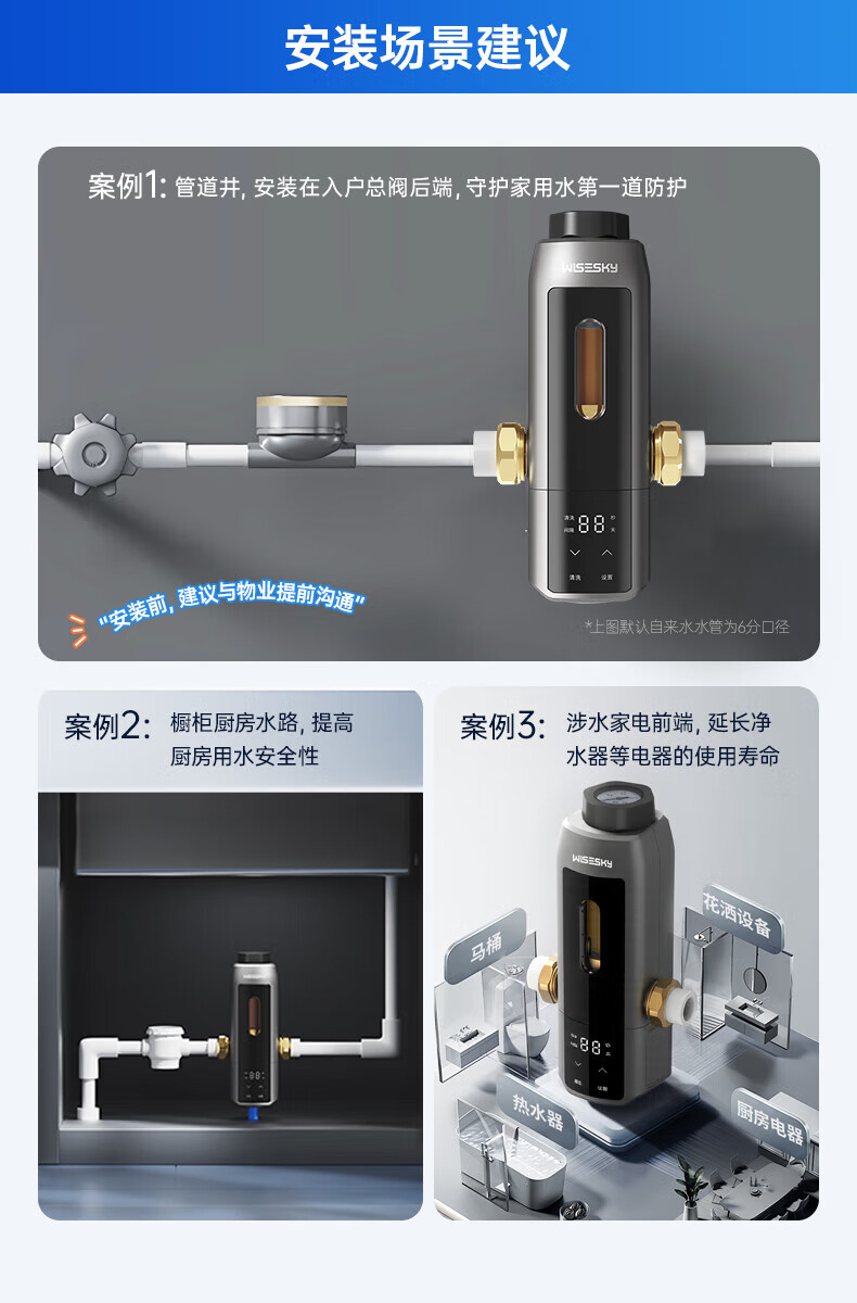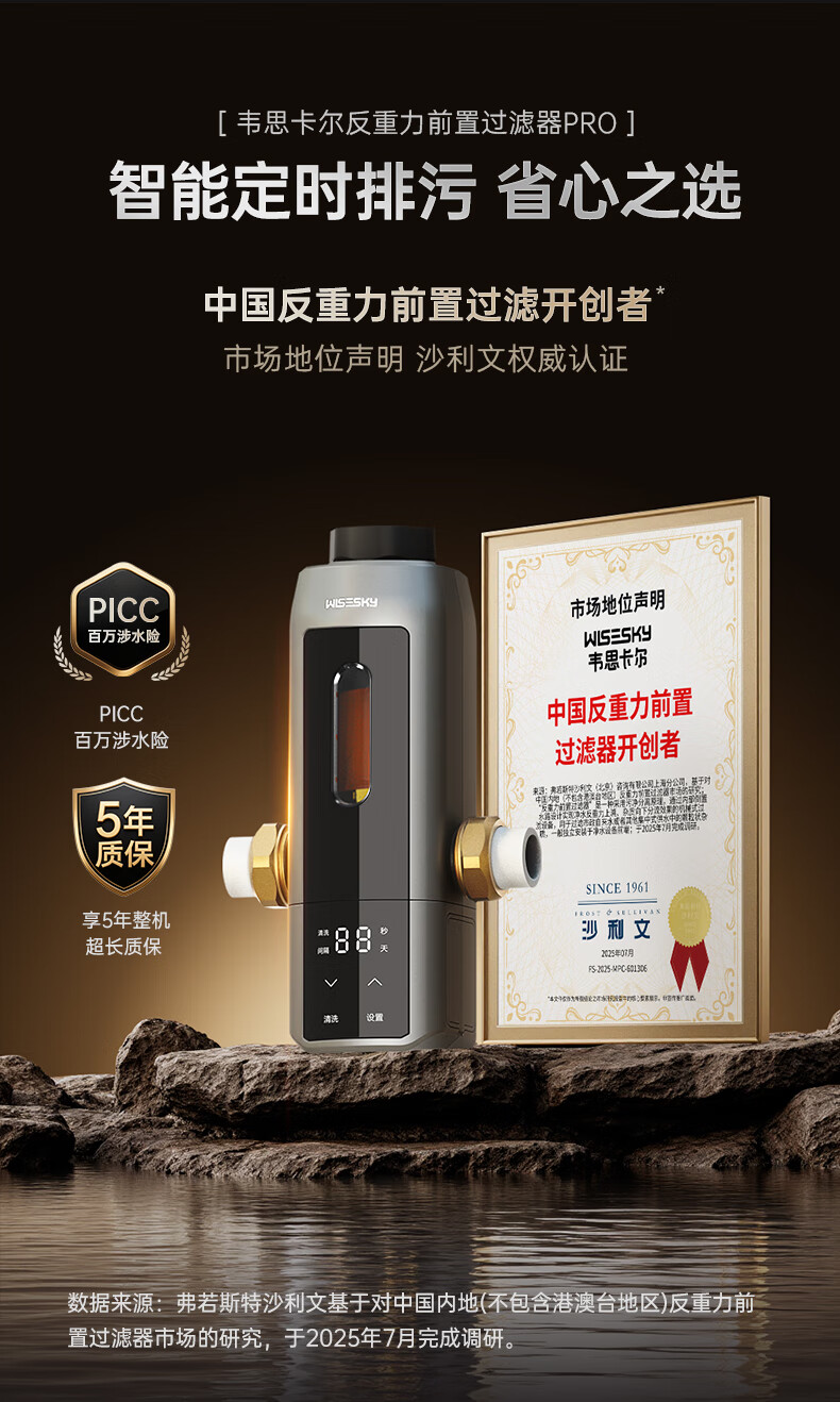 WISESKY韦思卡尔超12T大通量全自动款反重力前置过滤器25微米活鳃叠片反冲洗家用净水器WSP-85-80T Pro