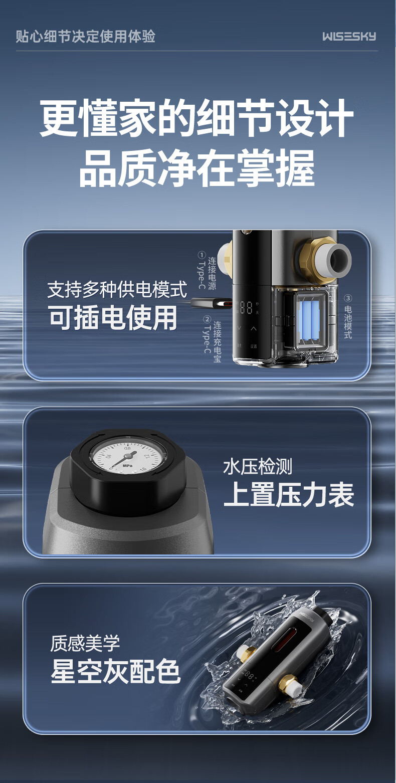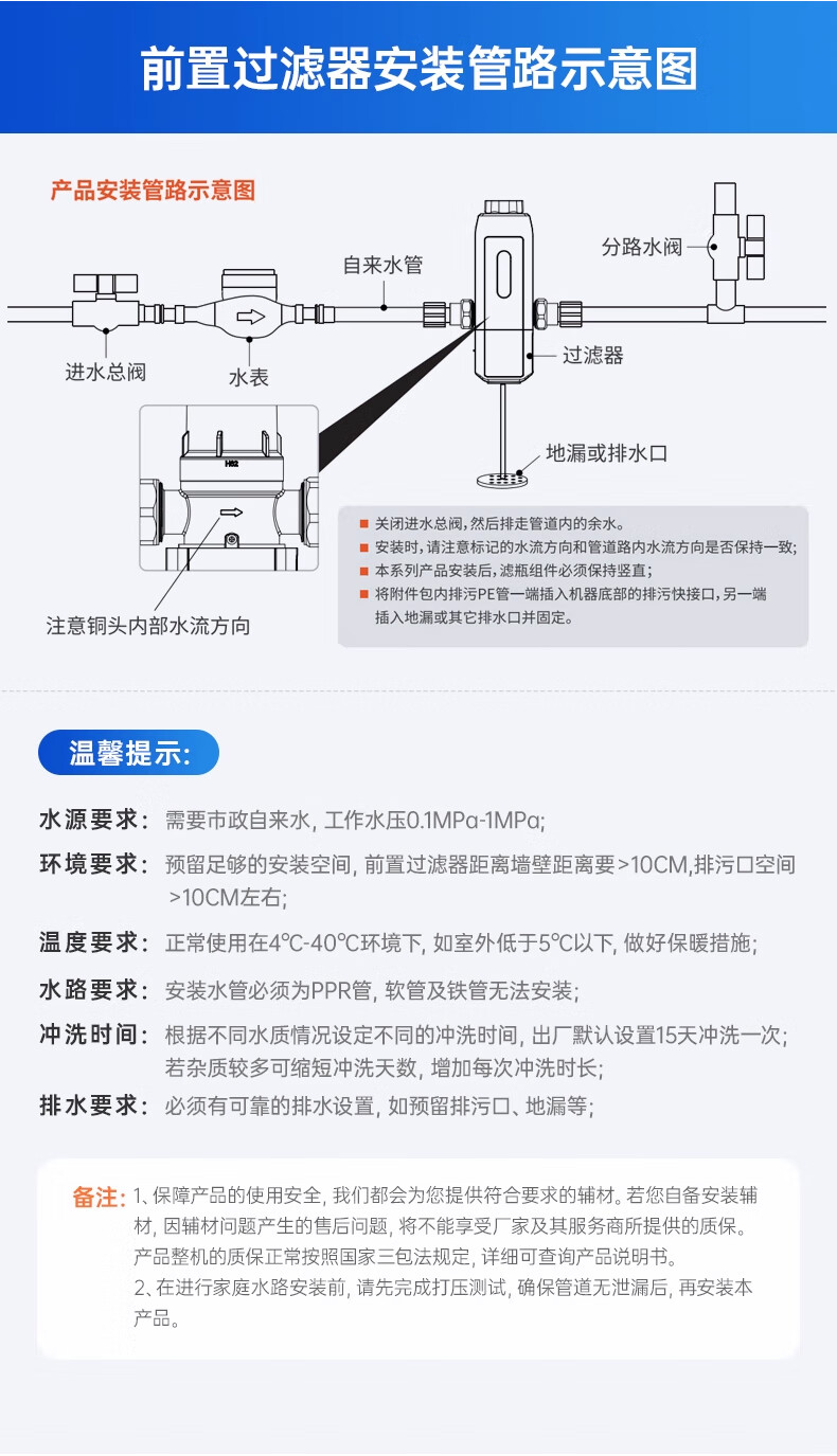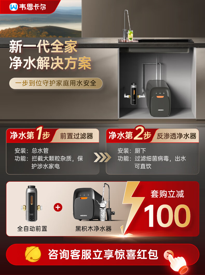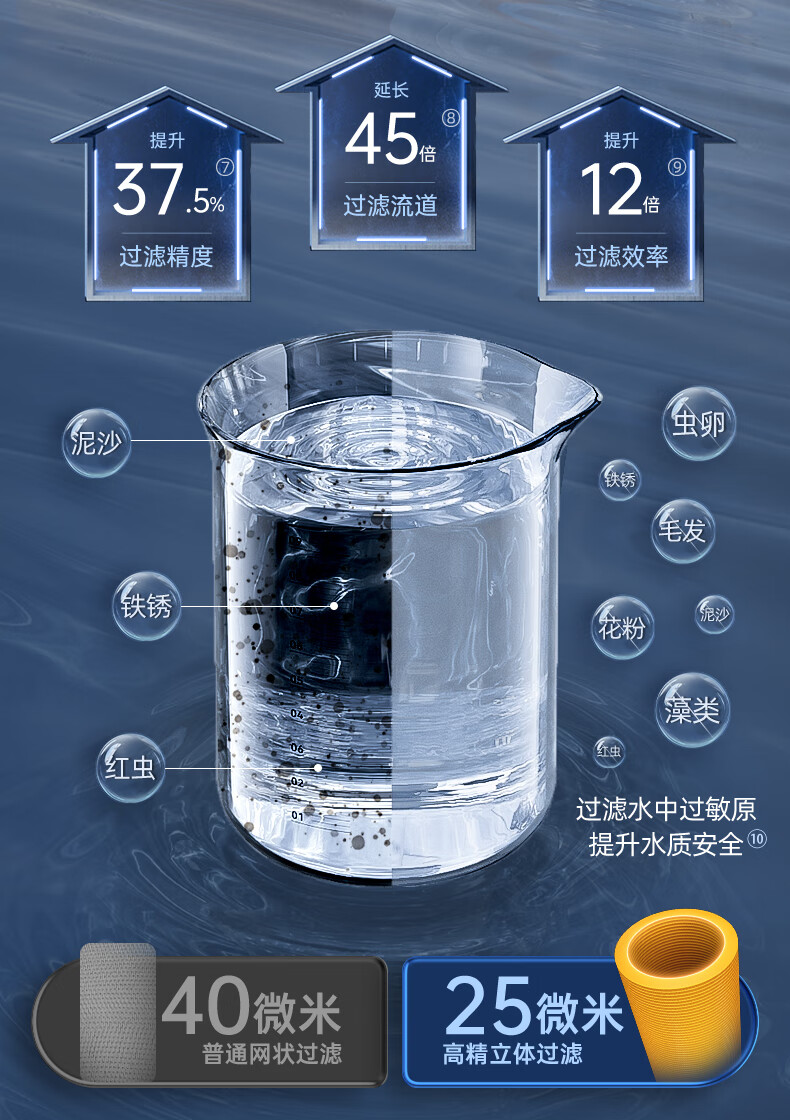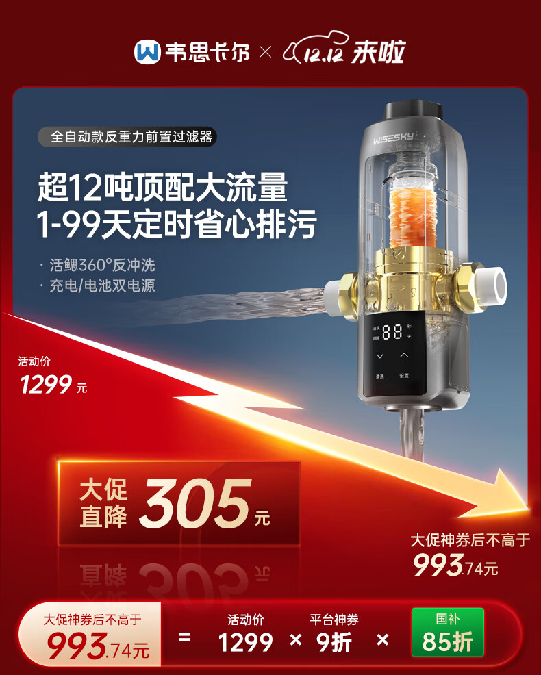 WISESKY韦思卡尔超12T大通量全自动款反重力前置过滤器25微米活鳃叠片反冲洗家用净水器WSP-85-80T Pro