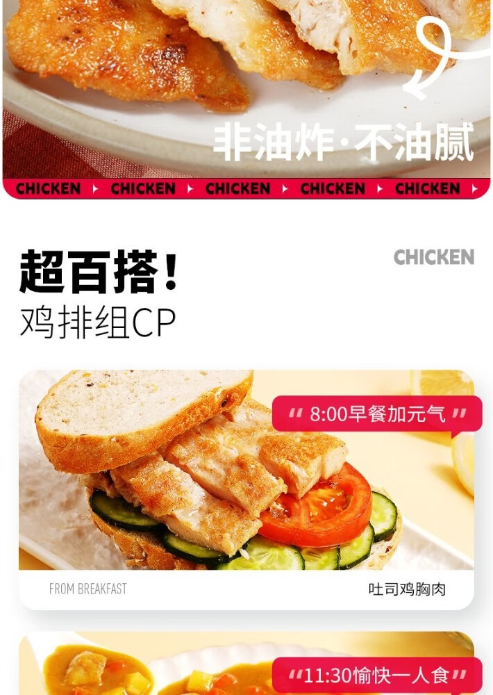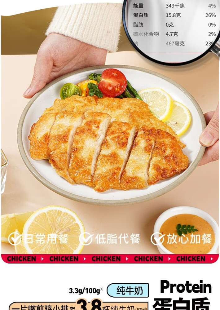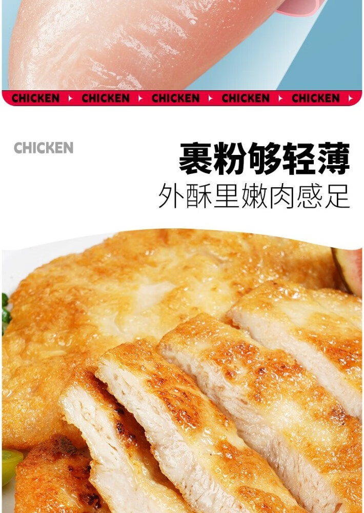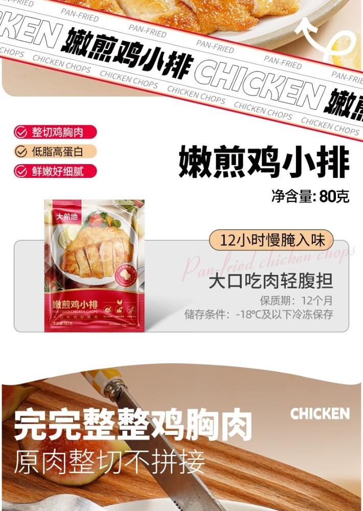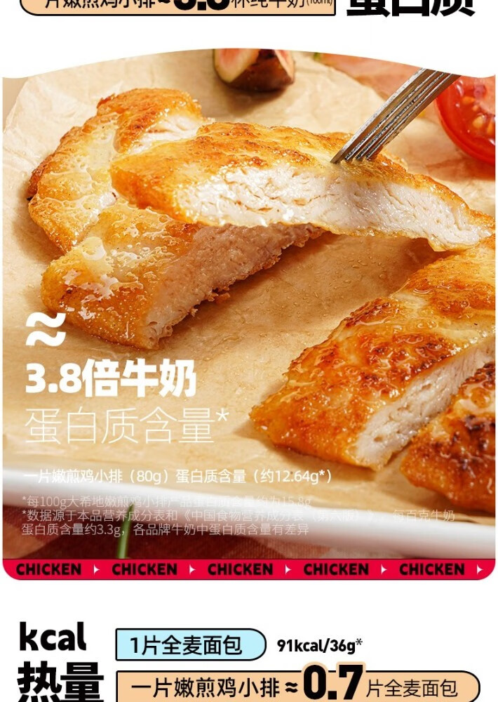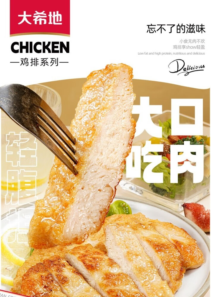 大希地香煎鸡排 鸡胸肉生鲜鸡扒半成品代餐冷冻食材 嫩煎鸡小排【原味】 80g *10袋