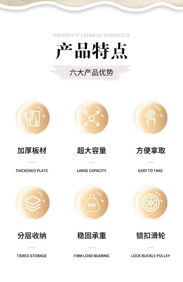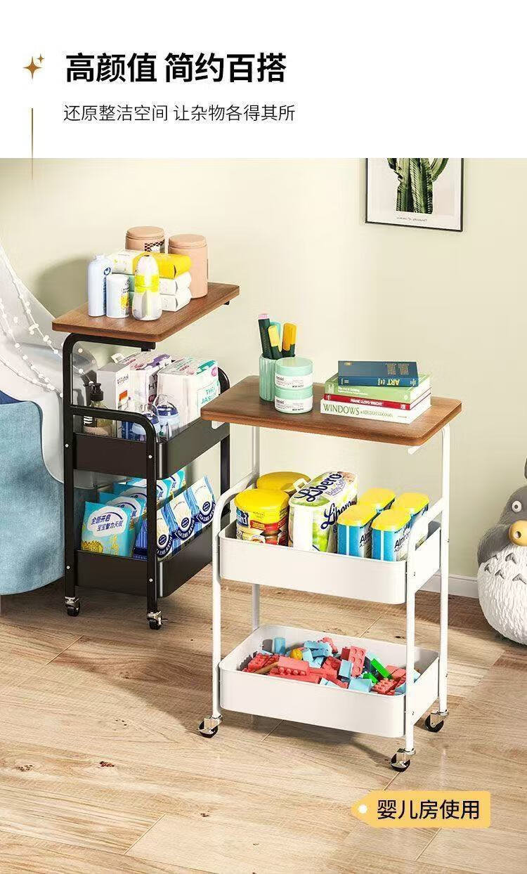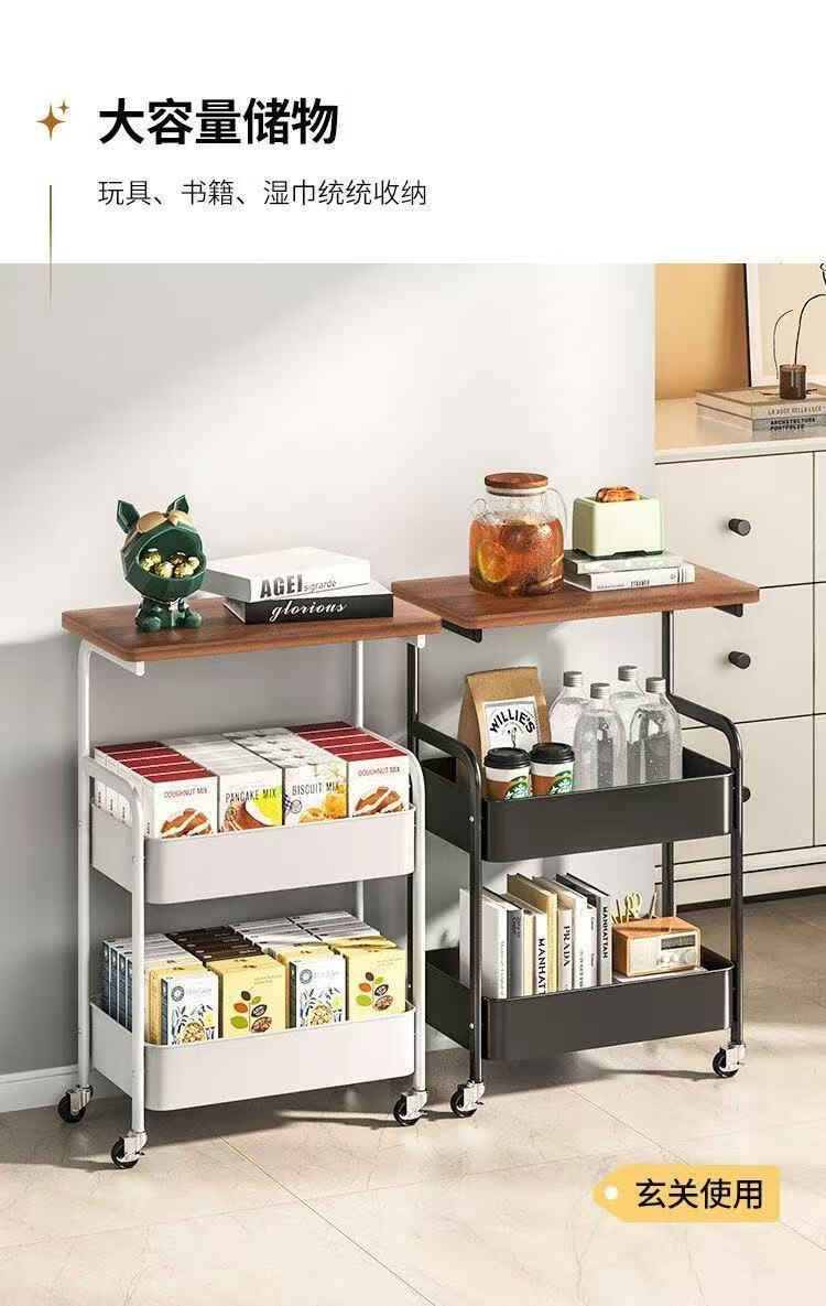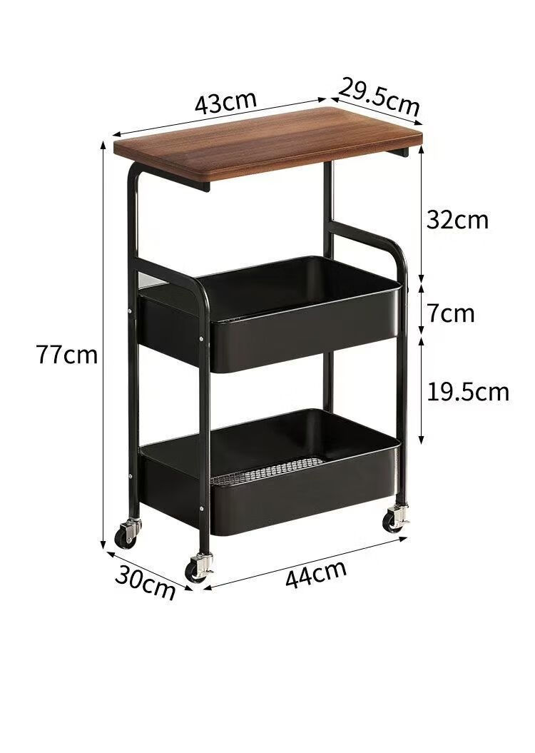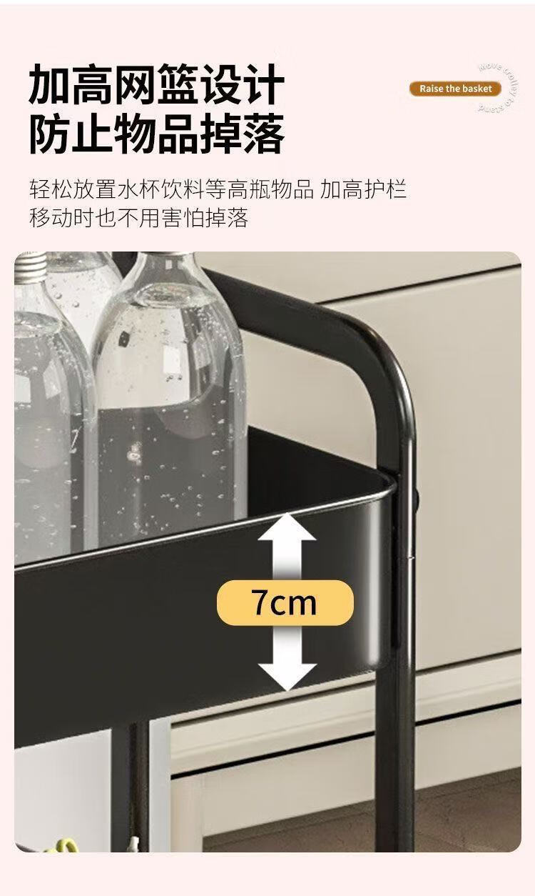 简漾厨房置物架小推车落地移动浴室卫生间卧室多层收纳零食储物架 黑色