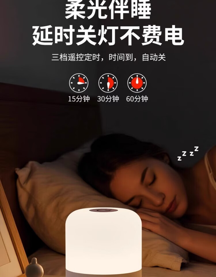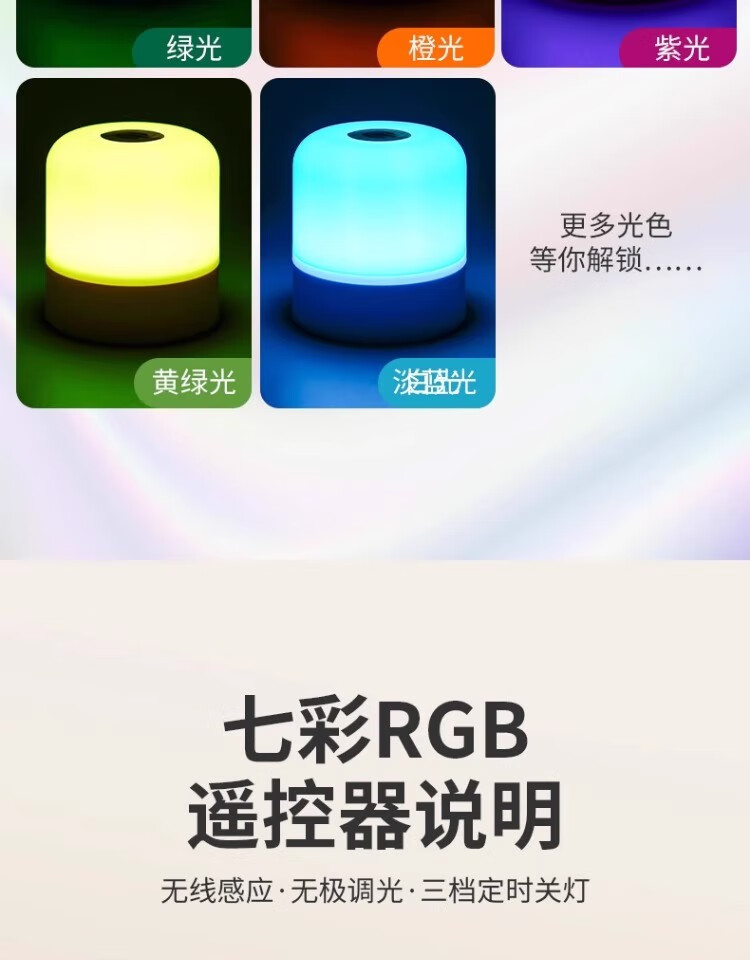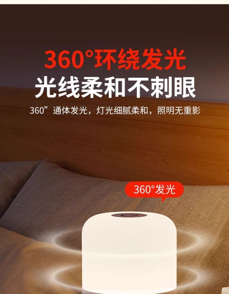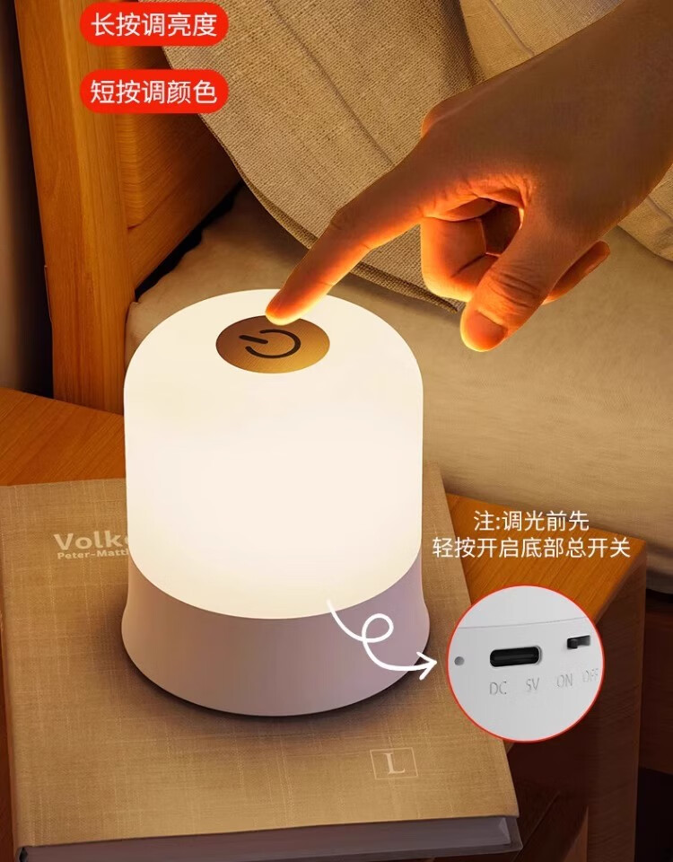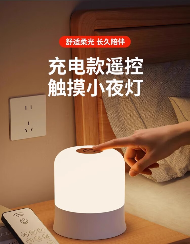 拉伯塔遥控触摸小夜灯充电式卧室床头氛围婴儿喂奶护眼睡眠台灯2025新款 充电款【触摸+遥控/三色调光】3600毫安
