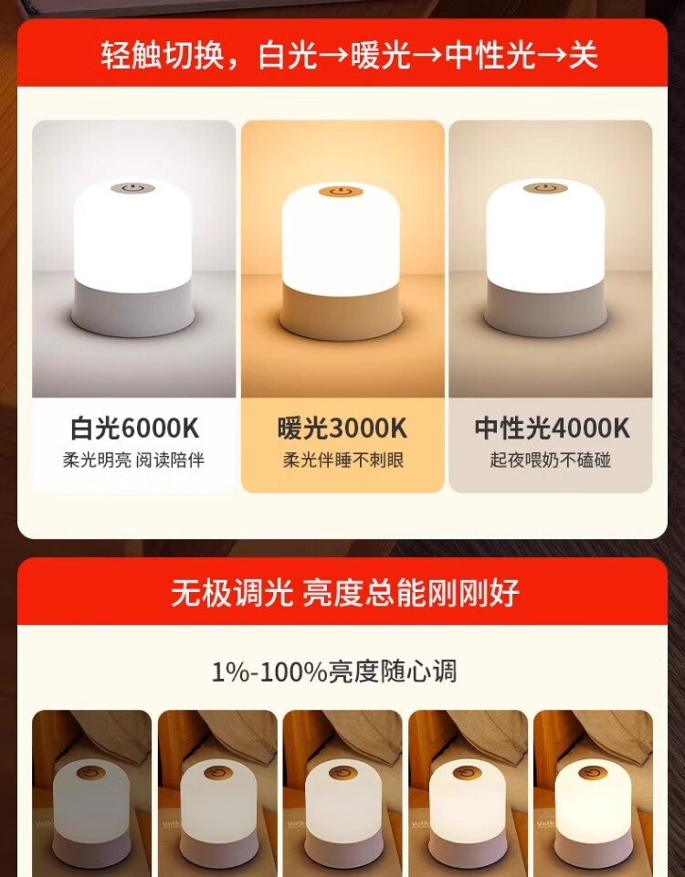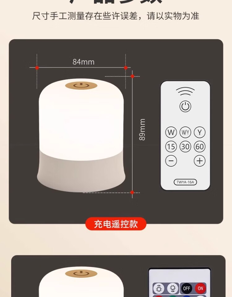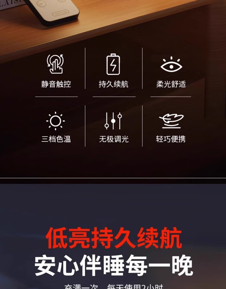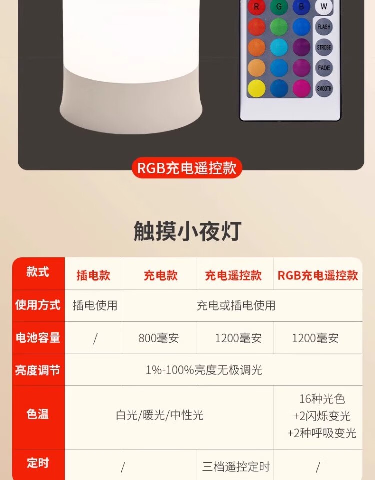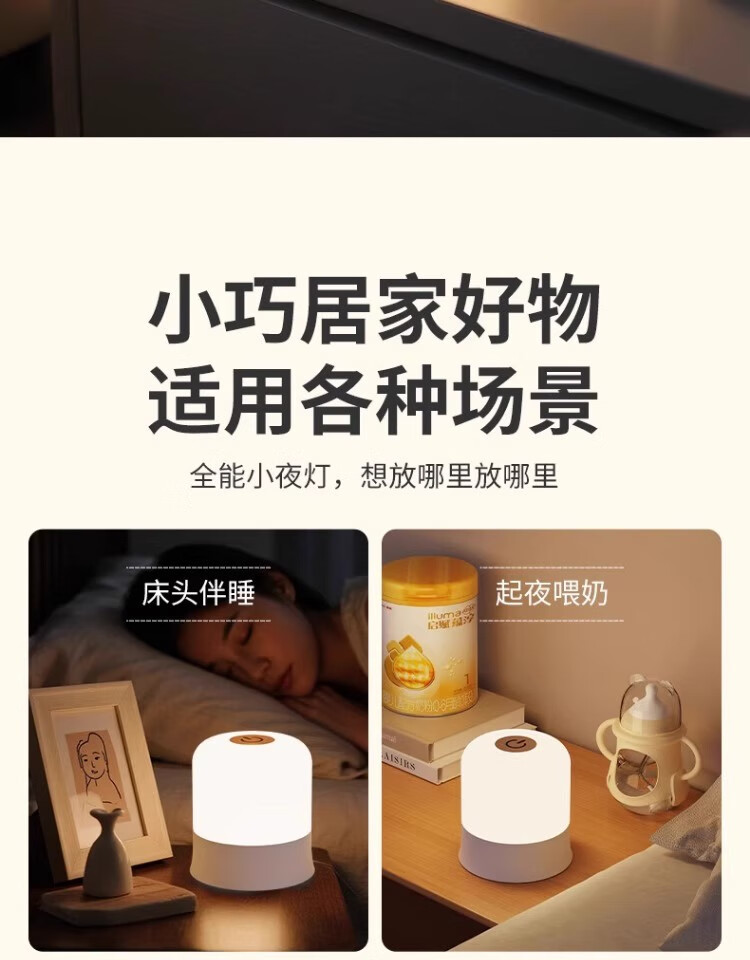 拉伯塔遥控触摸小夜灯充电式卧室床头氛围婴儿喂奶护眼睡眠台灯2025新款 充电款【触摸+遥控/三色调光】3600毫安