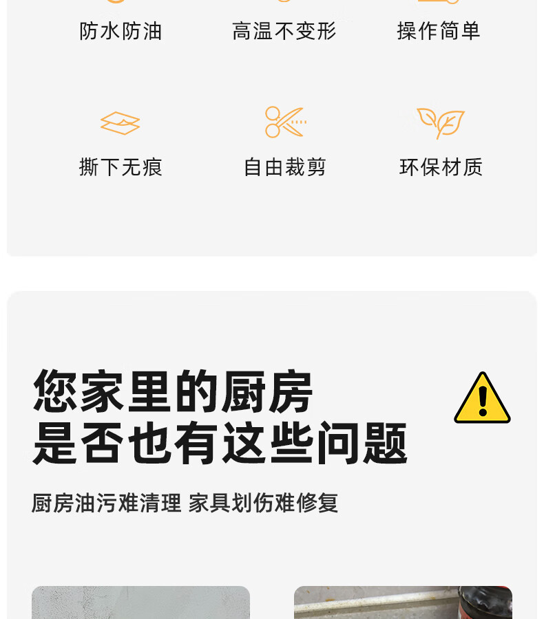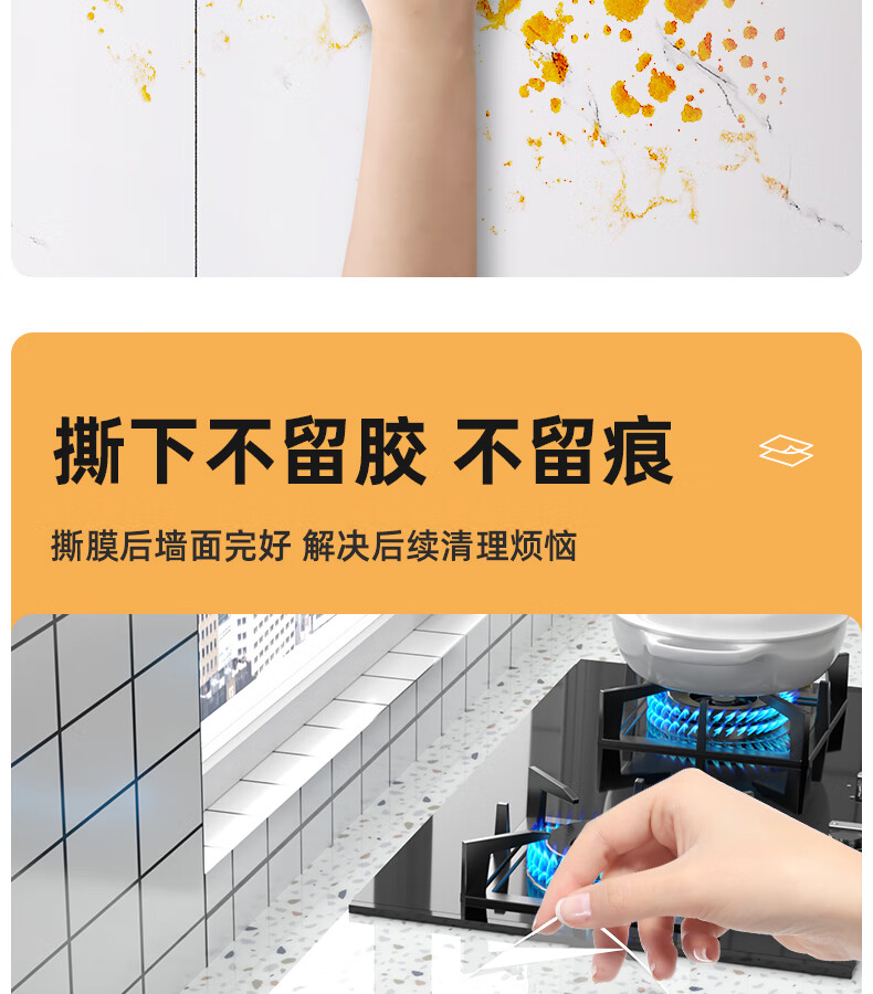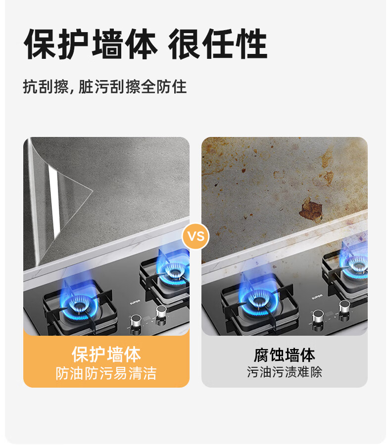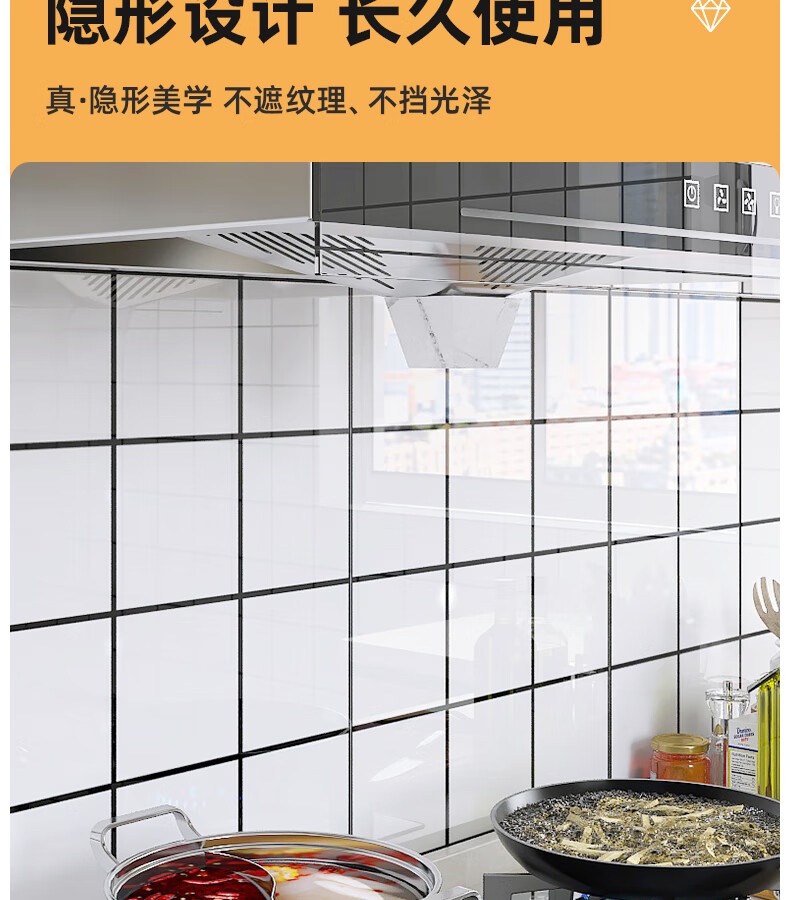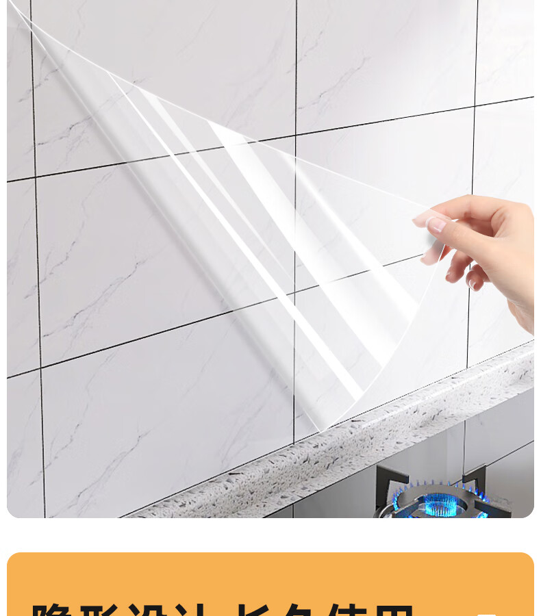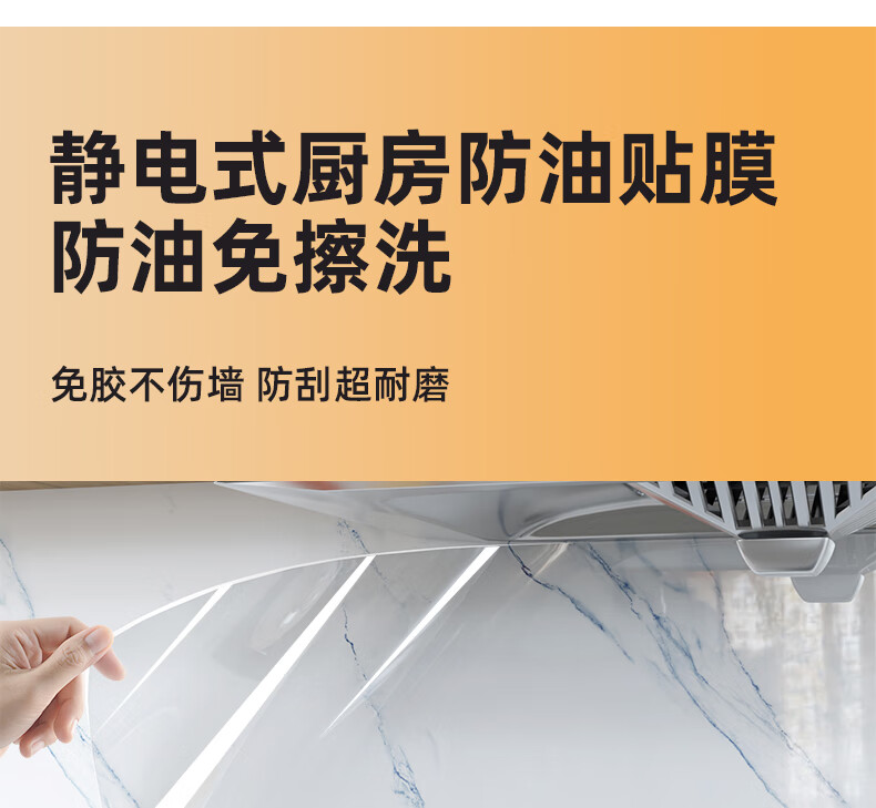 赛瓦凯厨房墙面透明防油贴纸自粘灶台面静电吸附不留胶防火耐高温保护膜 静电吸附款【静电免胶/不伤墙面】 90cm×5米
