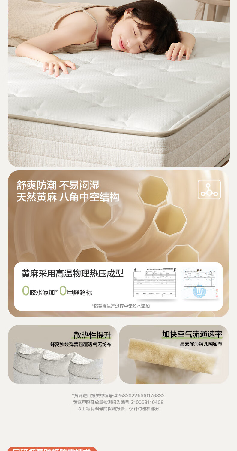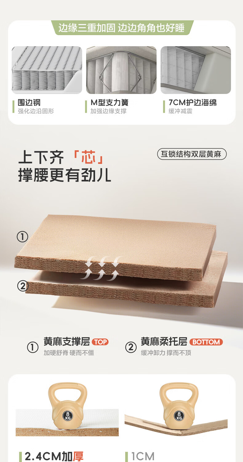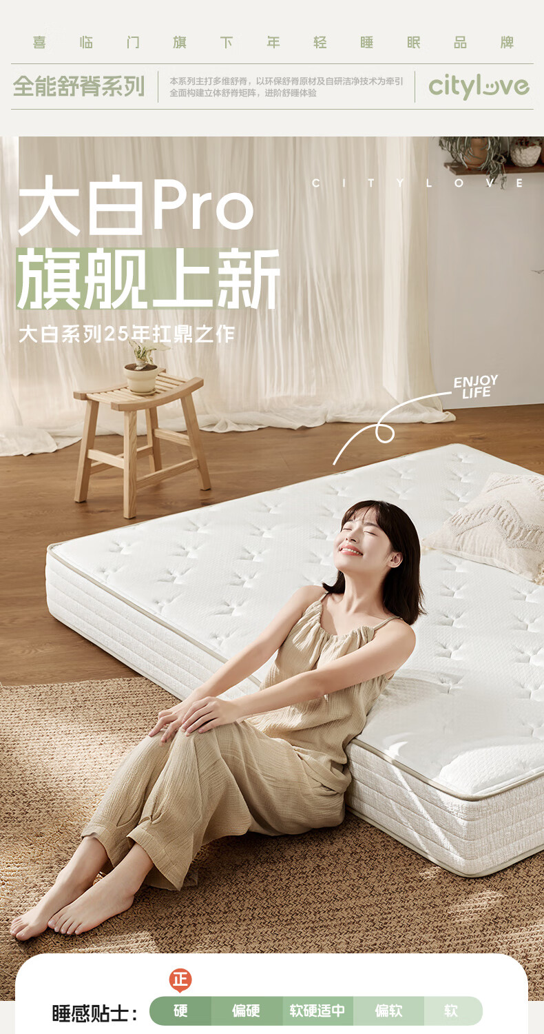 城市爱情喜临门床垫黄麻偏硬舒脊独袋弹簧海绵垫子大白Pro席梦思双人垫子 1.8*2米