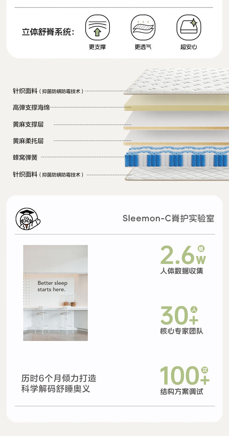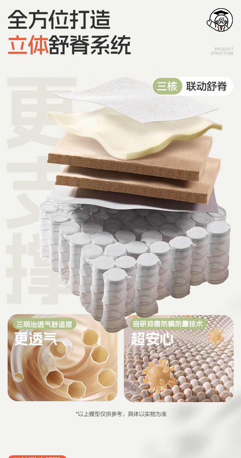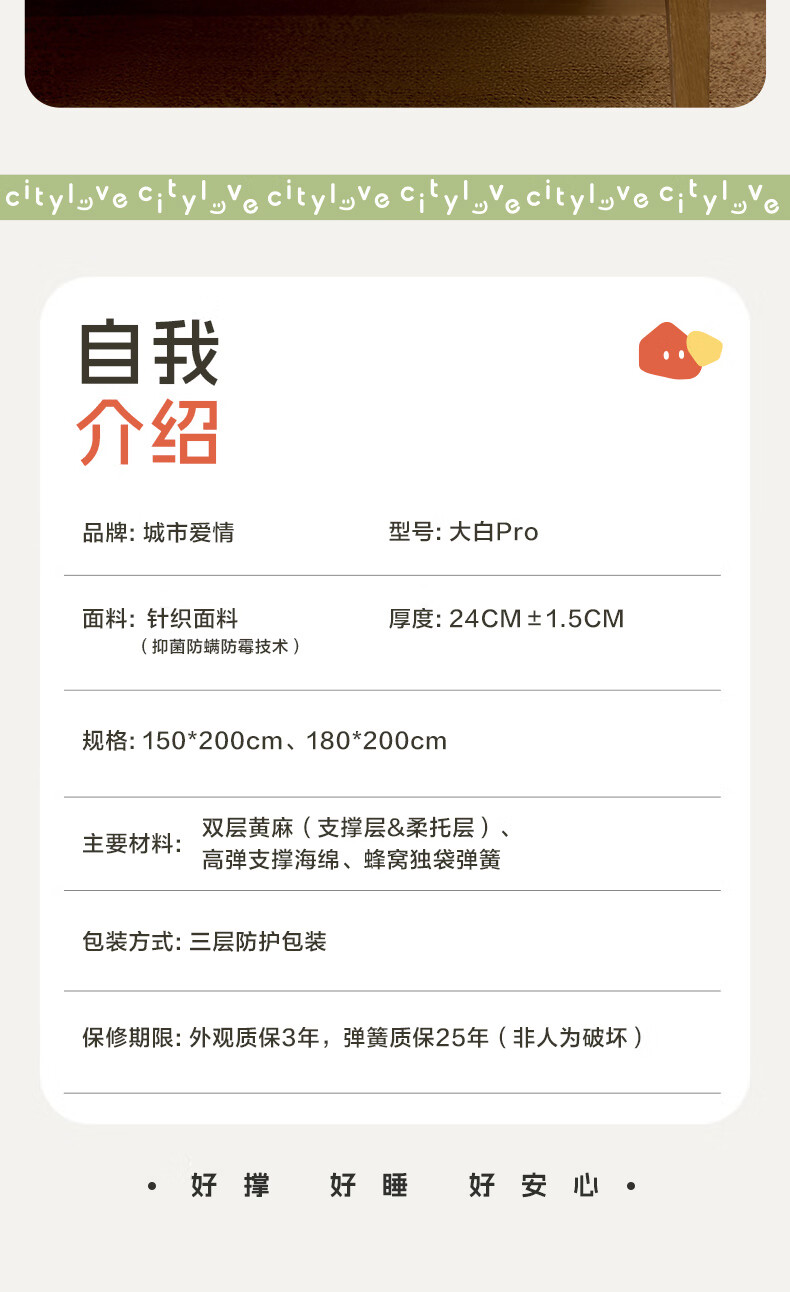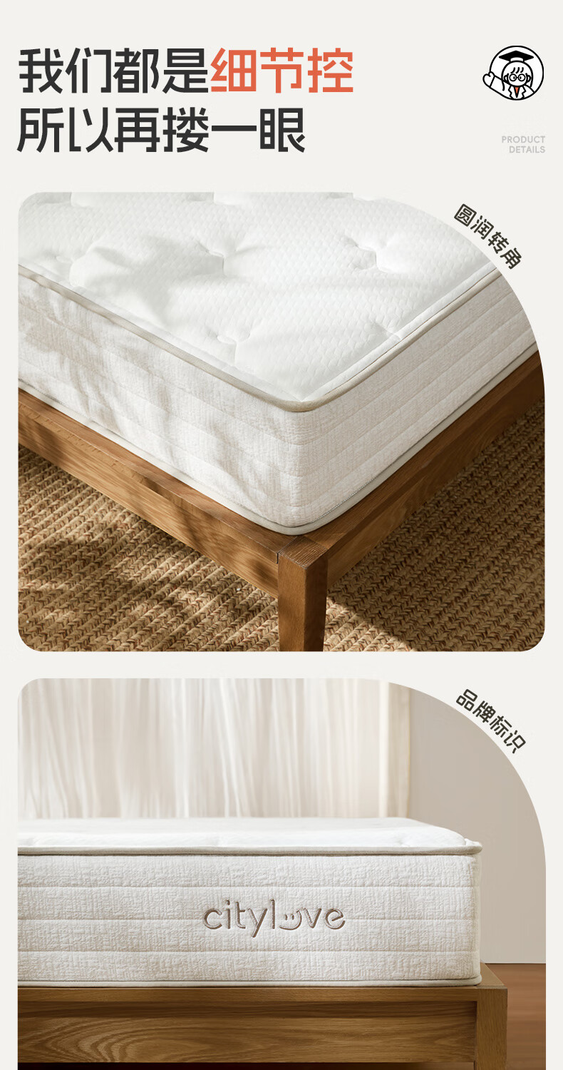 城市爱情喜临门床垫黄麻偏硬舒脊独袋弹簧海绵垫子大白Pro席梦思双人垫子 1.8*2米