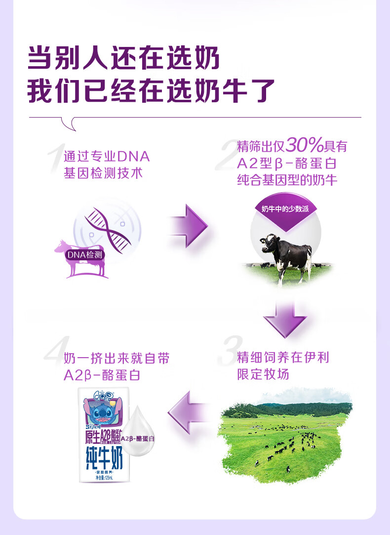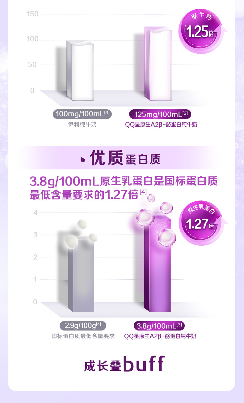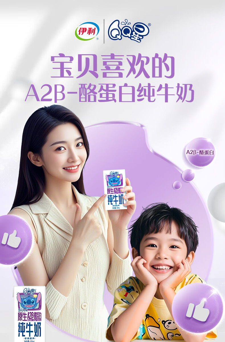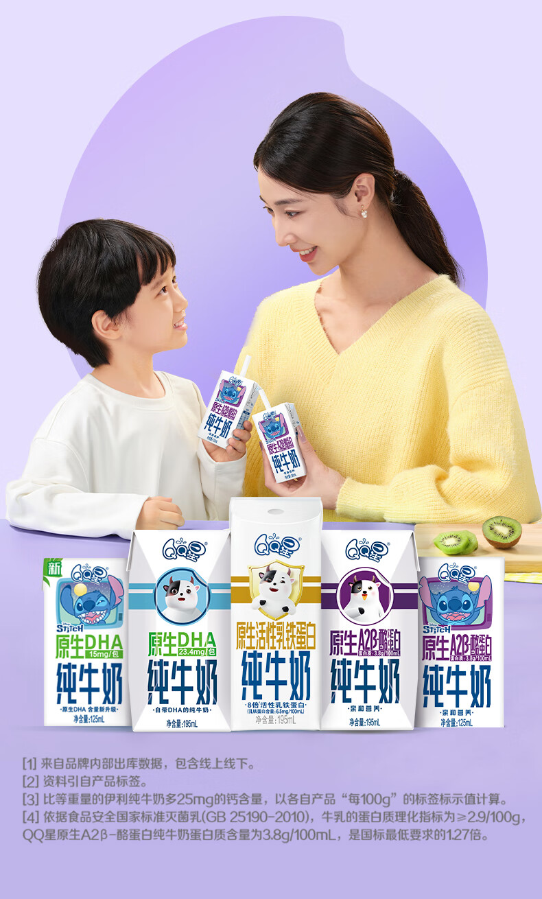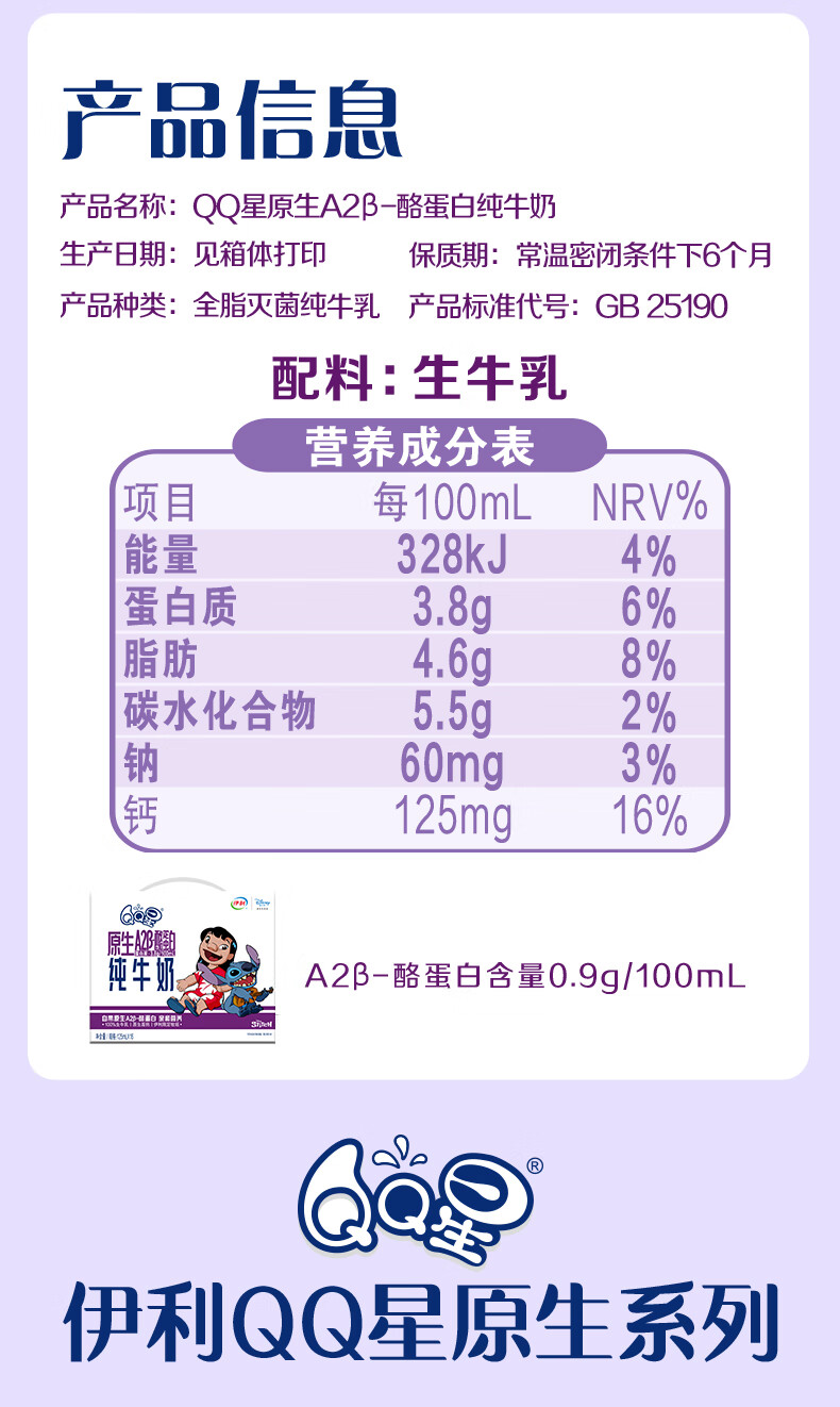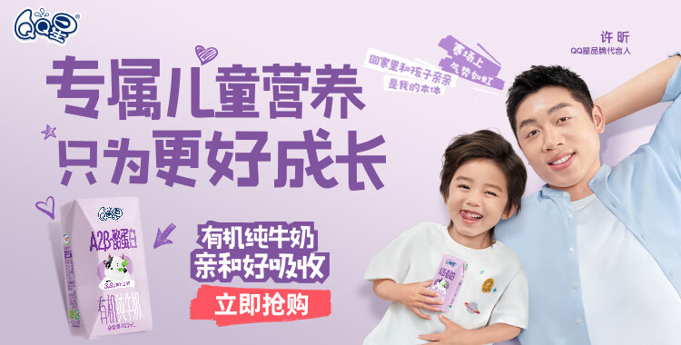 QQ星原生A2β-酪蛋白儿童高钙牛奶125ml*16盒 许昕同款 礼盒装