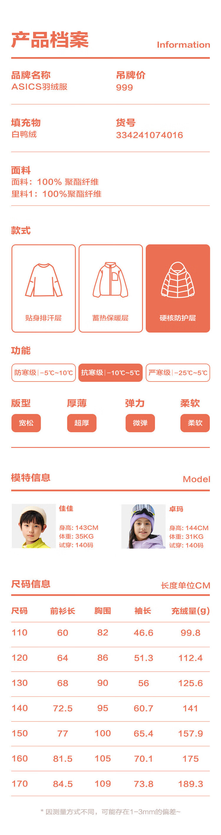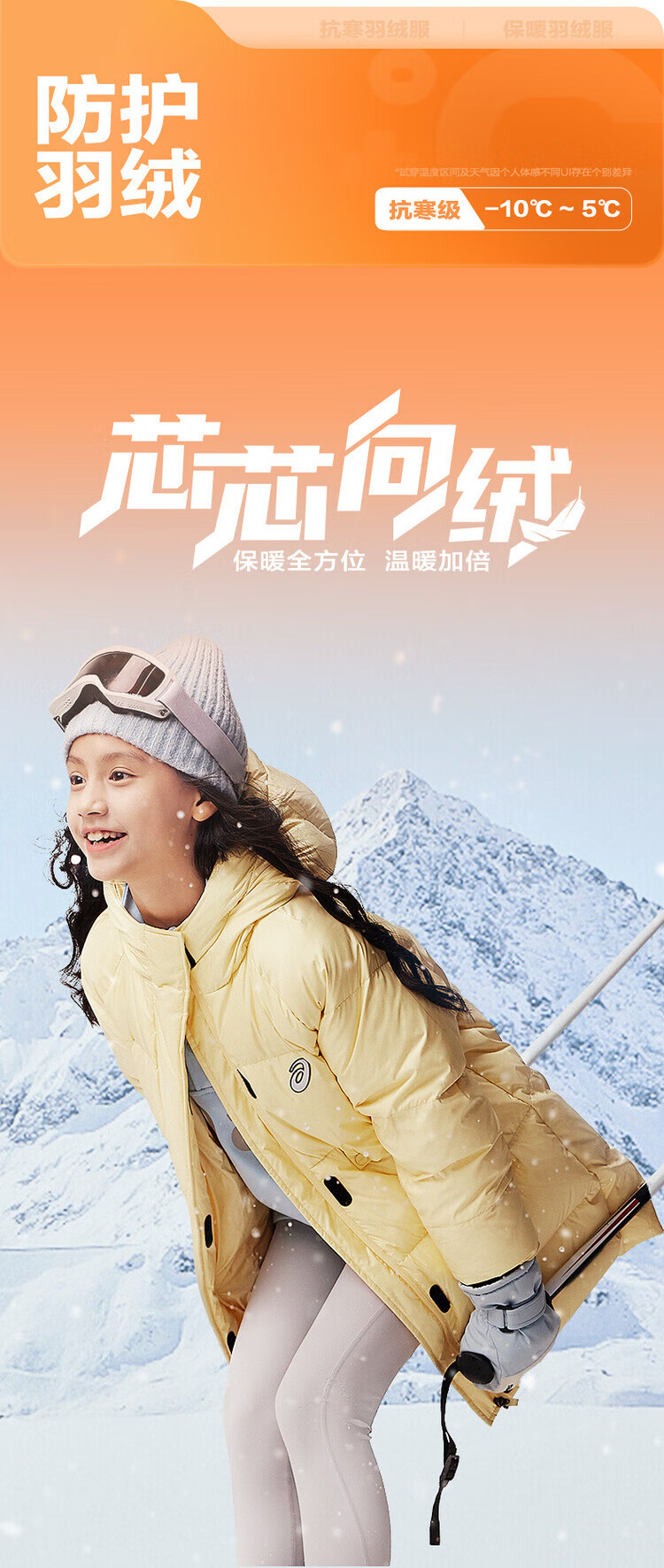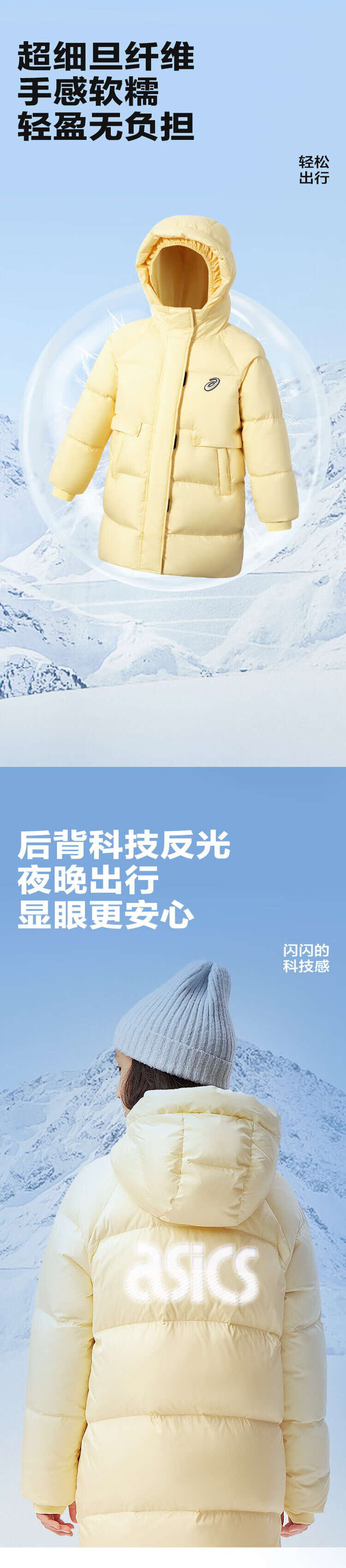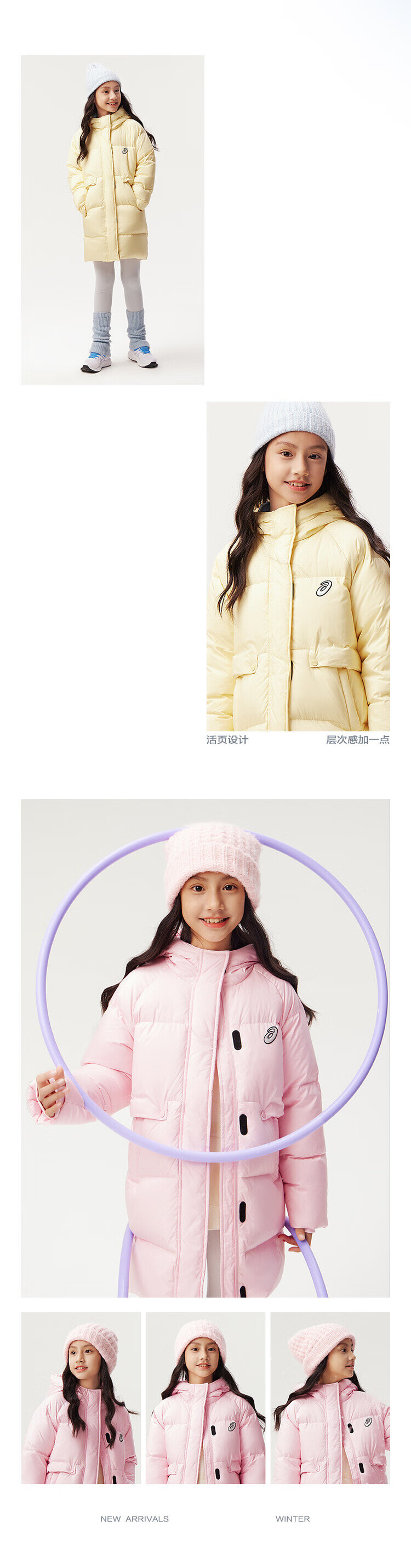 亚瑟士(asics)童装女童三防中长款羽绒服面包服加厚保暖2024年冬季334241074016