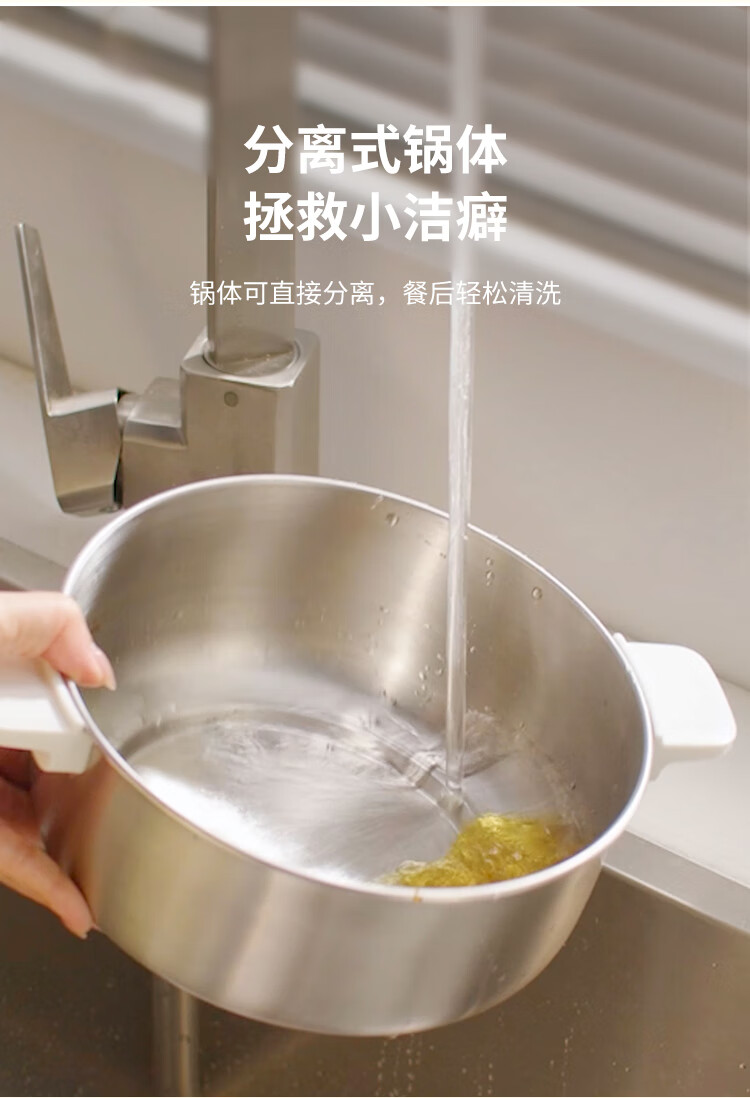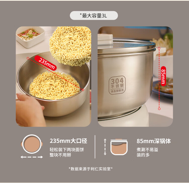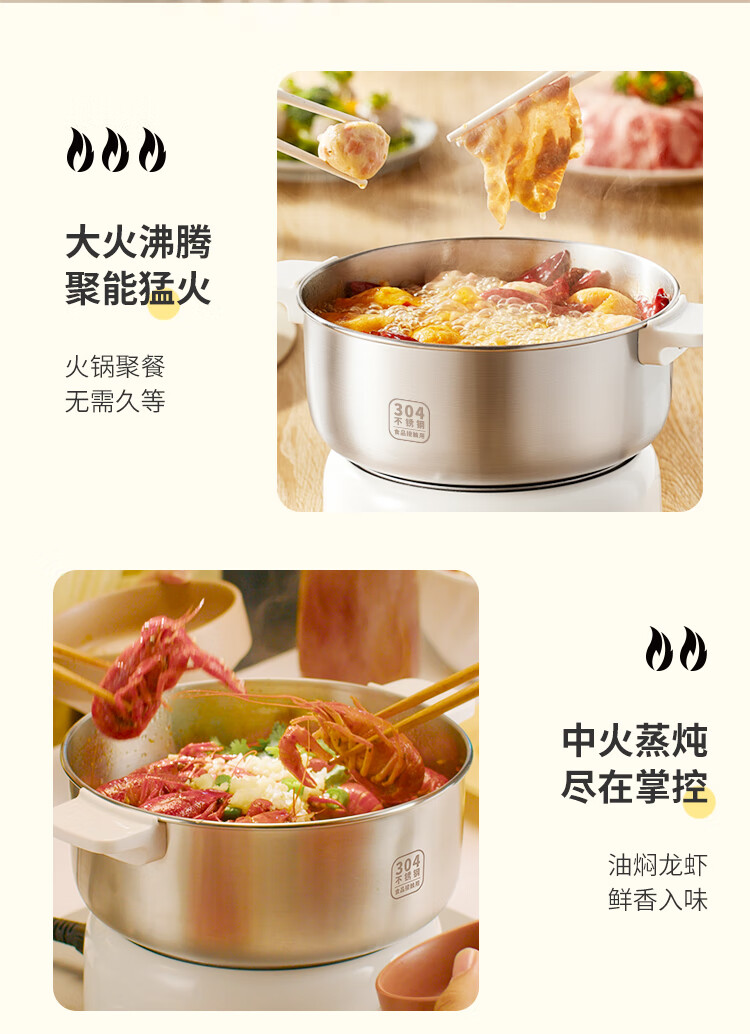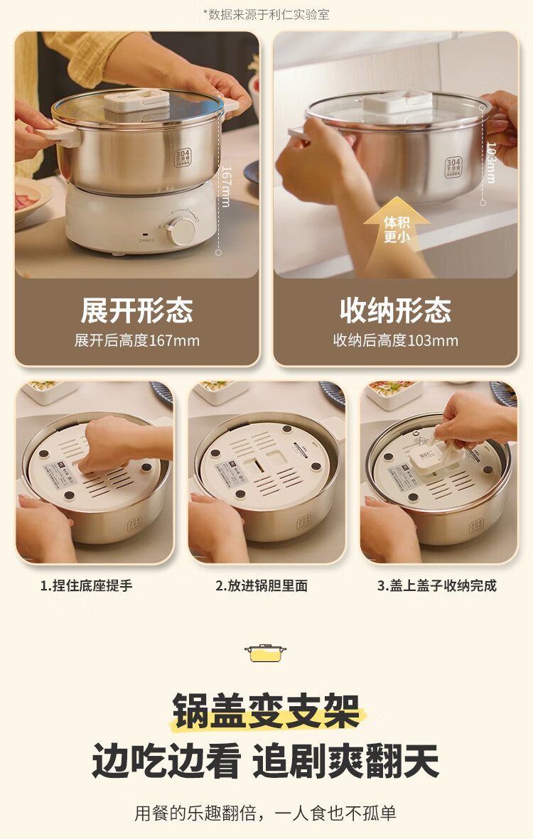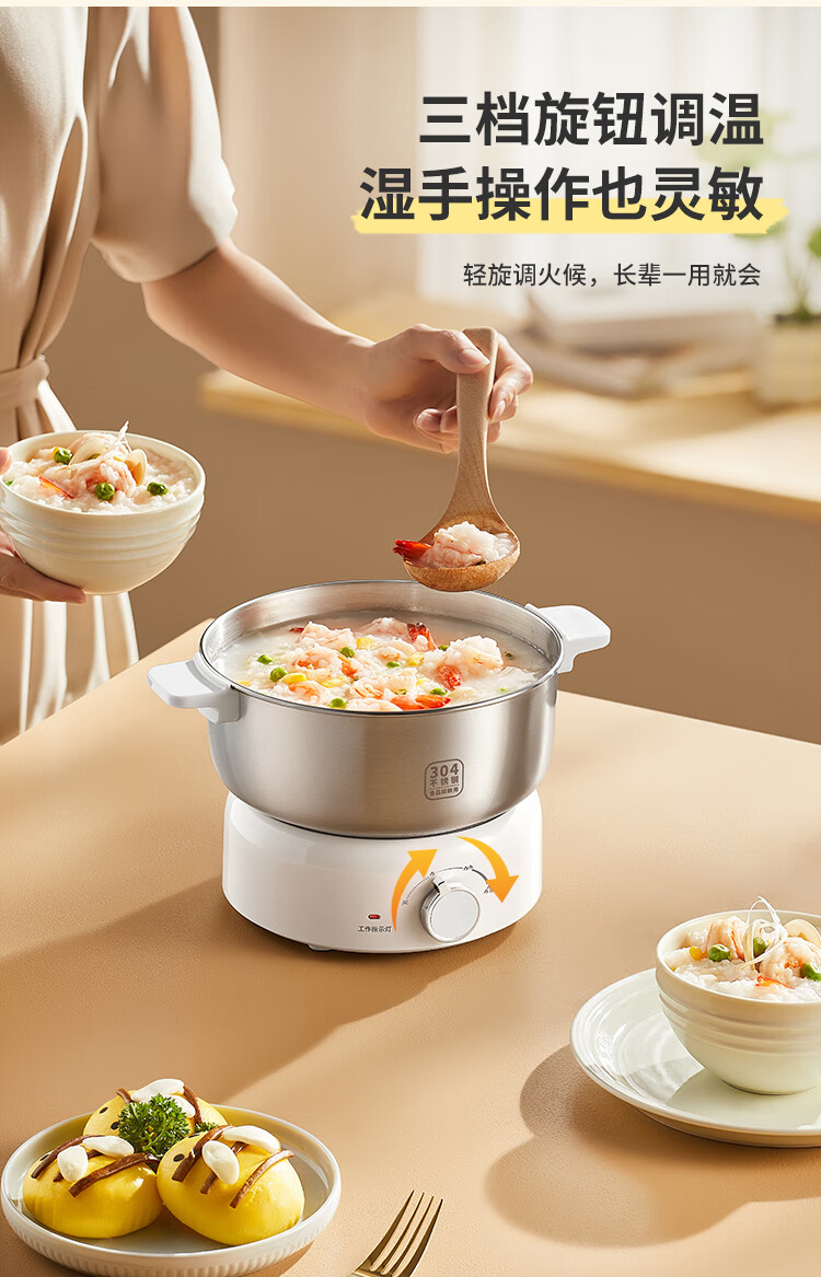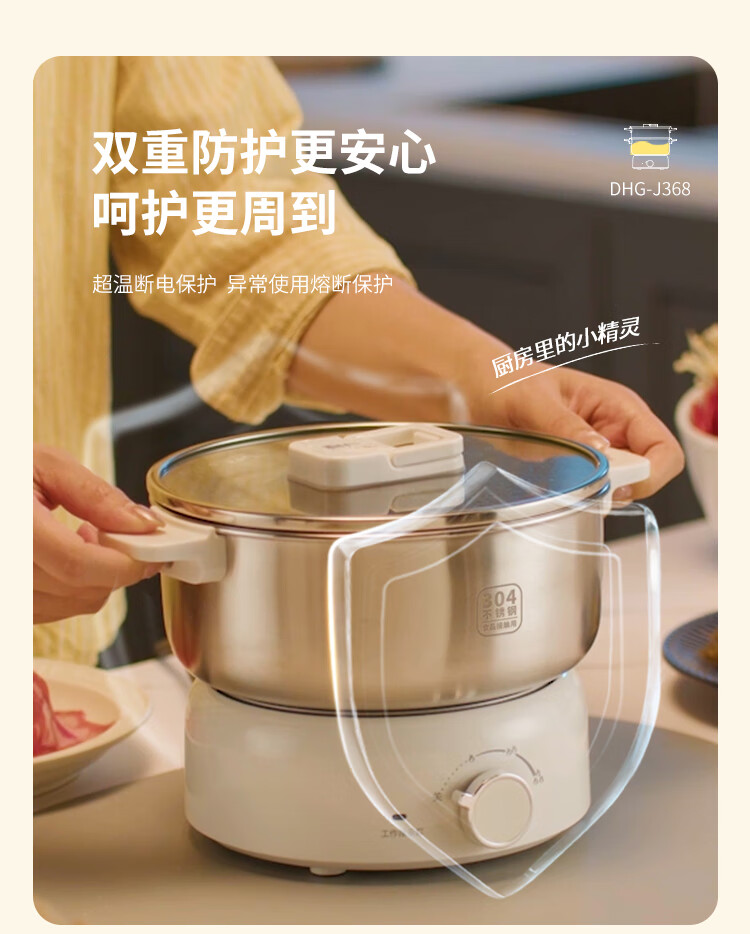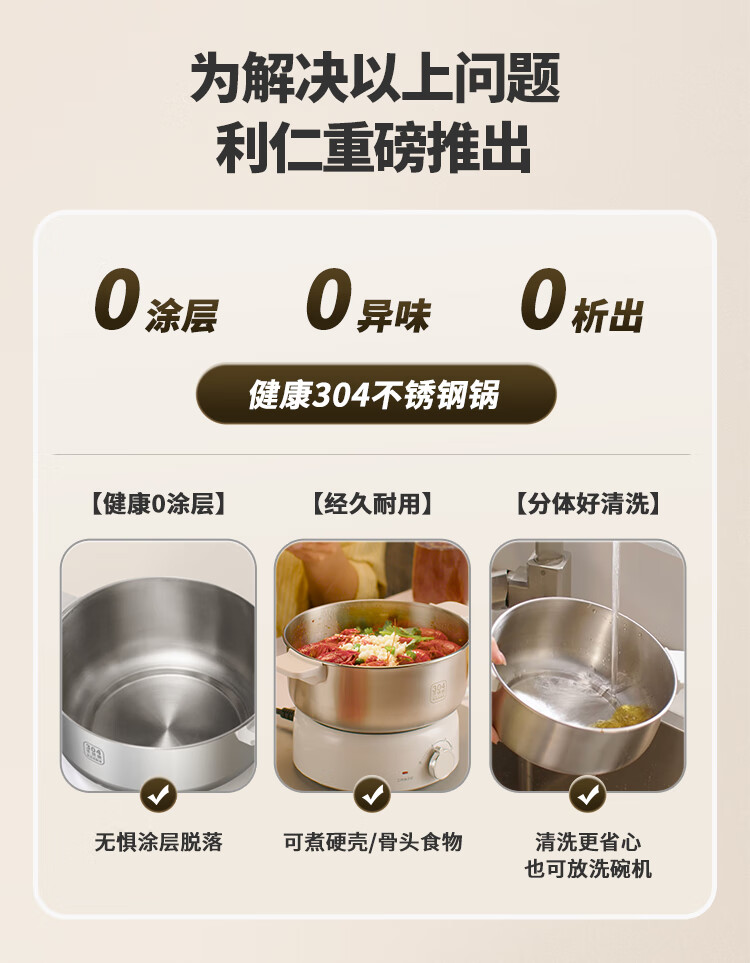 利仁(Liven)小钢人电火锅304不锈钢电煮锅分体式小电锅小型2-3人用3升小锅0涂层电蒸锅电热锅带蒸笼DHG-J368