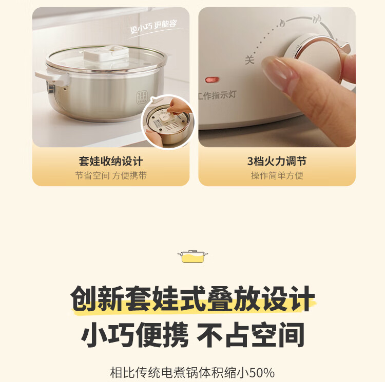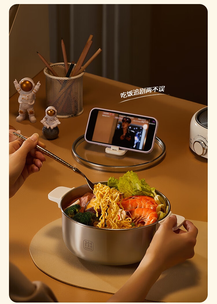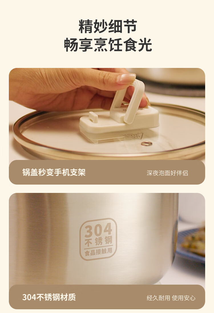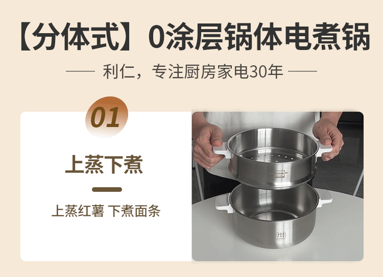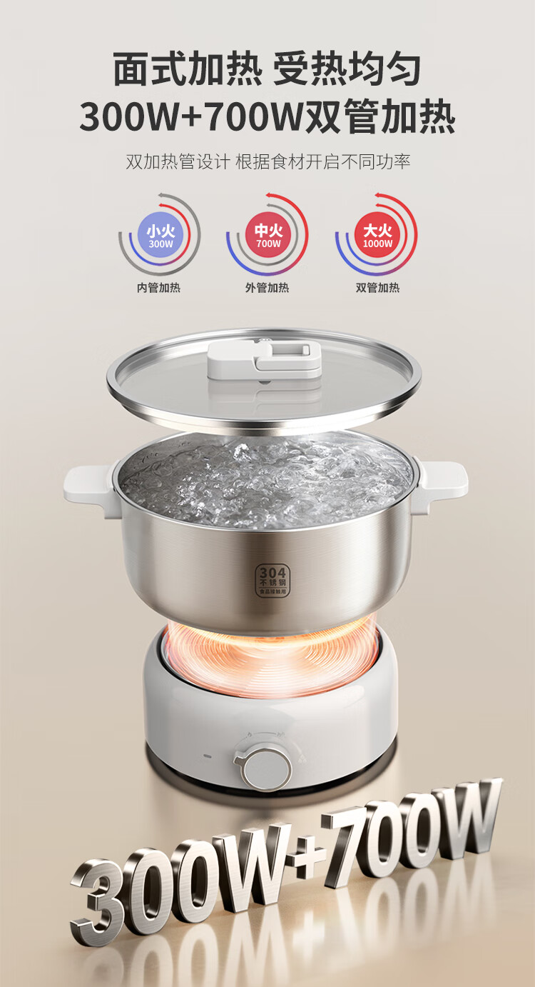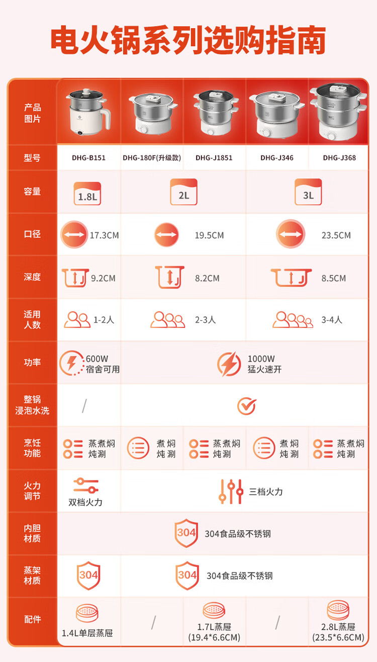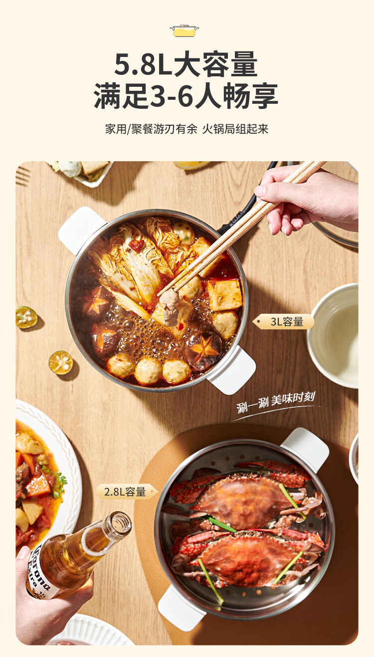 利仁(Liven)小钢人电火锅304不锈钢电煮锅分体式小电锅小型2-3人用3升小锅0涂层电蒸锅电热锅带蒸笼DHG-J368