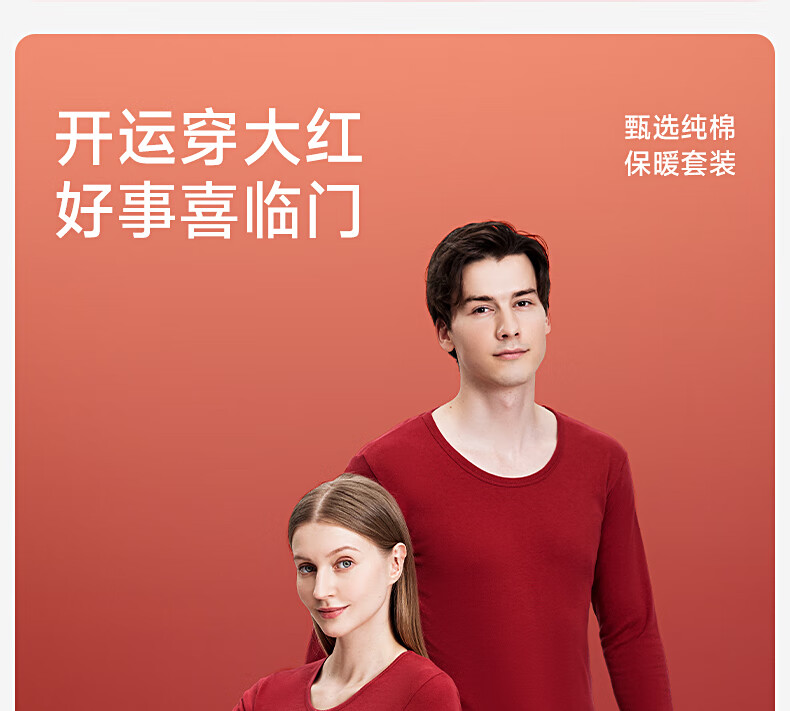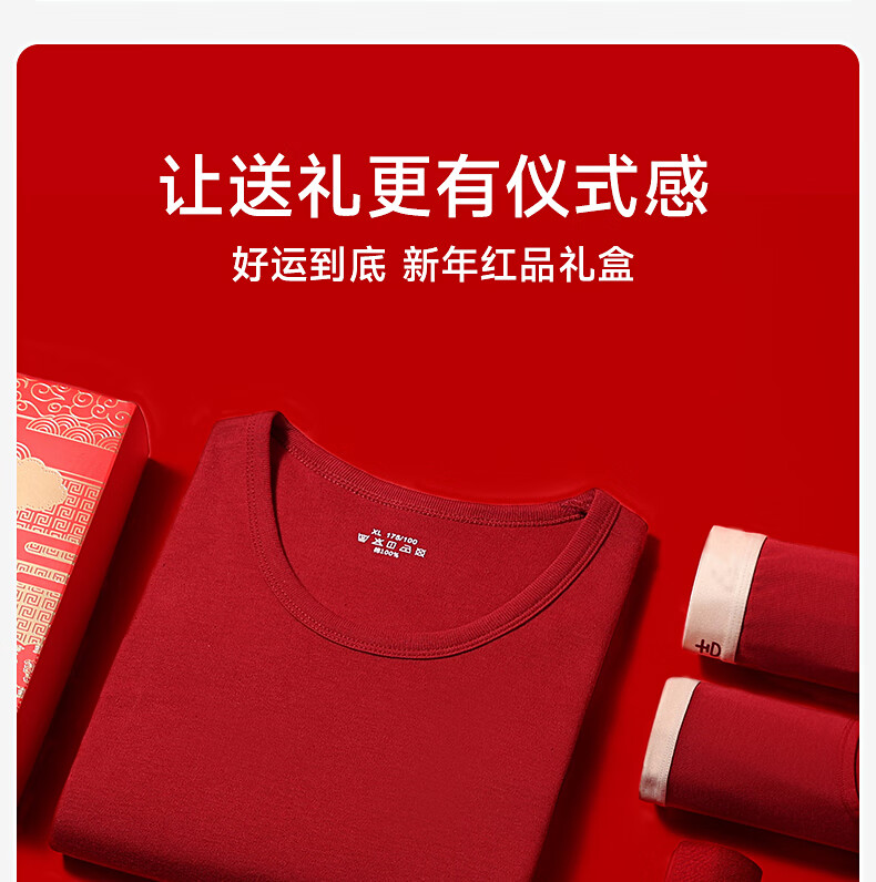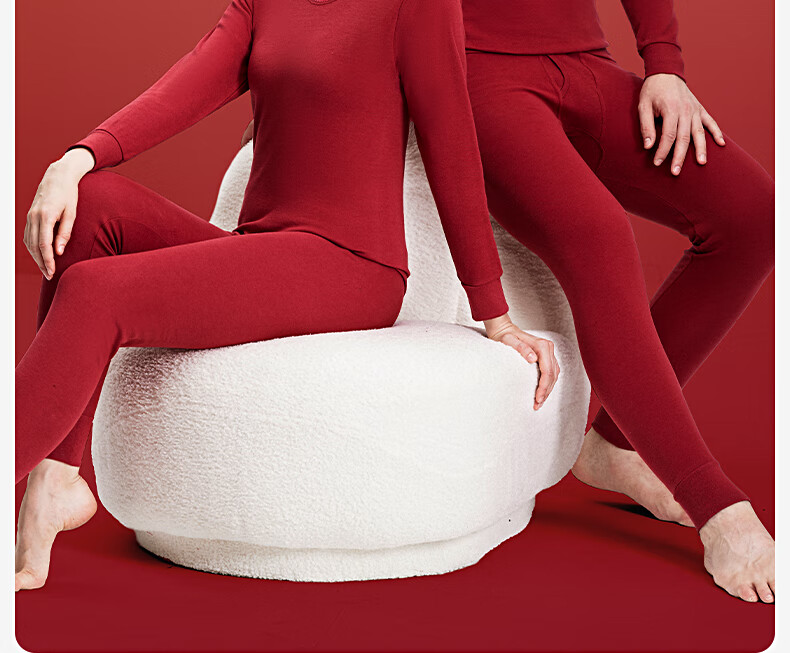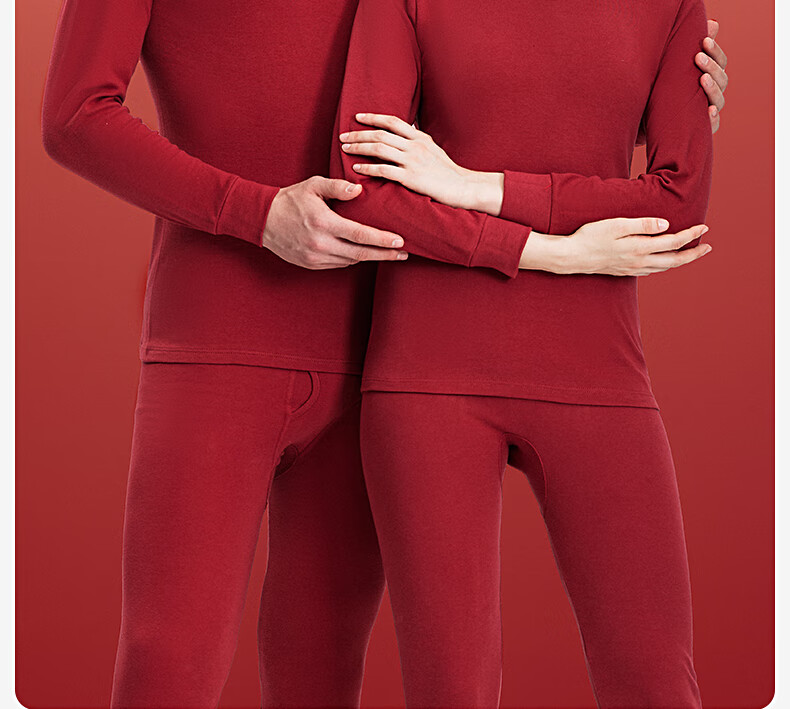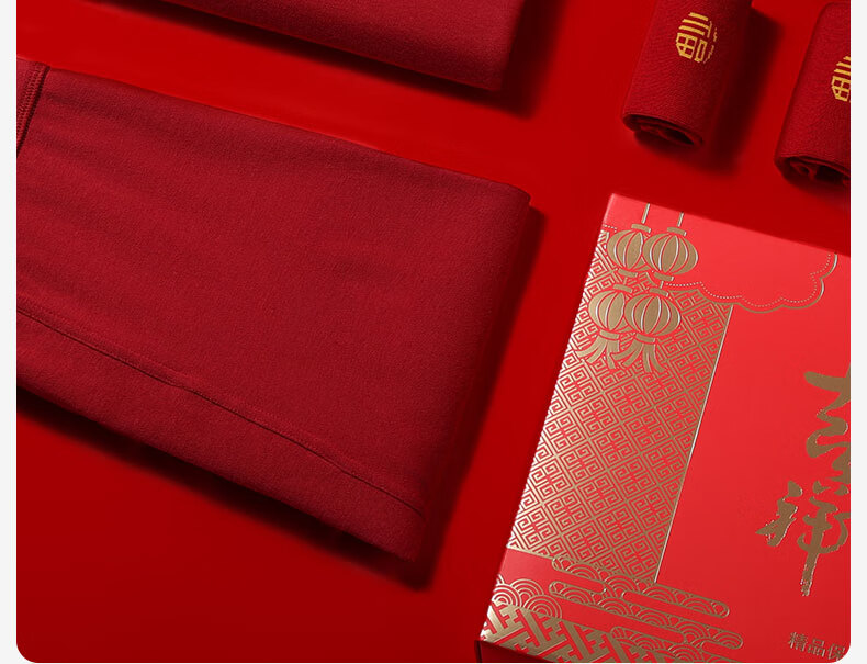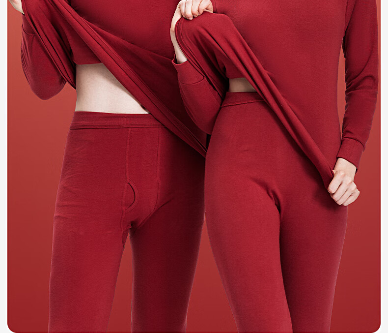 都市丽人本命年保暖内衣女士100%纯棉套装男式大红色蛇年秋衣秋裤 女士套装+红袜子+红内裤 2XL