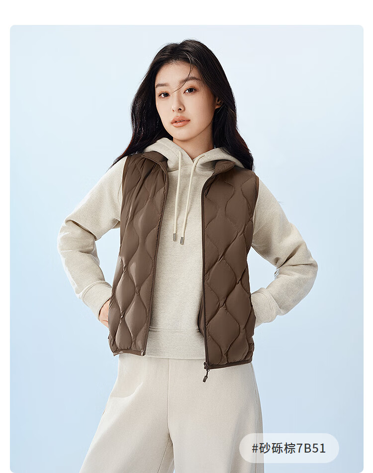 波司登秋冬羽绒马甲女士轻薄立领内胆外套商场热卖同款B250131008