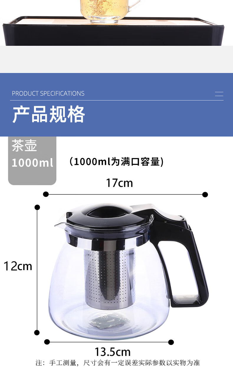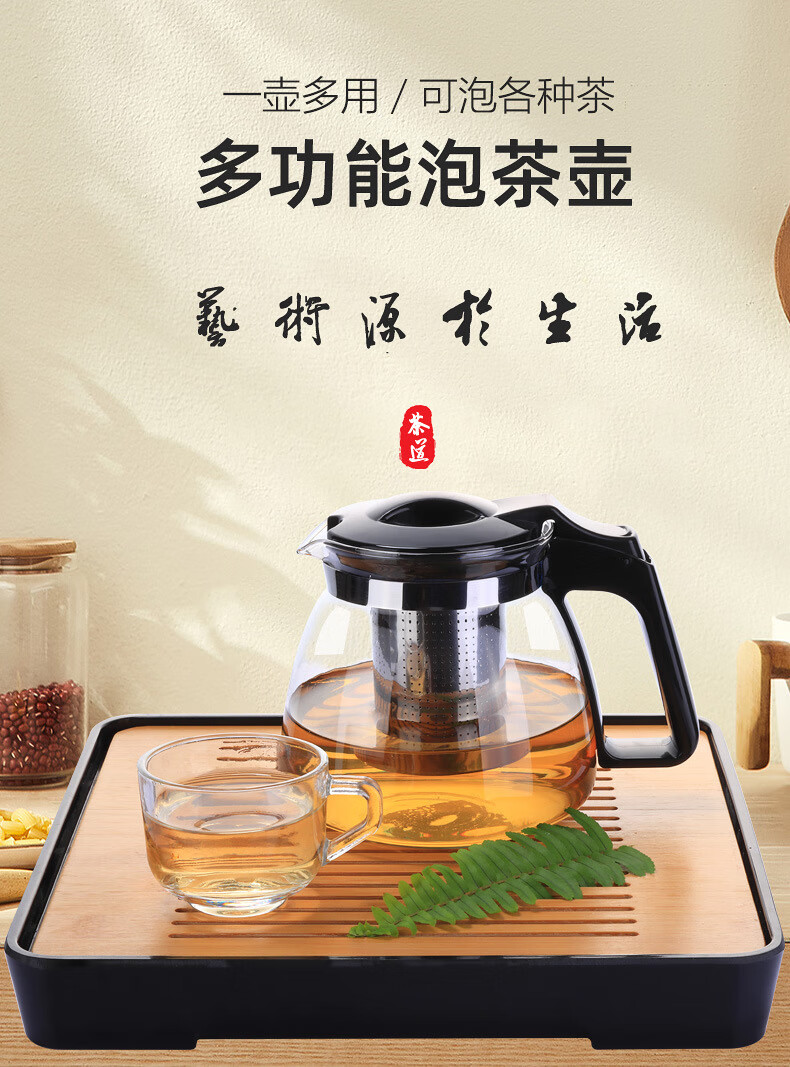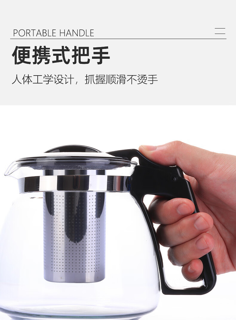梦庭茶壶加厚玻璃不锈钢过滤泡茶壶大容量 水壶茶具1000ml