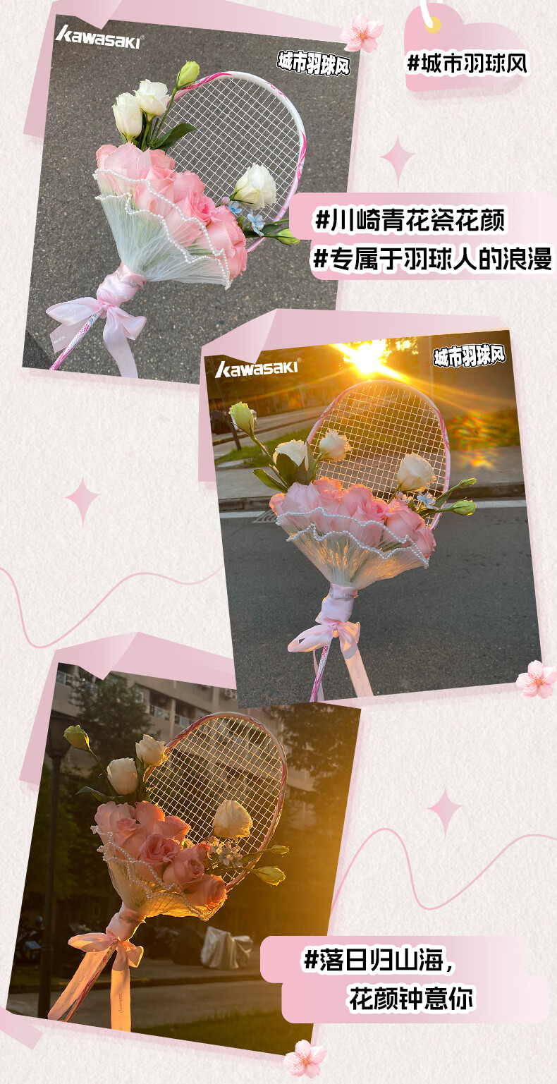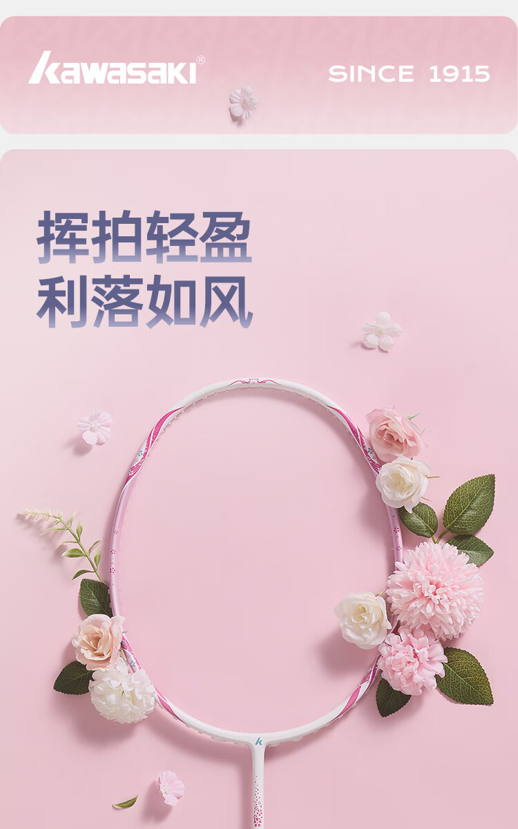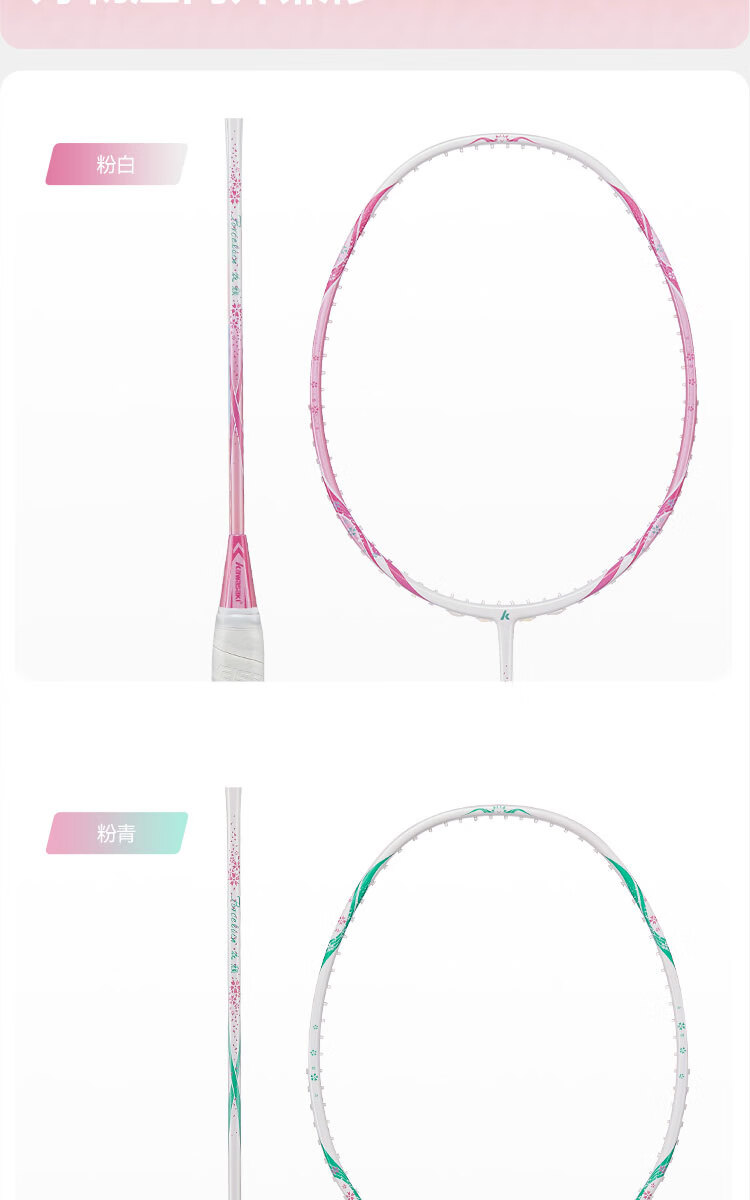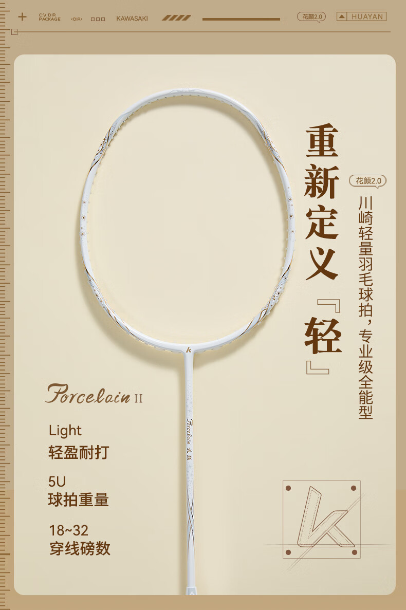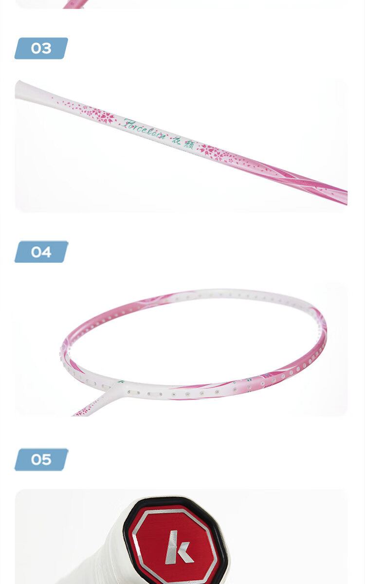 川崎(KAWASAKI)羽毛球拍 青花瓷系列 5U 全碳素超轻高磅专业级单拍比赛训练运动 花颜 Ⅱ 粉青-5U 白线送球+手胶 24磅 (店长推荐)