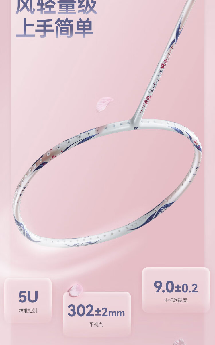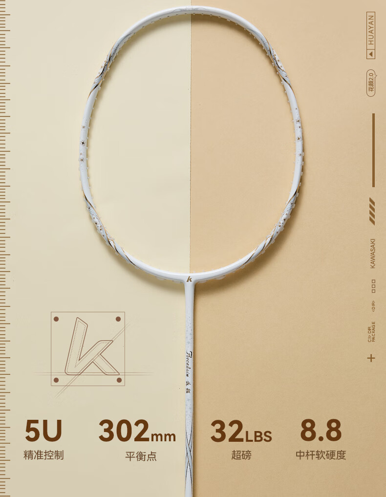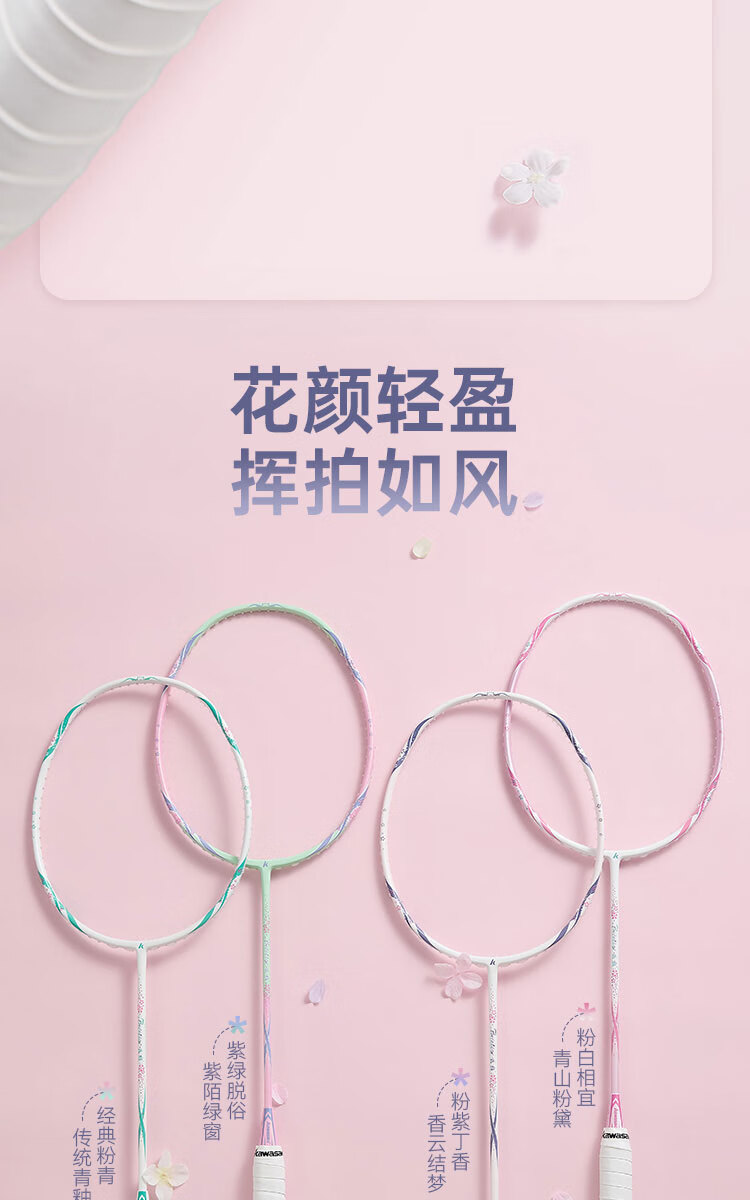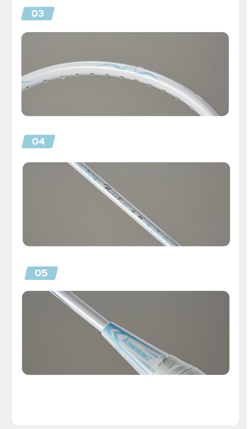 川崎(KAWASAKI)羽毛球拍 青花瓷系列 5U 全碳素超轻高磅专业级单拍比赛训练运动 花颜 Ⅱ 粉青-5U 白线送球+手胶 24磅 (店长推荐)