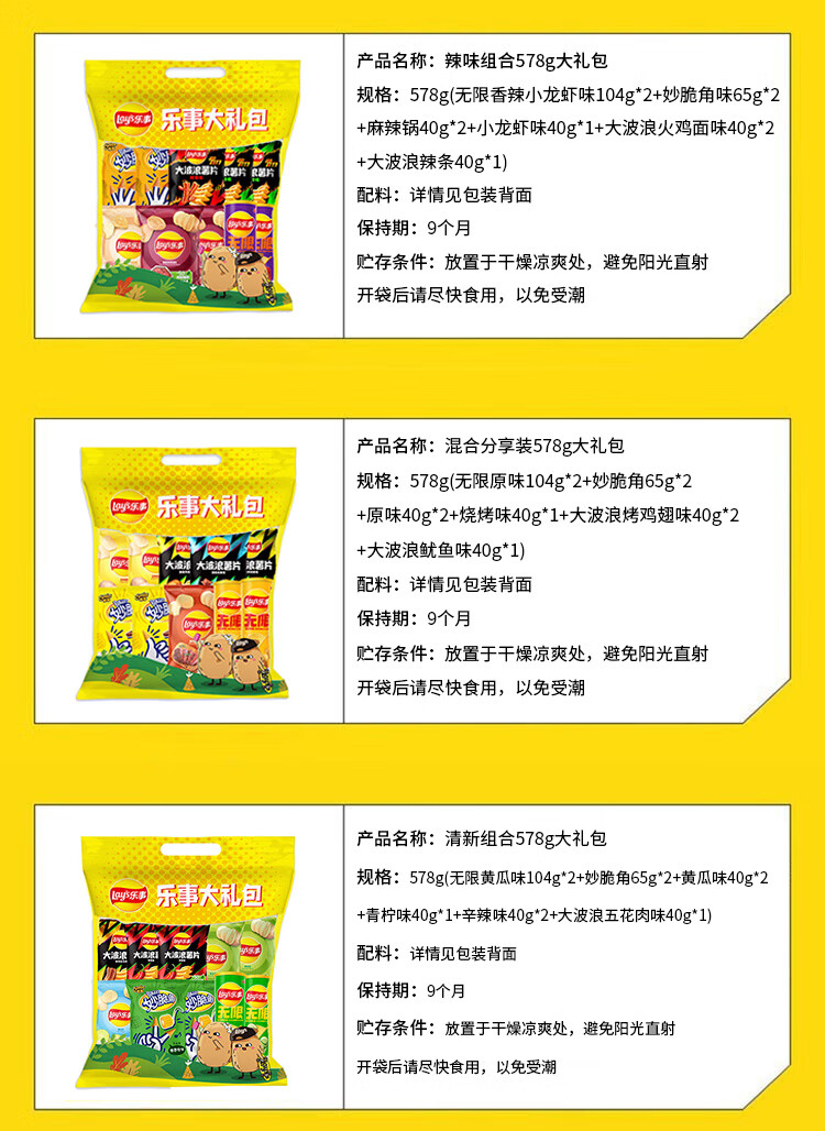 乐事(Lay's) 大礼包578g薯片辣味休闲食品爱意满满大礼盒送小朋友零食大礼包 (清新组合)578g