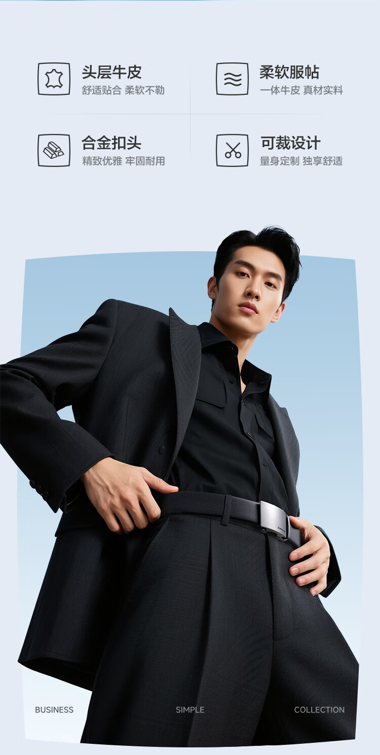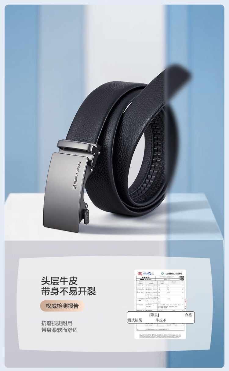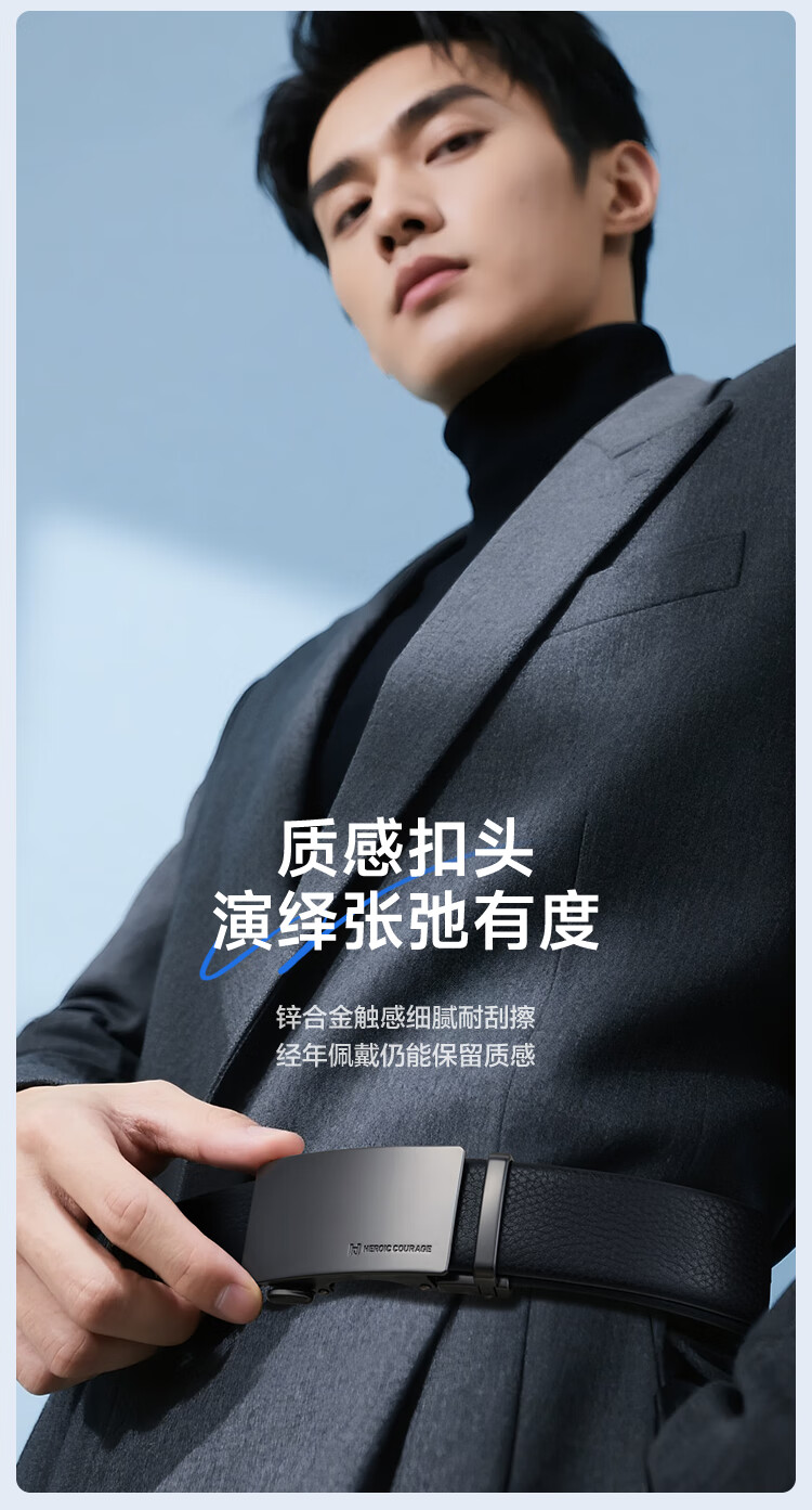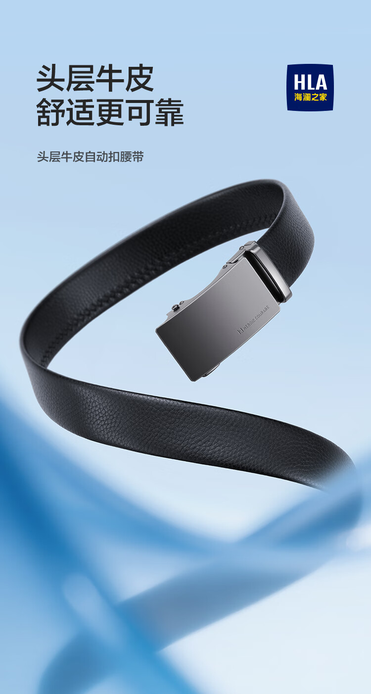 海澜之家男士皮带头层牛皮自动扣腰带新款真牛皮时尚潮裤带生日礼物送男友
