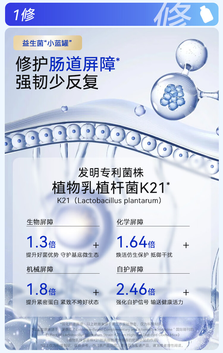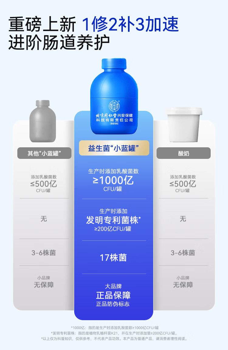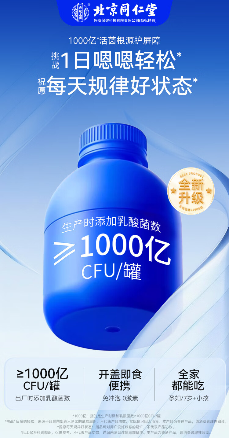 内廷上用北京同仁堂益生菌小蓝瓶 肠胃调理养护活性菌孕妇成人儿童通用 3盒【30000亿】 2g*30罐 -家中常备