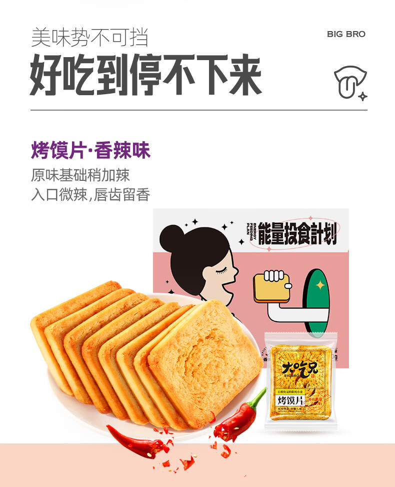 粮悦(LIRAY)烤馍片粮悦代餐饼干办公室休闲零食 烤馍烧烤味 450g*2盒