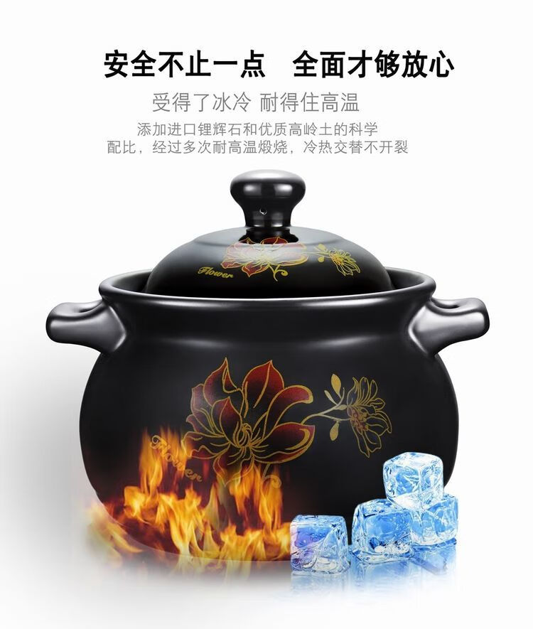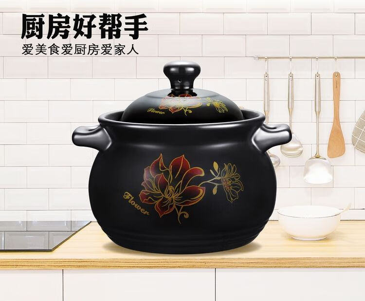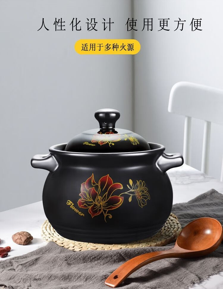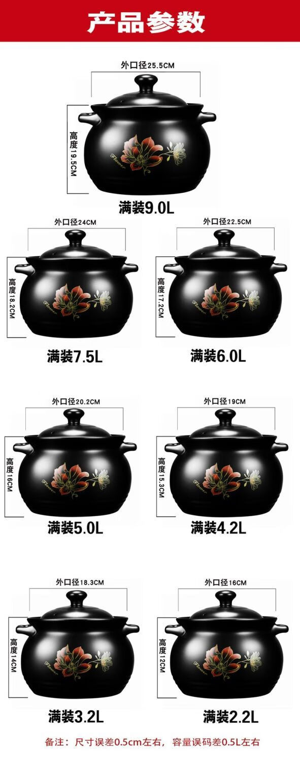 简漾砂锅耐高温瓦罐汤煲陶瓷小沙锅煲汤锅炖锅明火家用燃气汤锅 2200ml